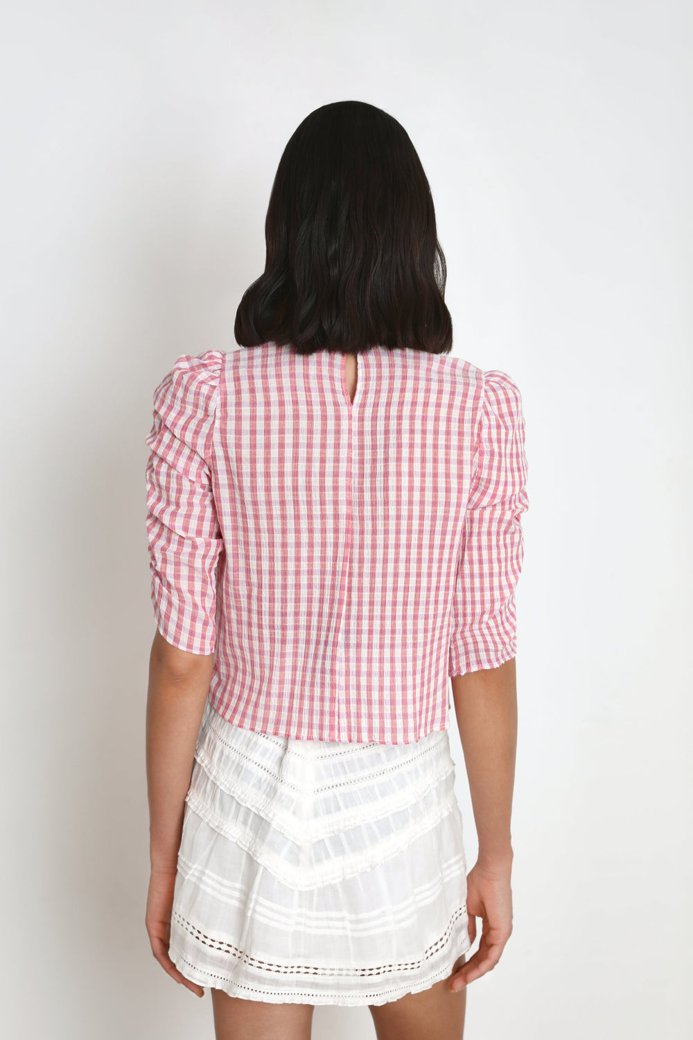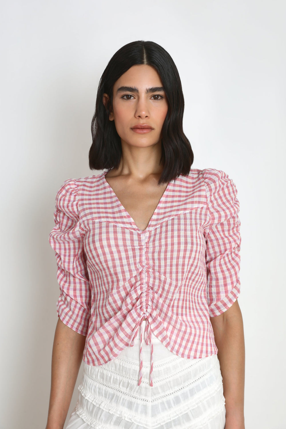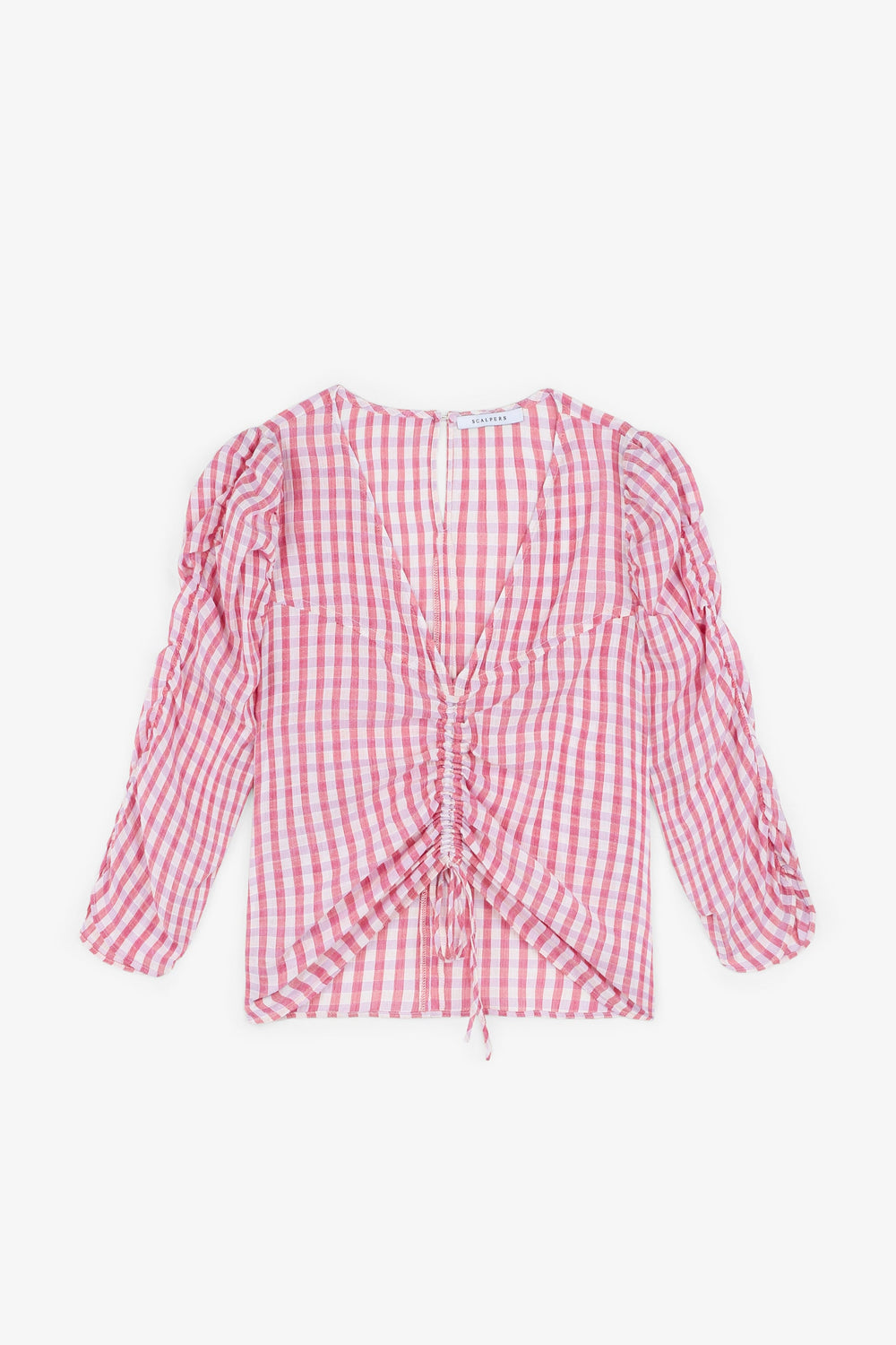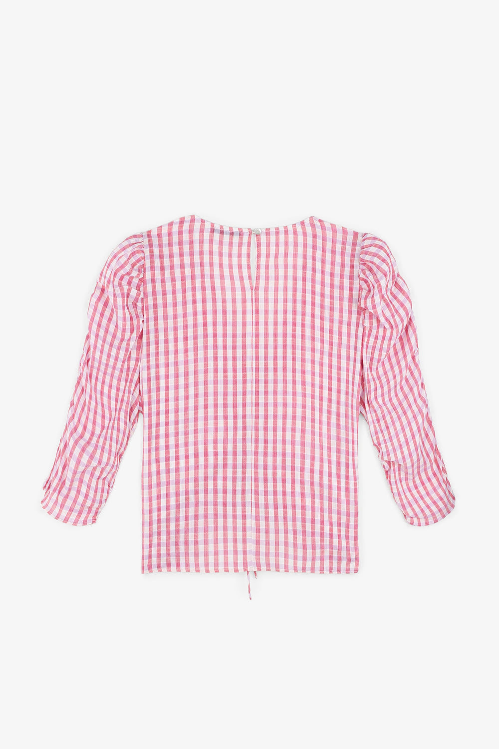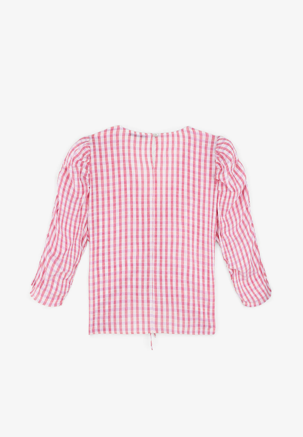GINGHAM BLOUSE WITH RUCHED SLEEVES