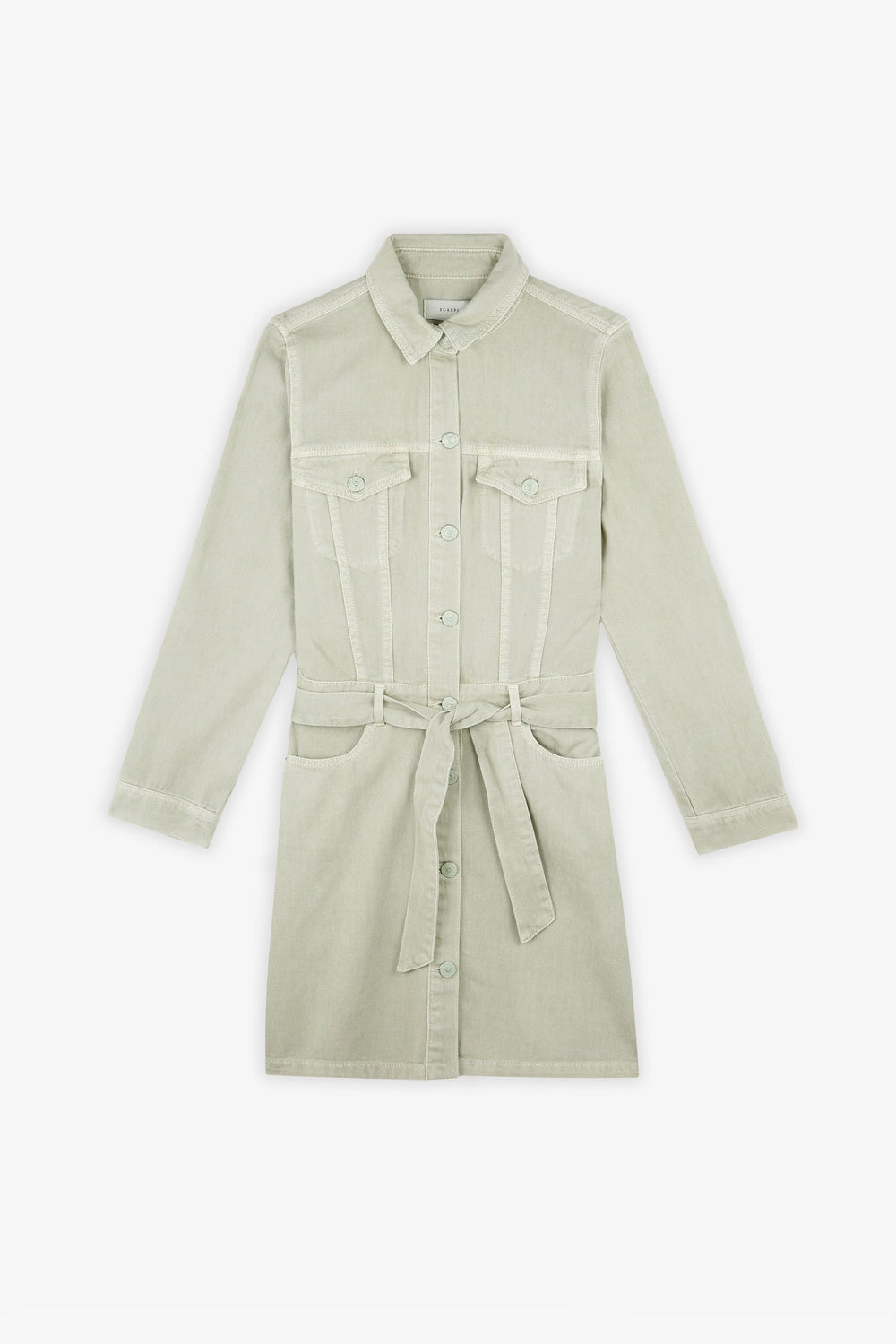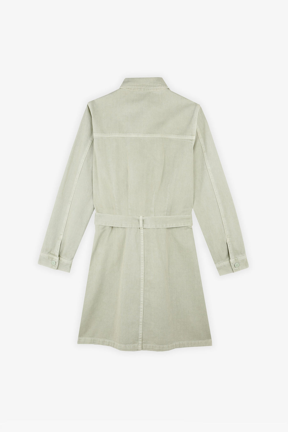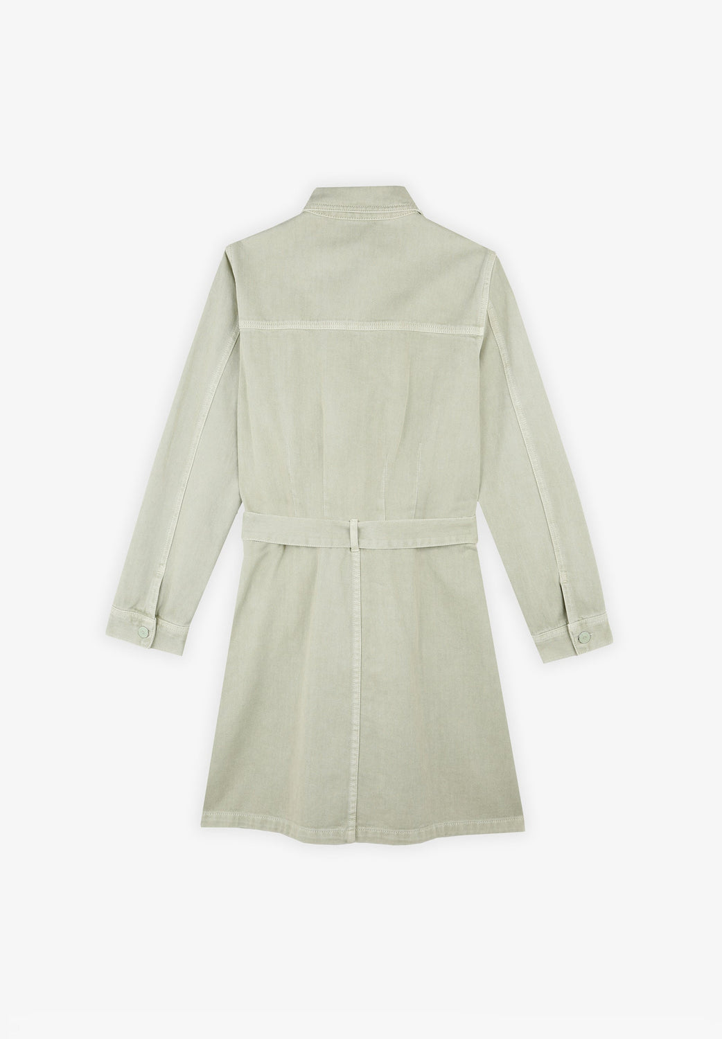 Denim dress with front bow.