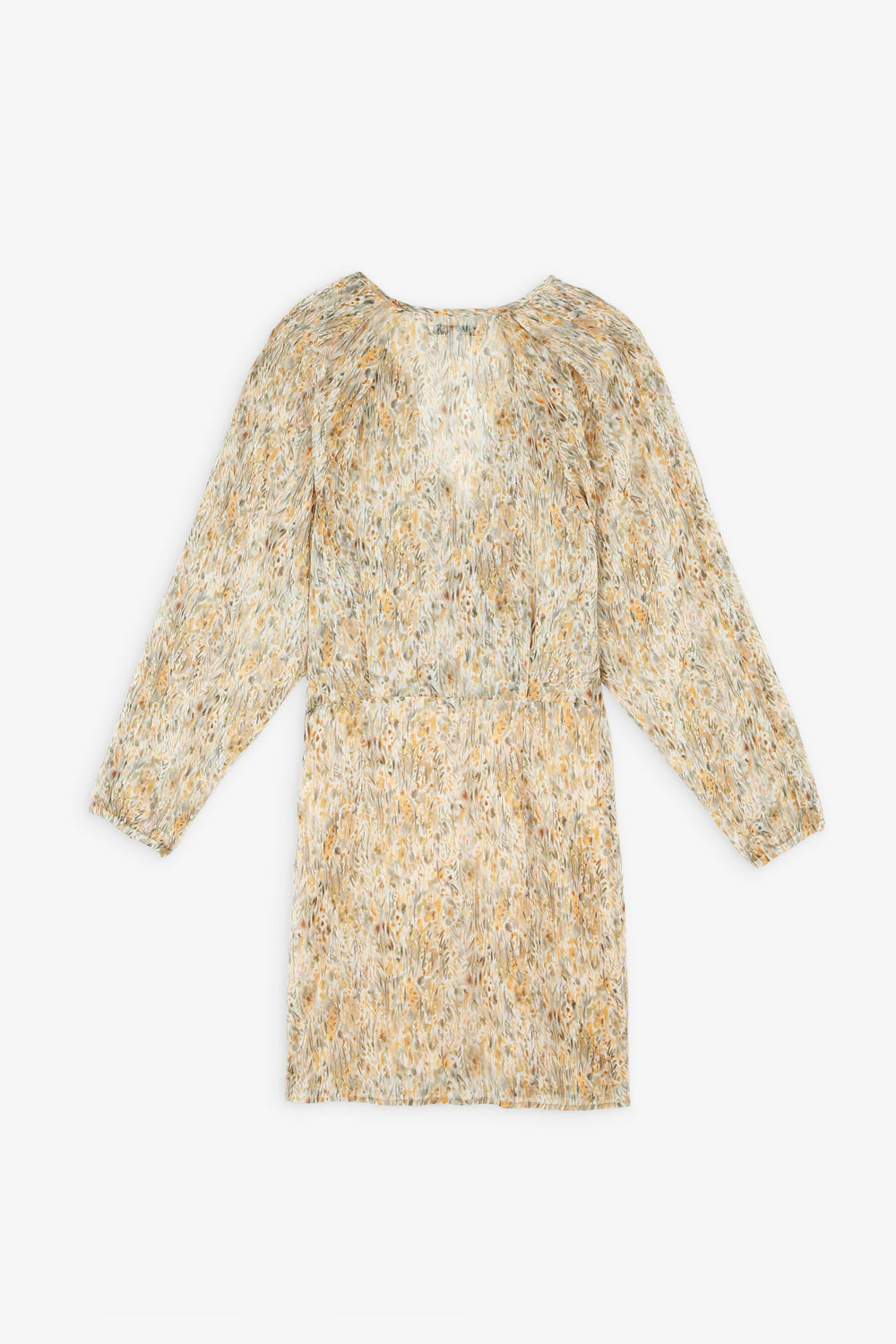 Short dress with colourful fabric and lurex details.