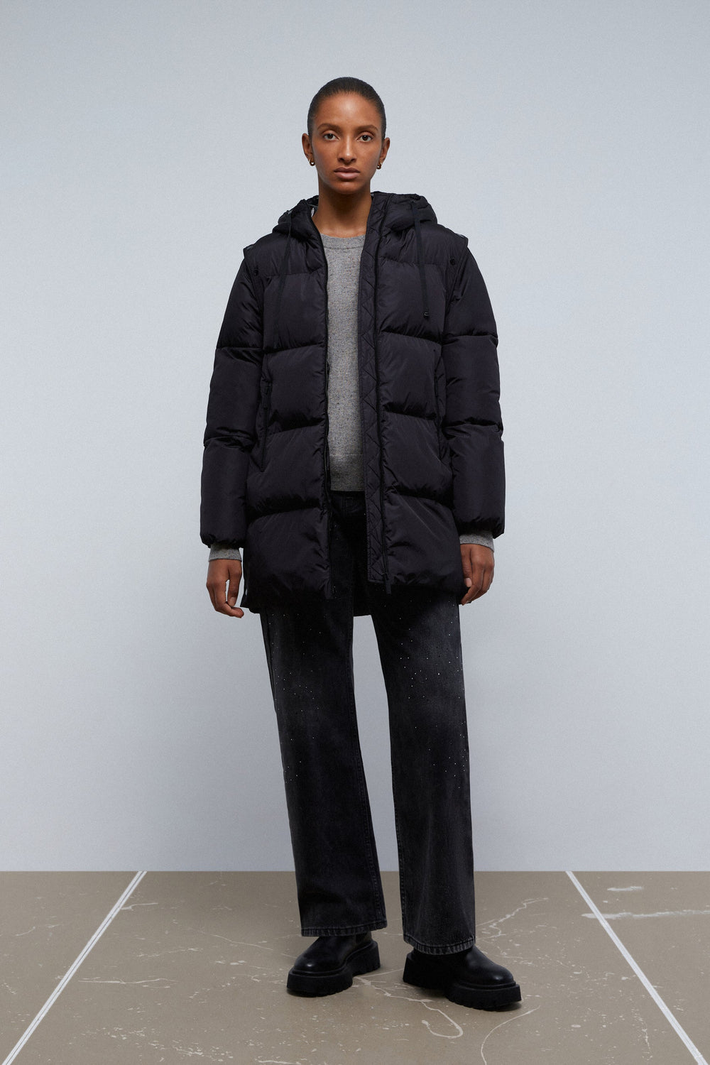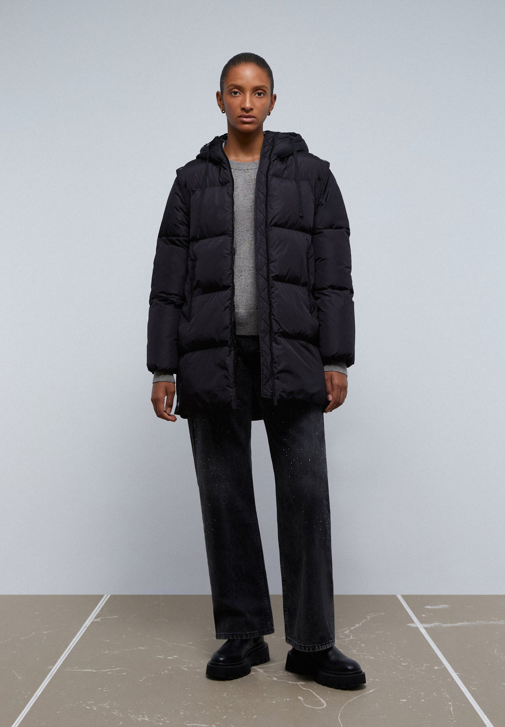 LONG PARKA WITH DETACHABLE SLEEVES