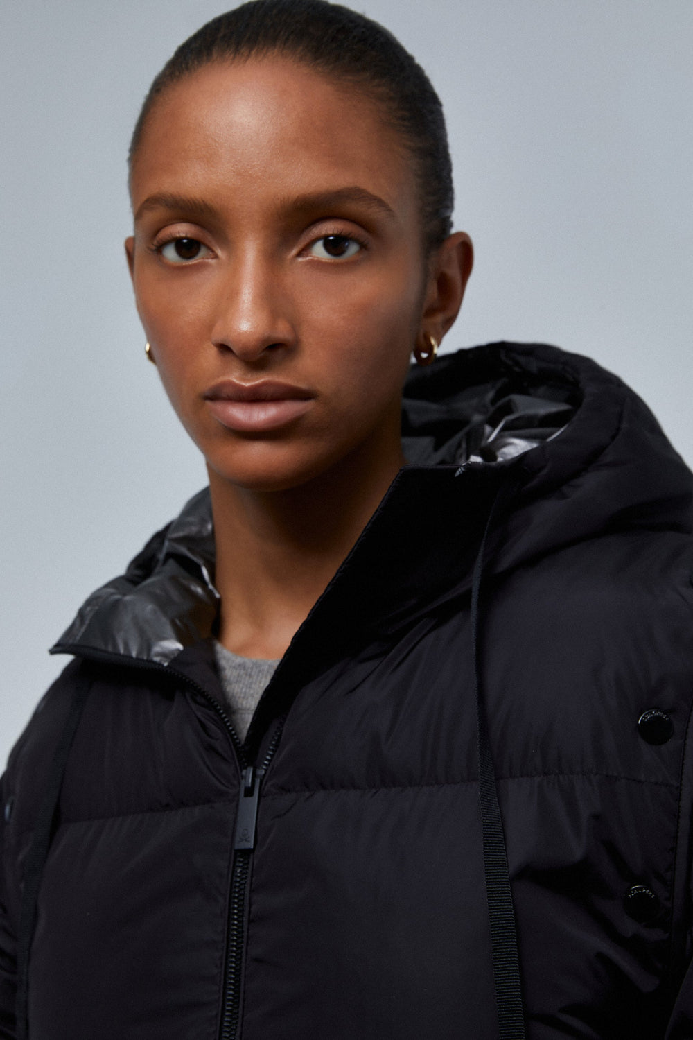 - Collar with an adjustable drawstring hood