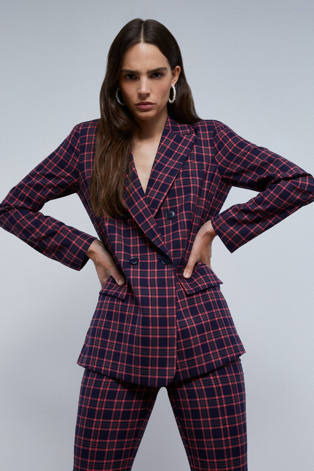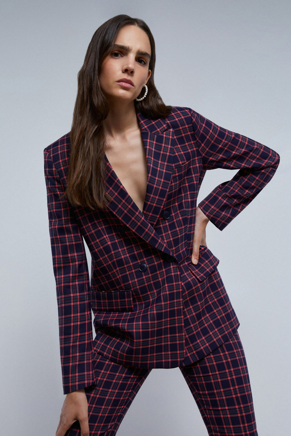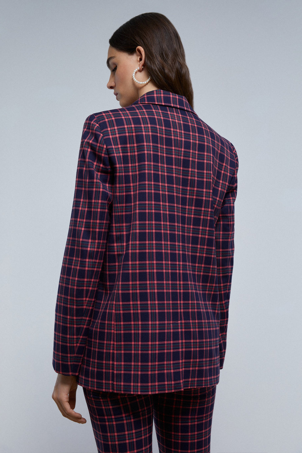 CHECK BLAZER WITH PEAKED LAPEL COLLAR