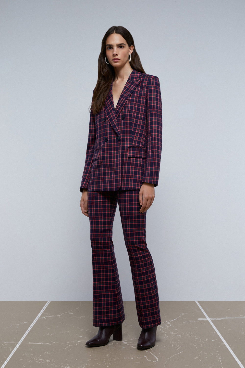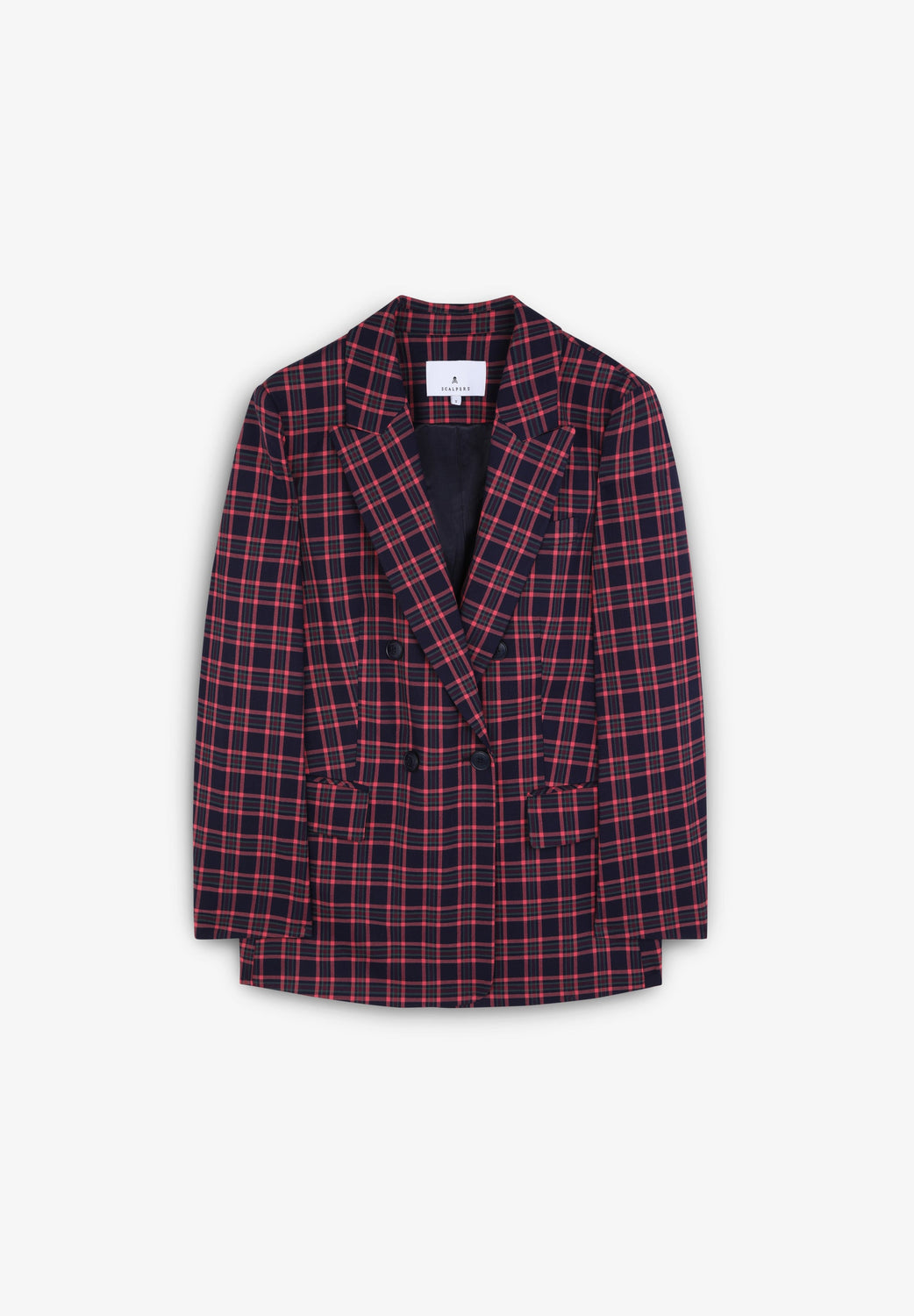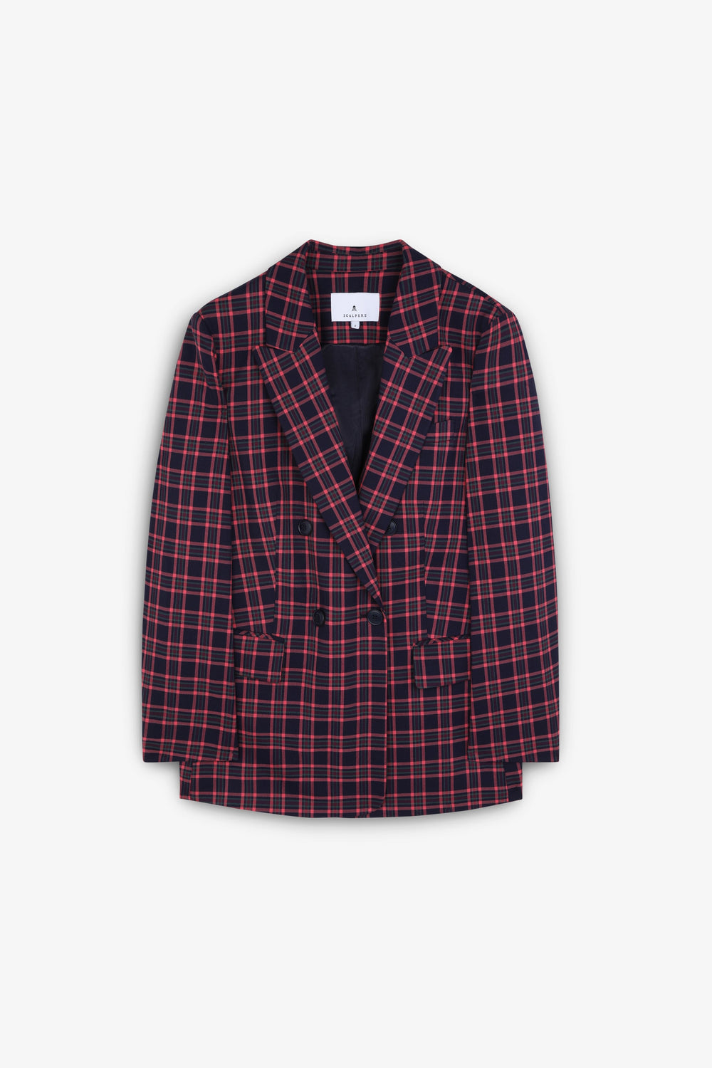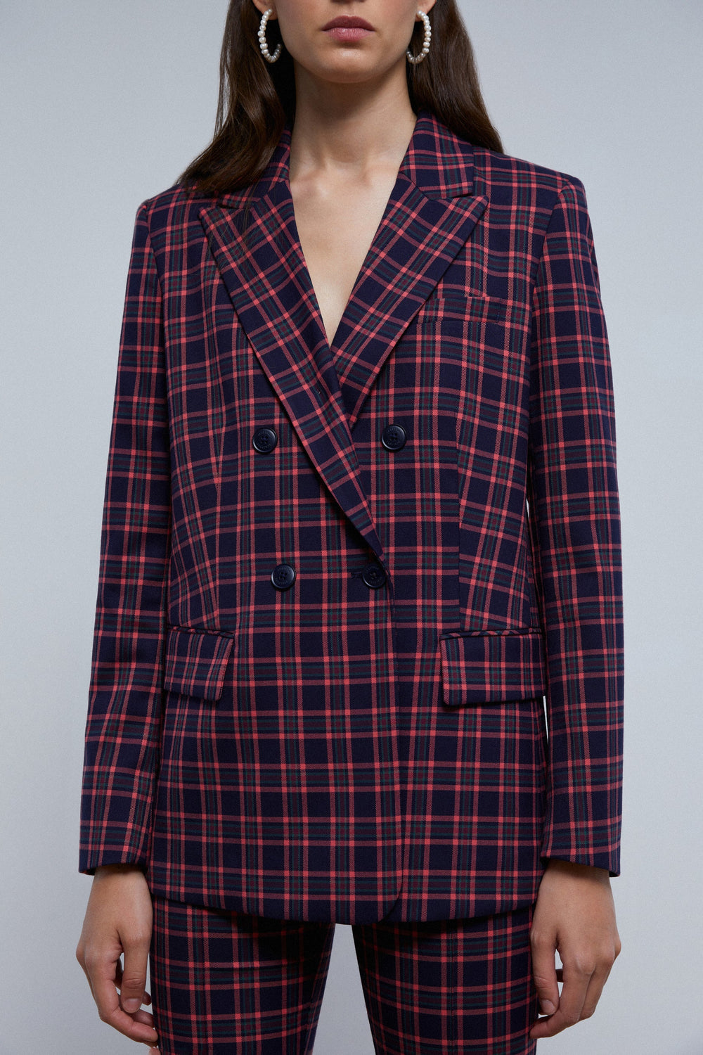 CHECK BLAZER WITH PEAKED LAPEL COLLAR
