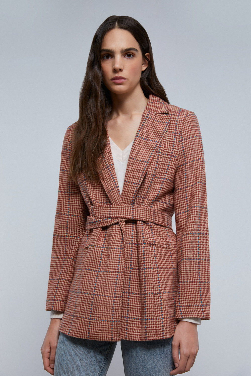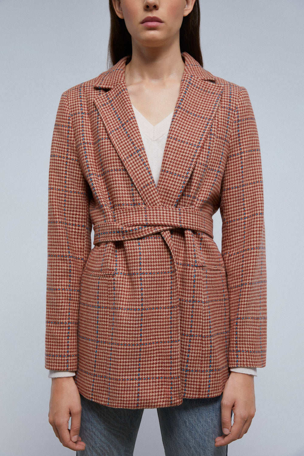 CHECK BLAZER WITH BELT