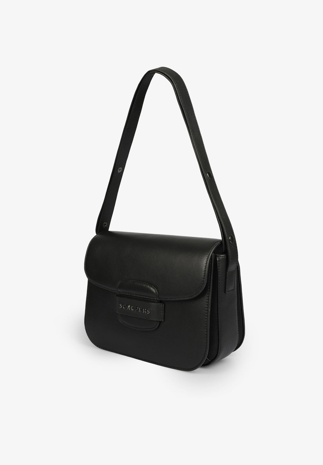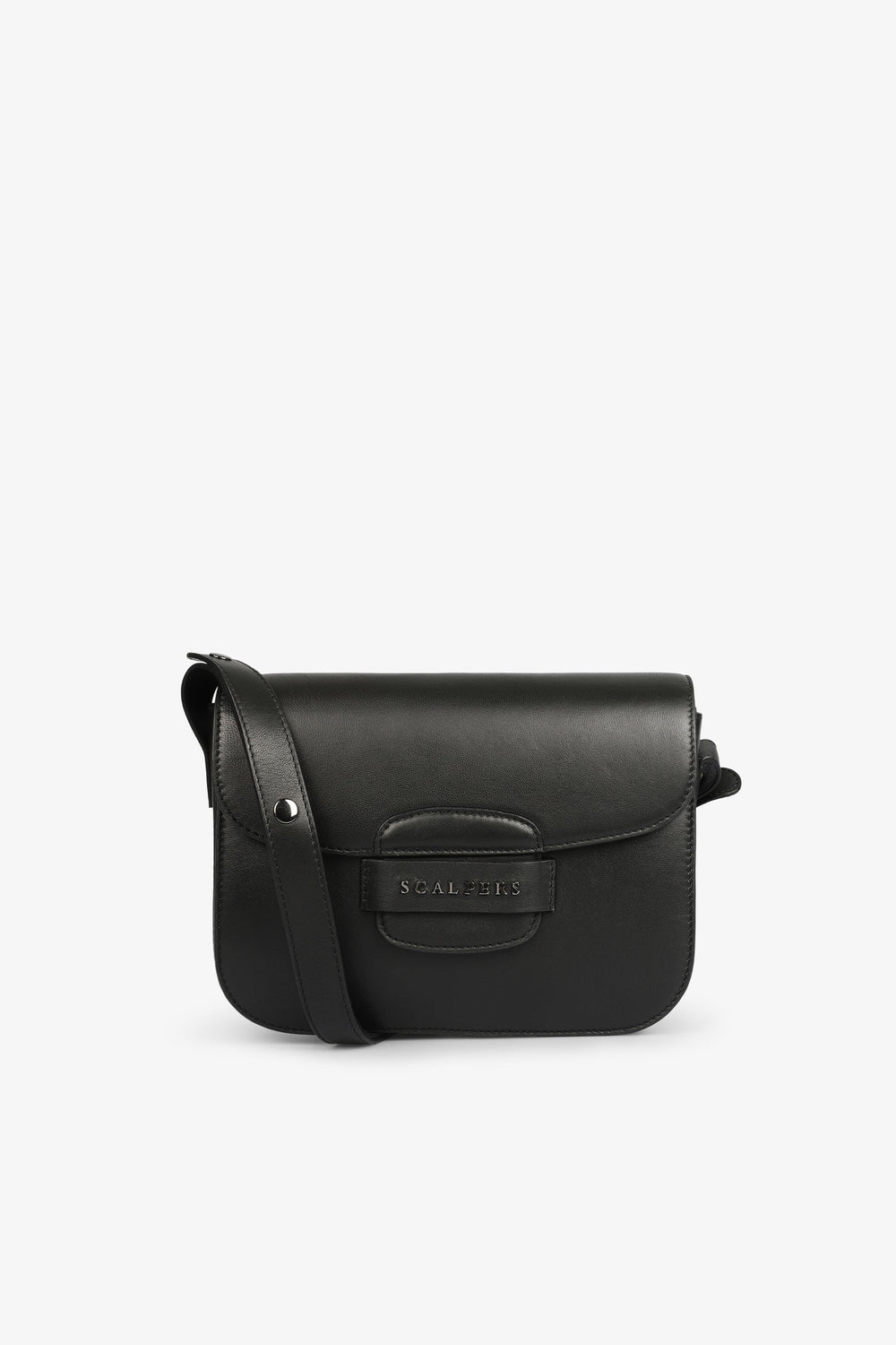 Leather bag with front metal logo