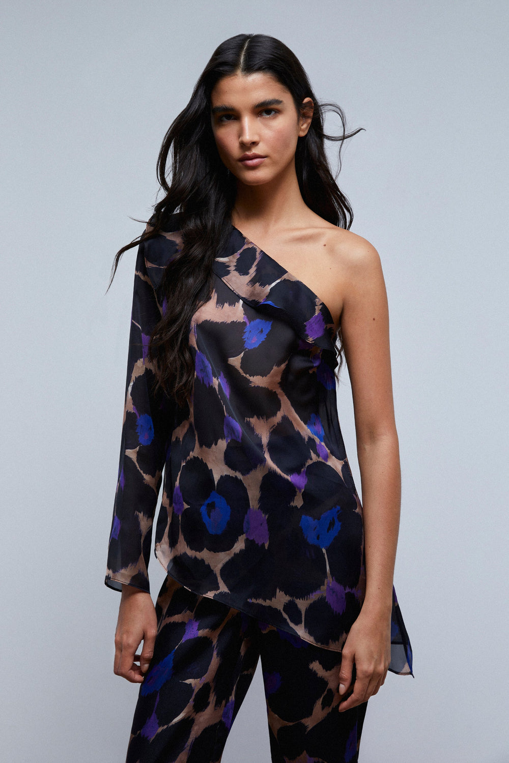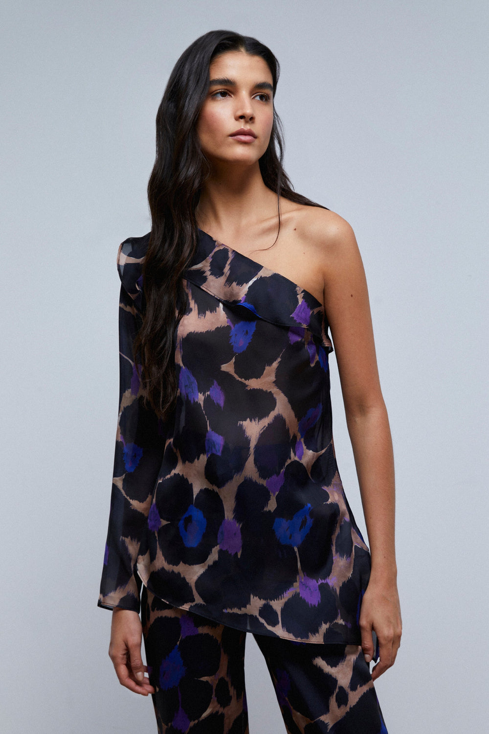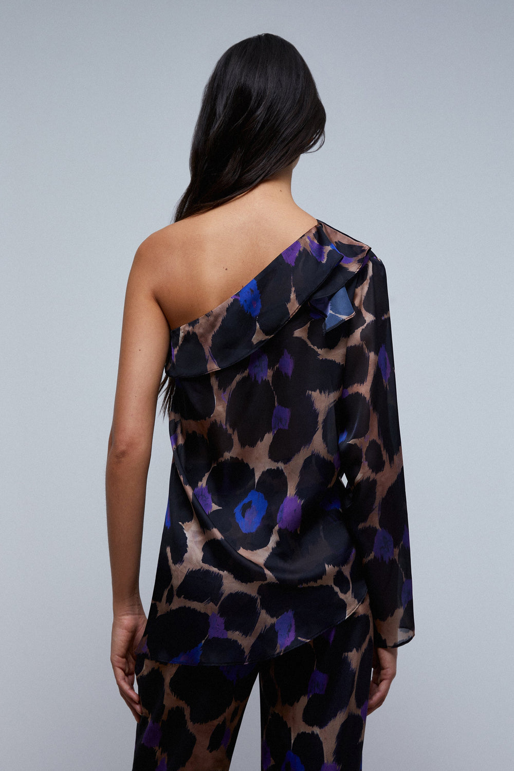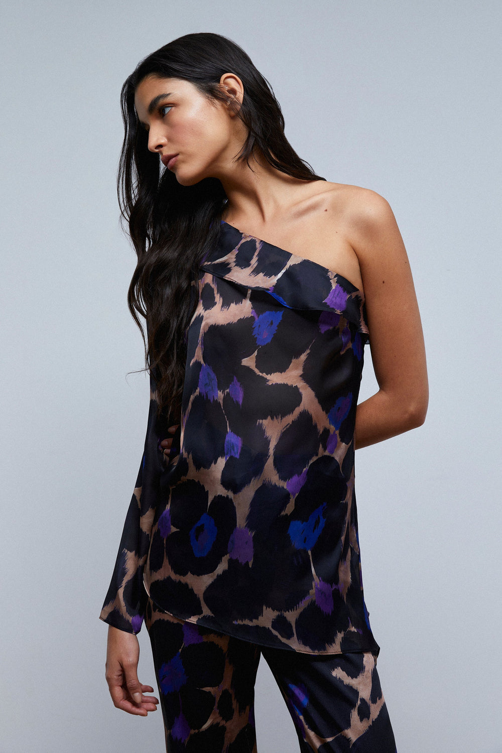 ASYMMETRIC ANIMAL PRINT BLOUSE