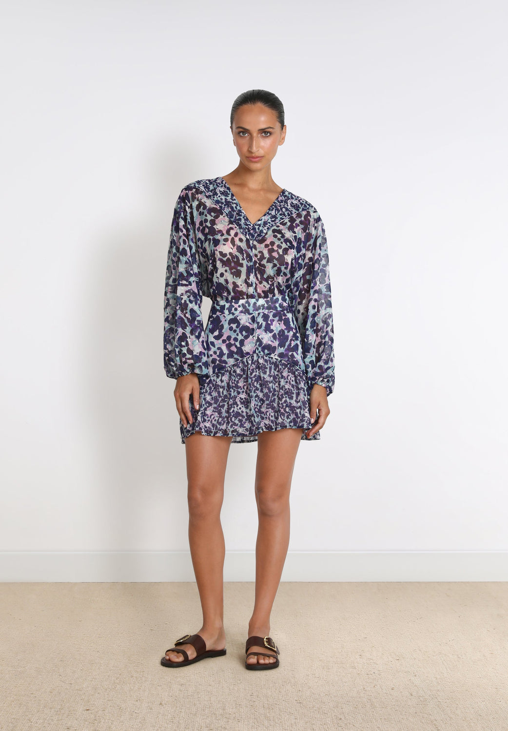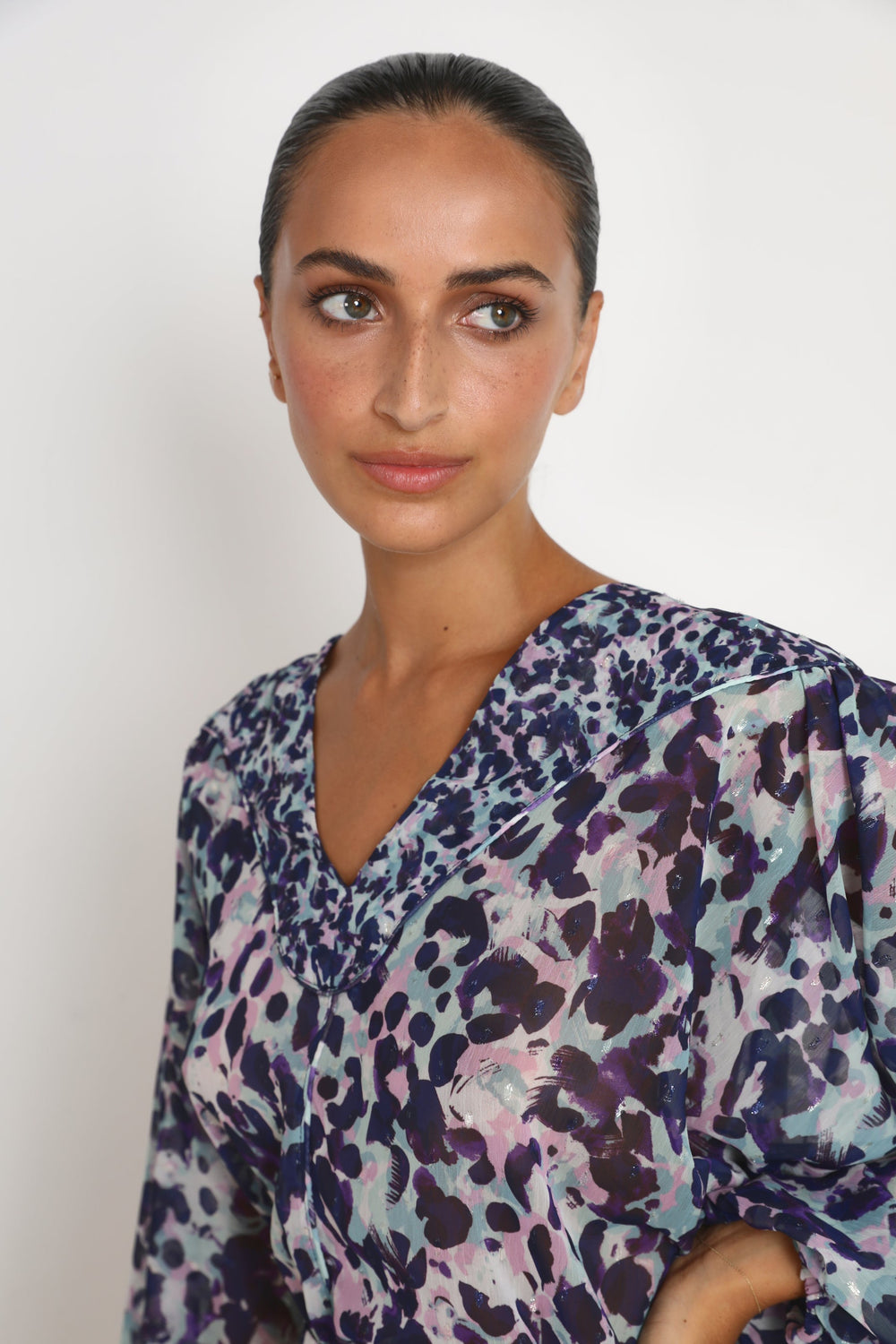 Animal print blouse.