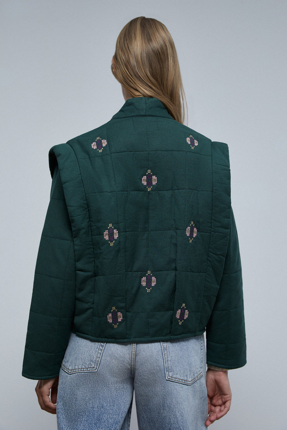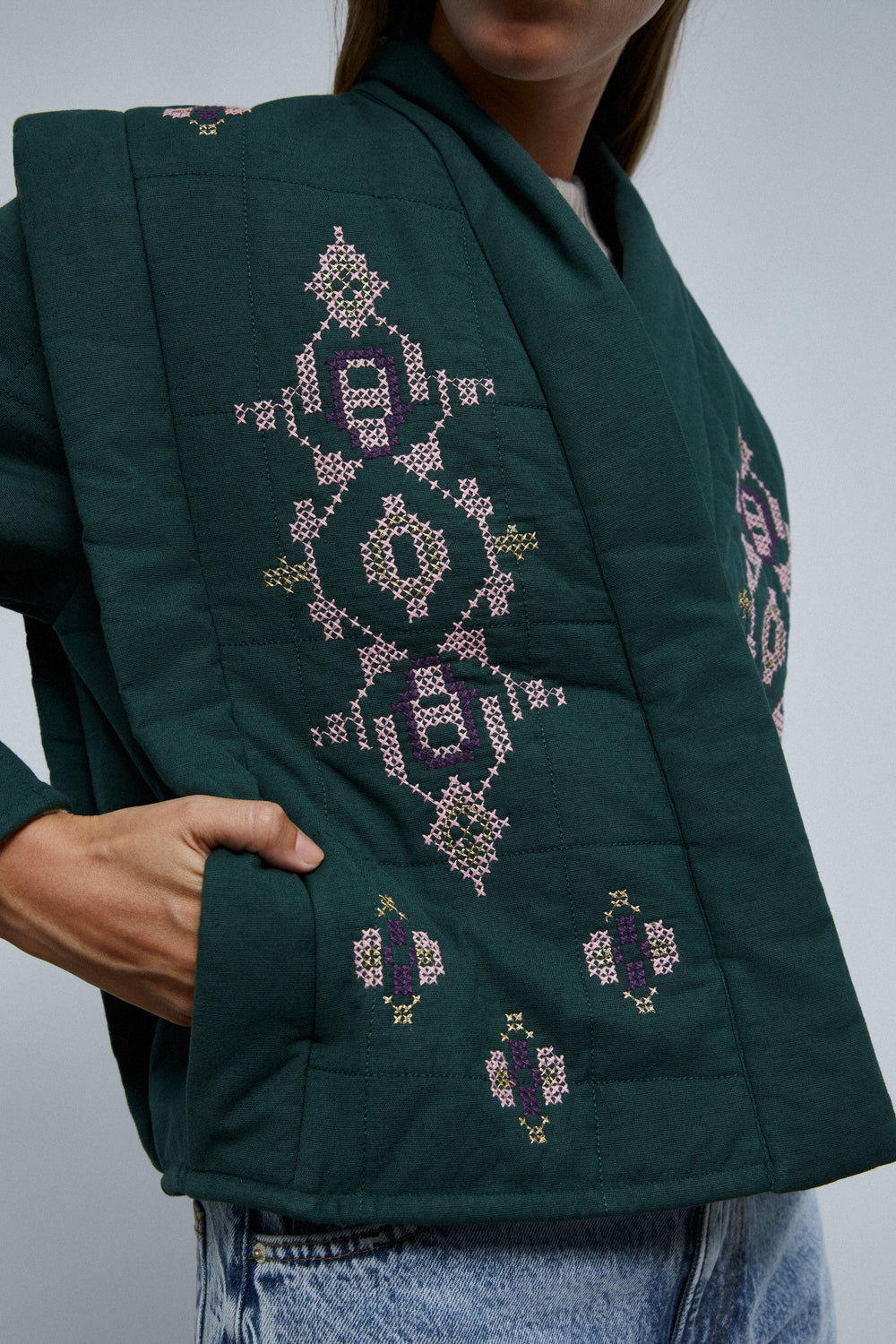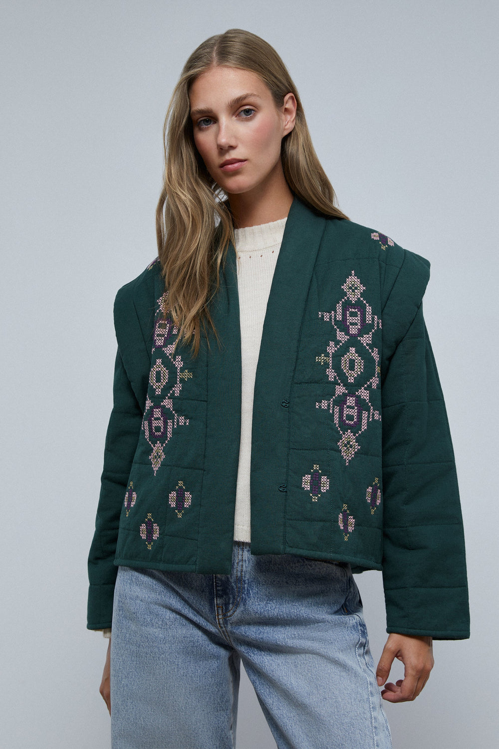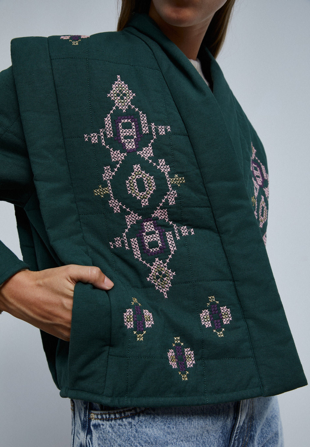 QUILTED CARDIGAN WITH EMBROIDERED DETAILS