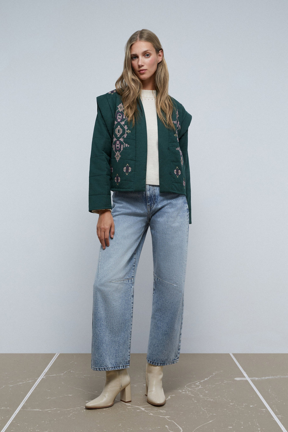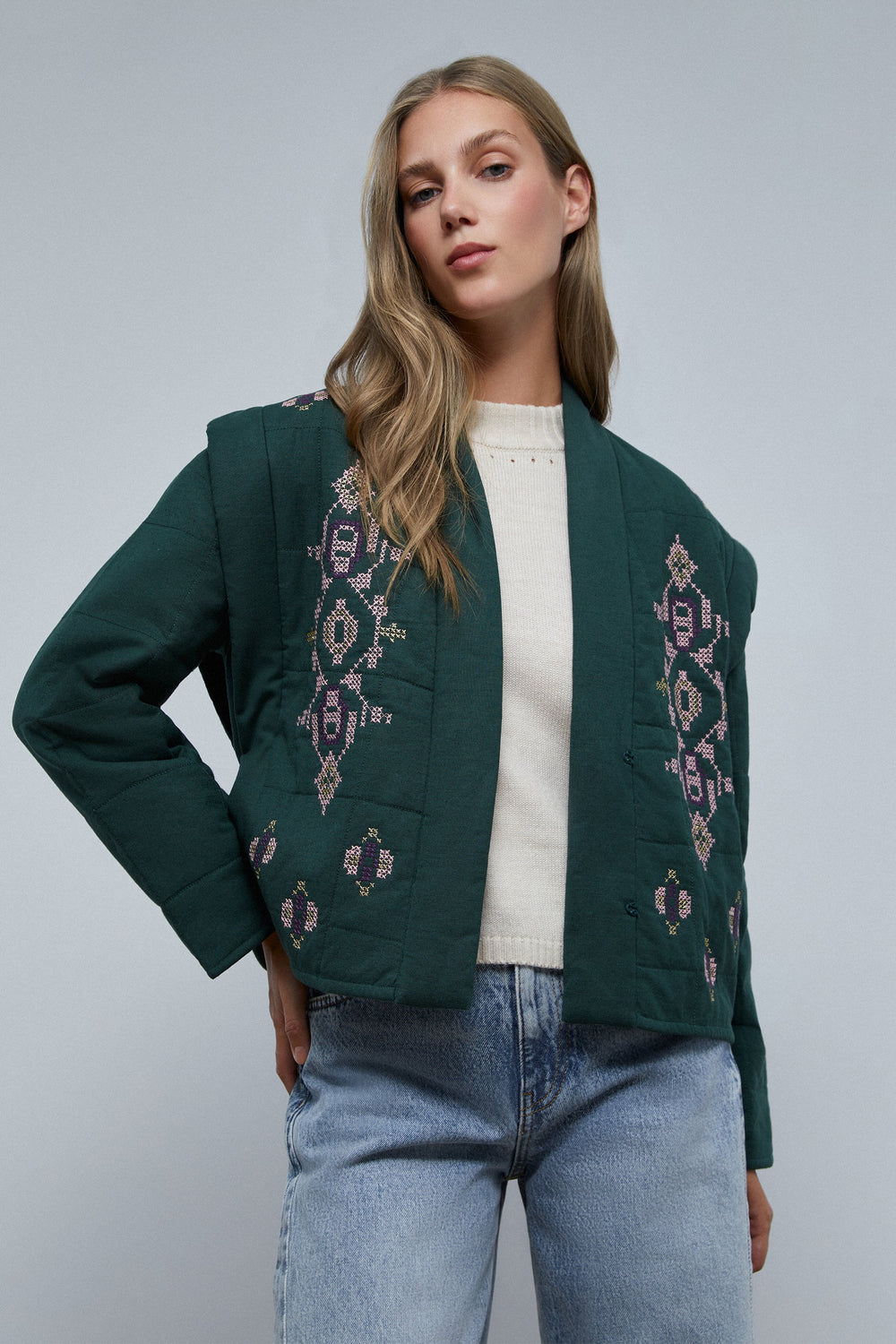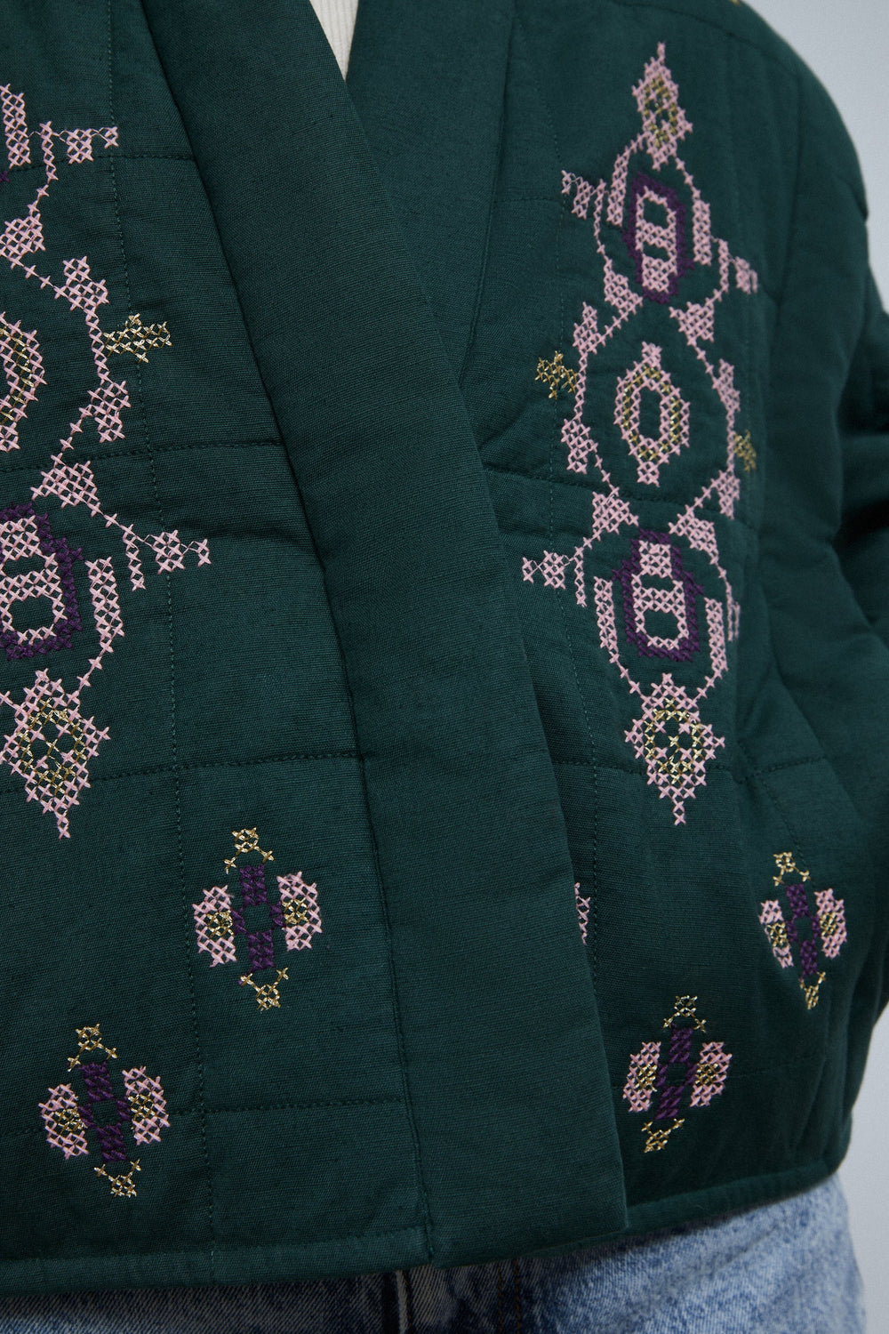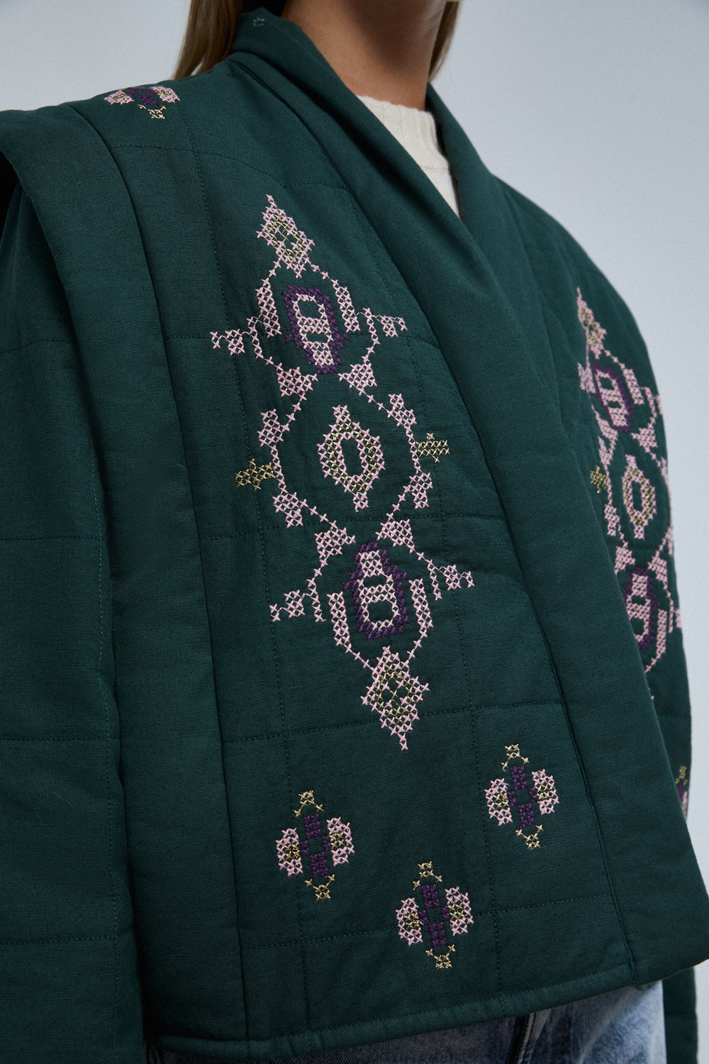QUILTED CARDIGAN WITH EMBROIDERED DETAILS