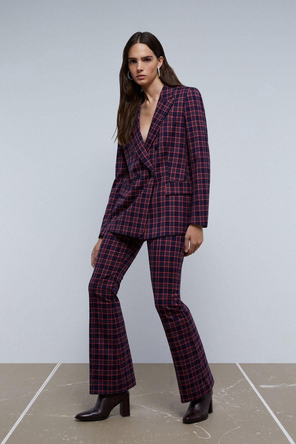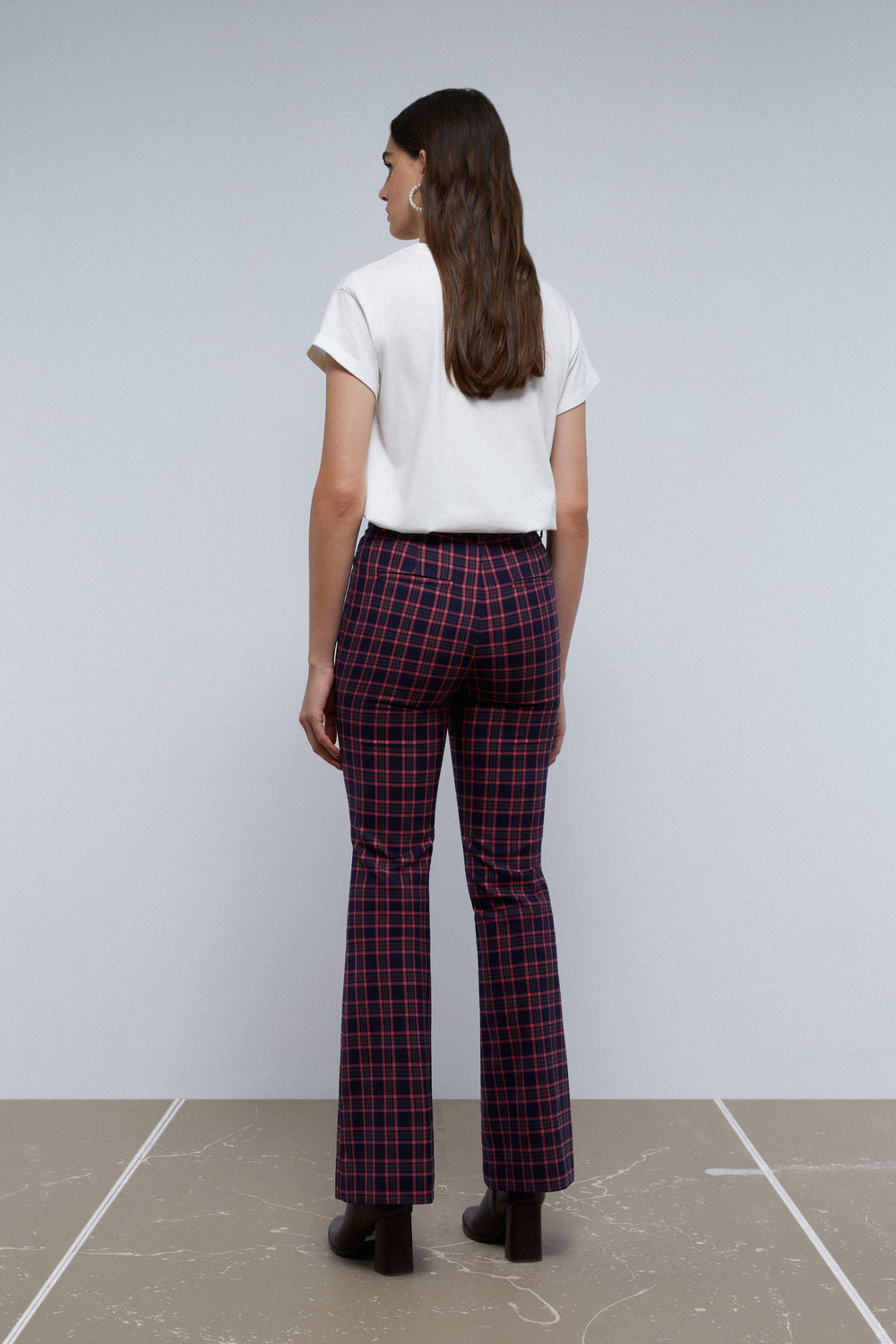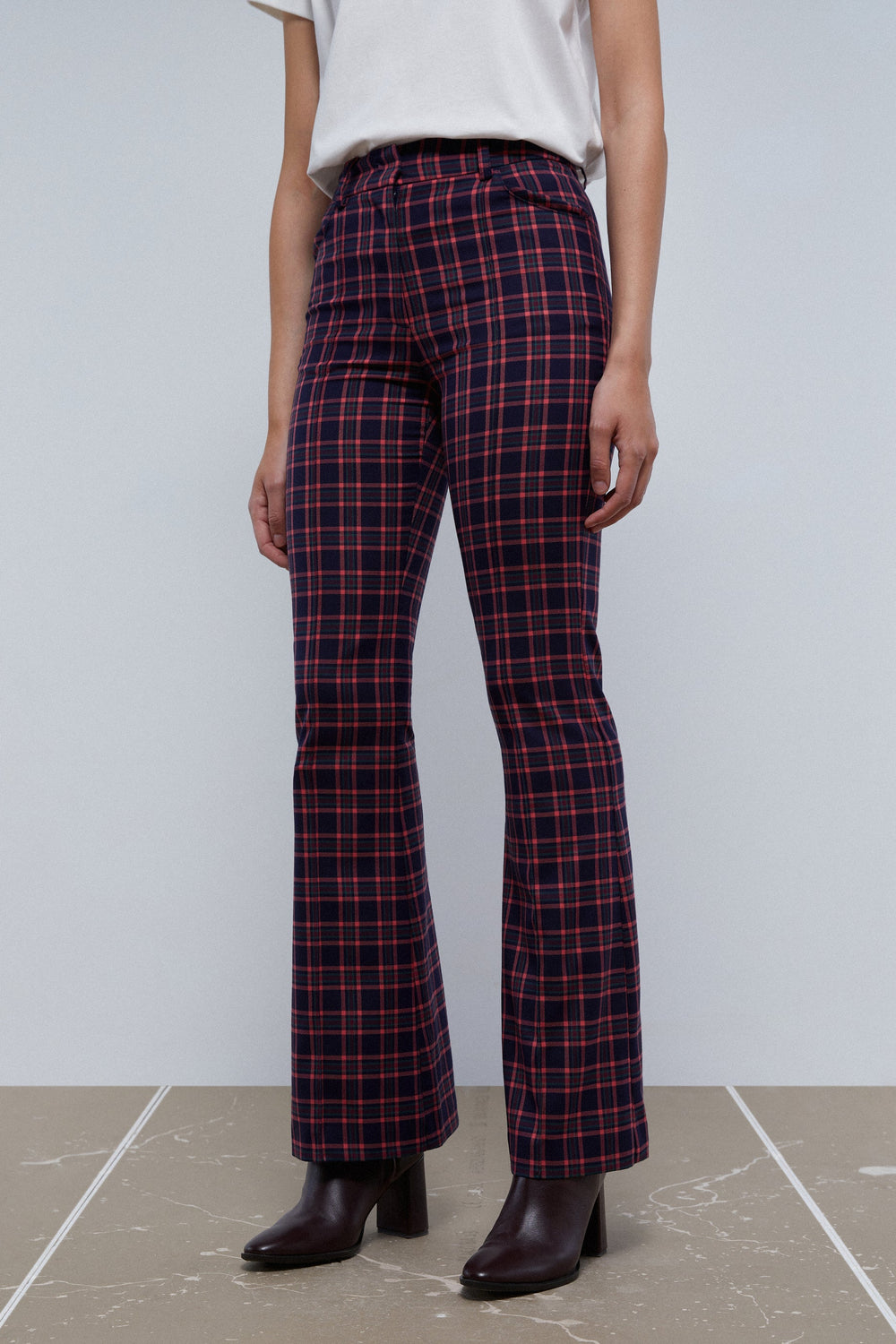 FLARED CHECK TROUSERS