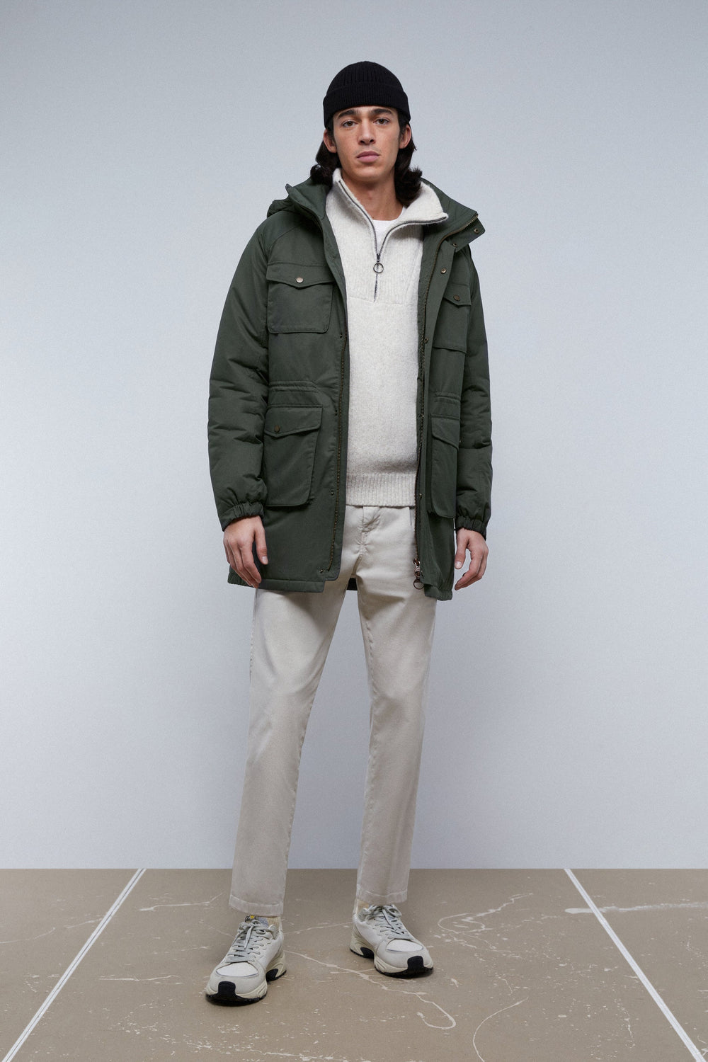 Water-repellent parka.