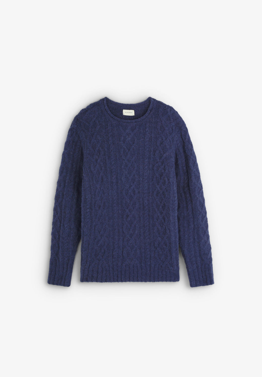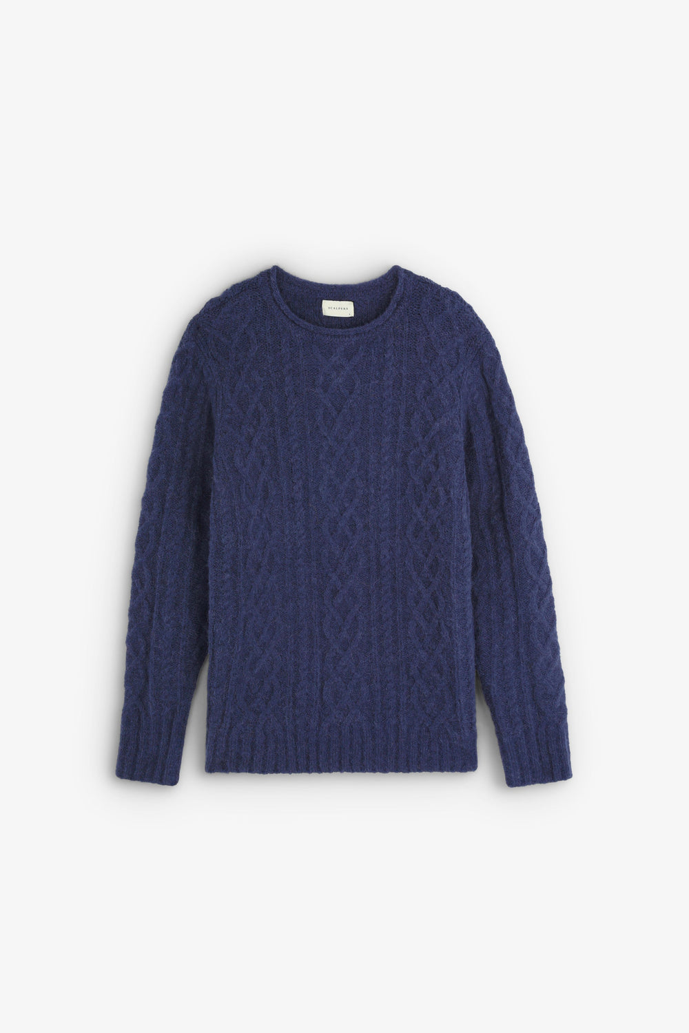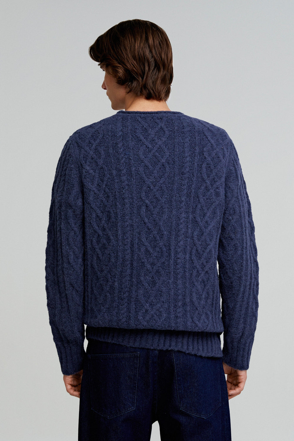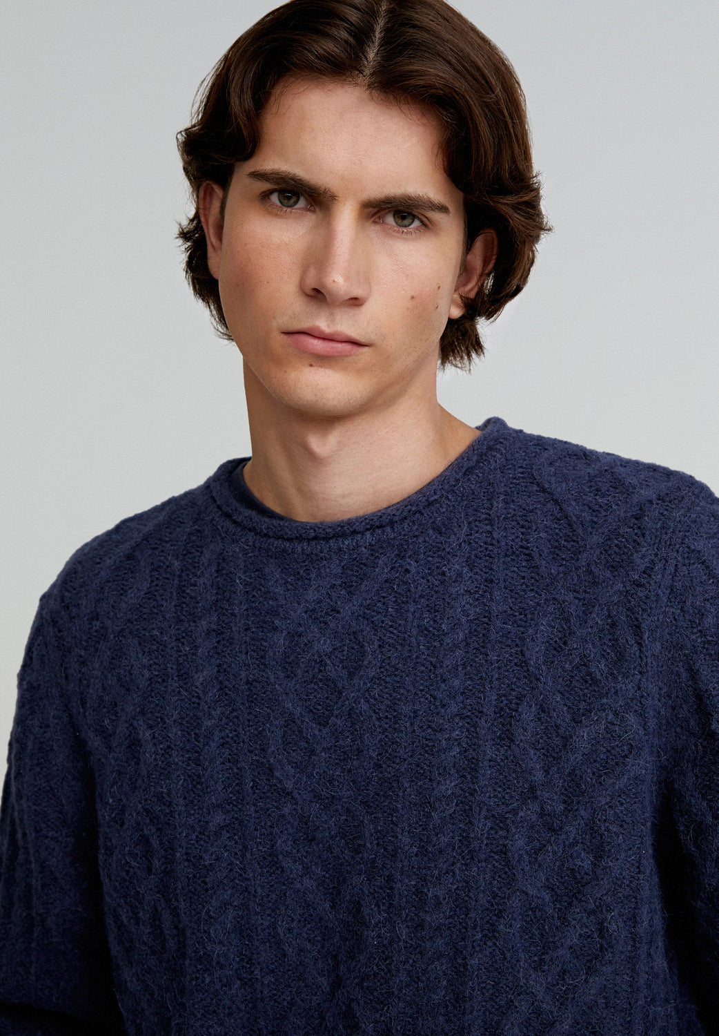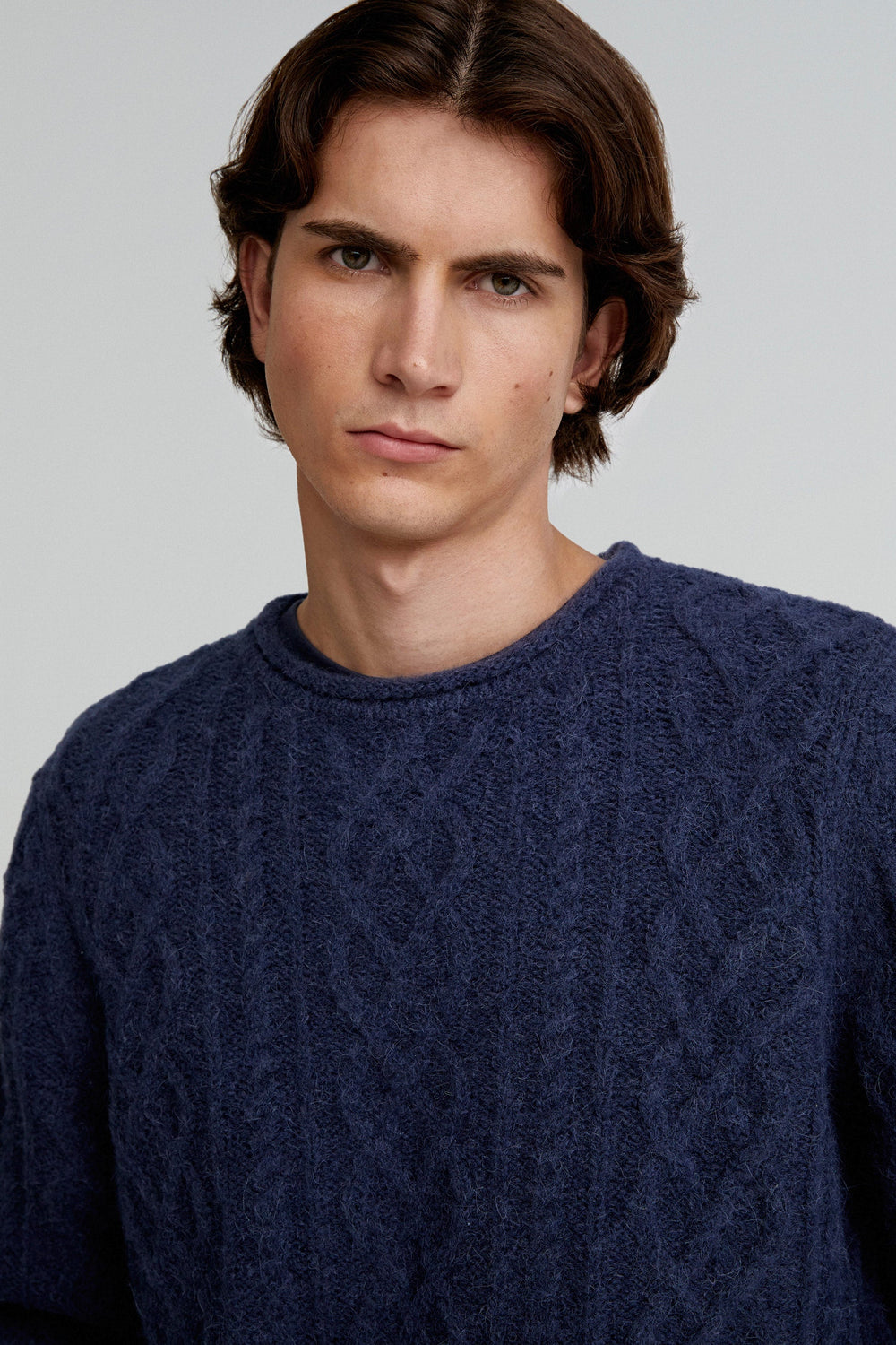 Jumper made of wool and alpaca blend. Regular fit, round neck and long sleeves. Cable-knit detail.