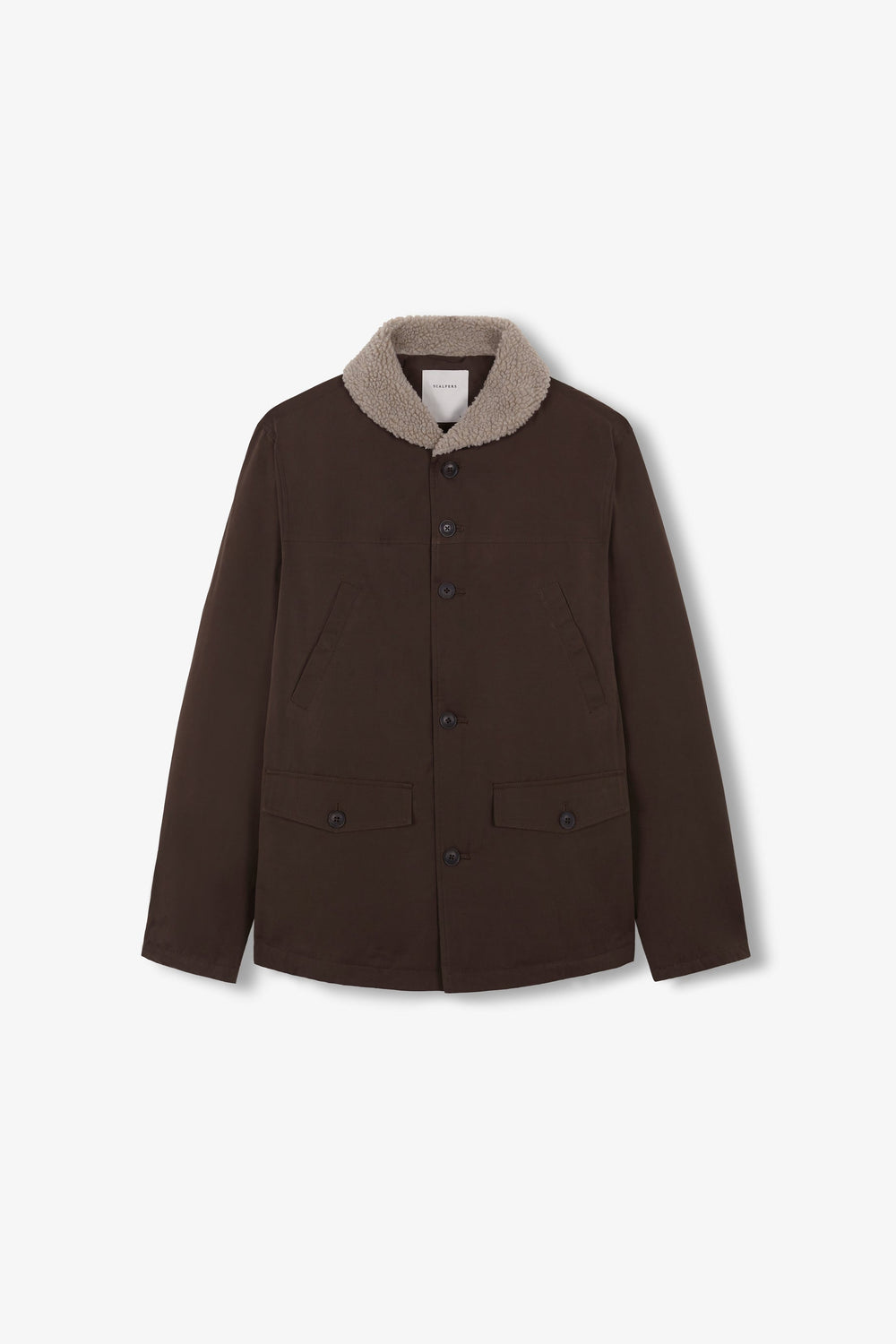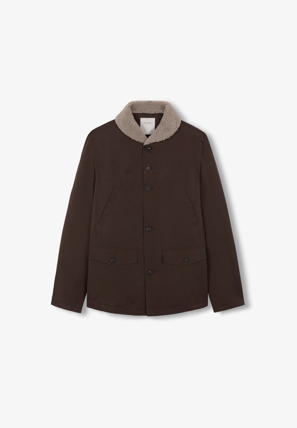 - Collar with shearling detail
