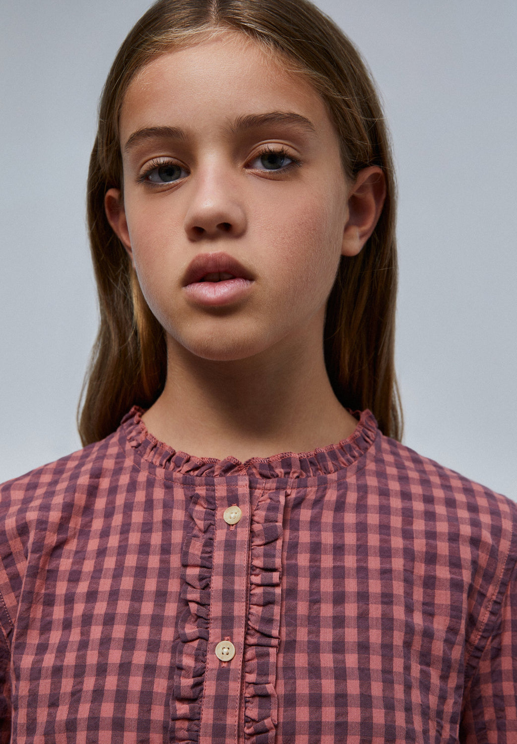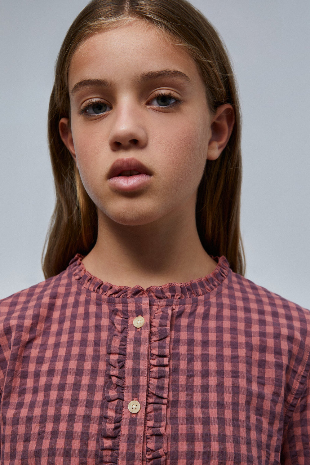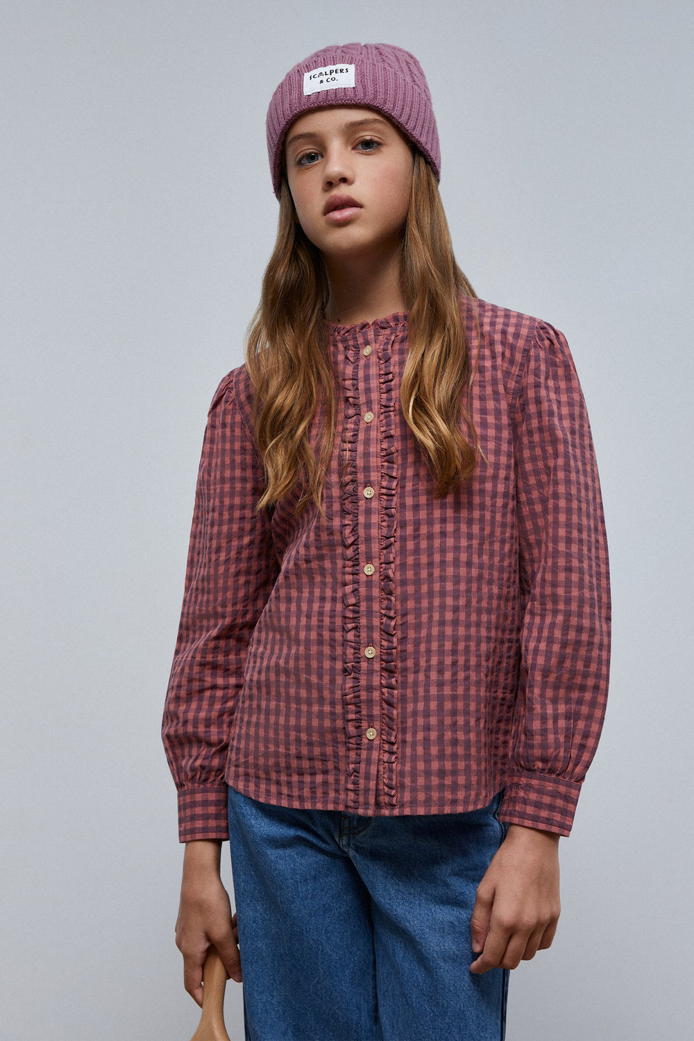 Gingham shirt with ruffle detail