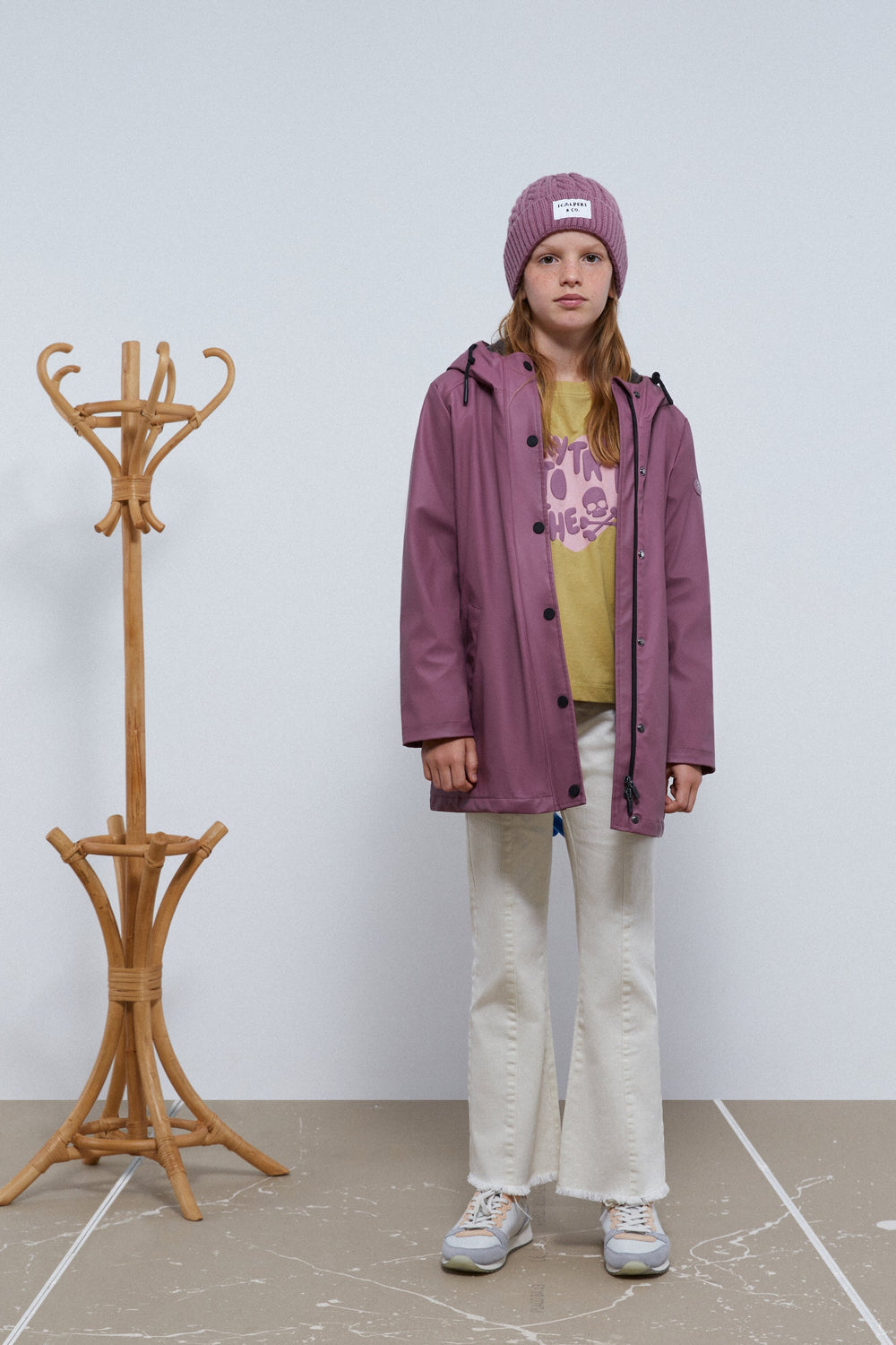 - Double slider thermo-sealed zip and flap pockets with snap button fastening