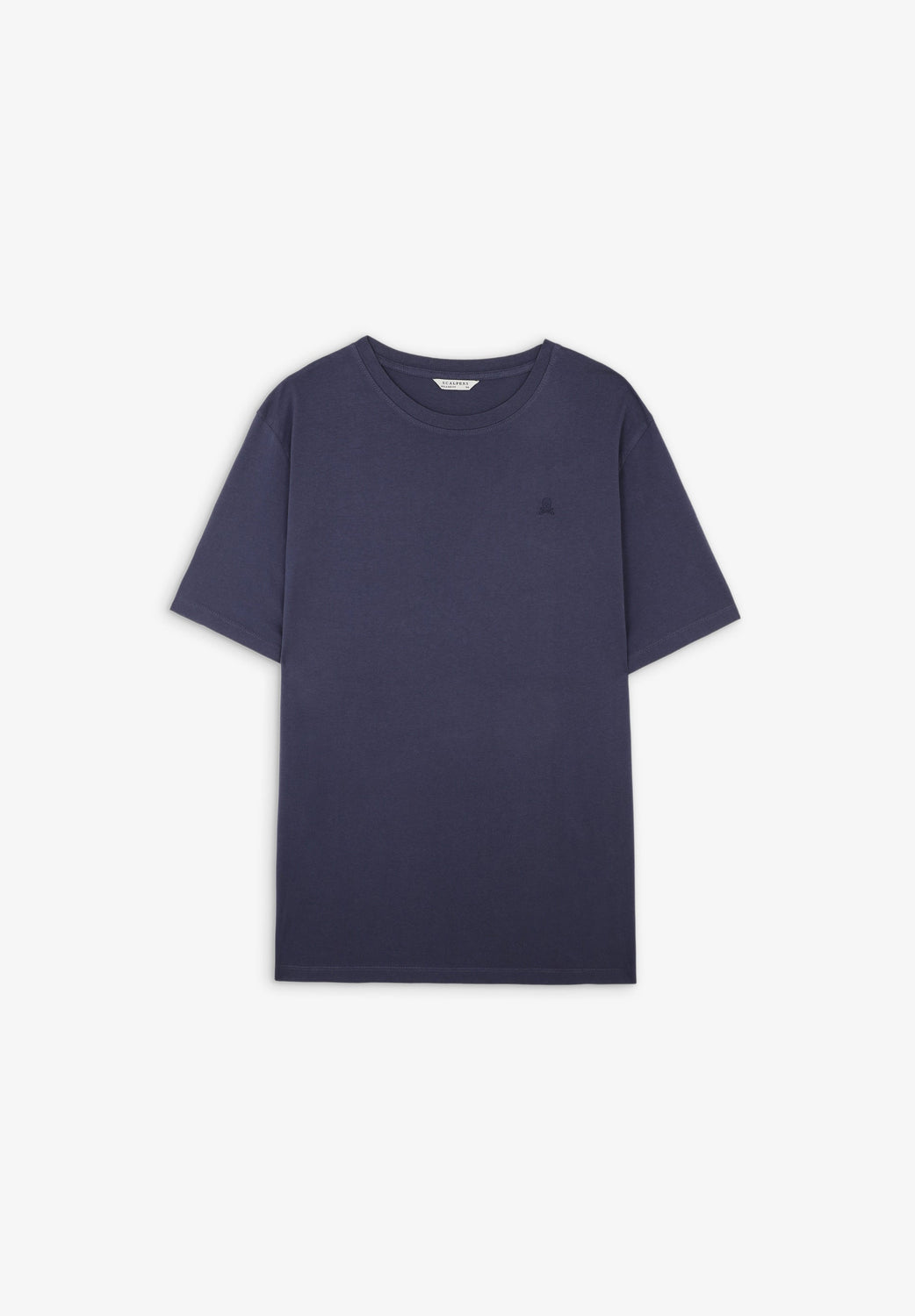 Basic T-shirt with embroidered skull detail. Made of 100% BCI cotton. Relaxed fit. Round neckline. Short sleeves.