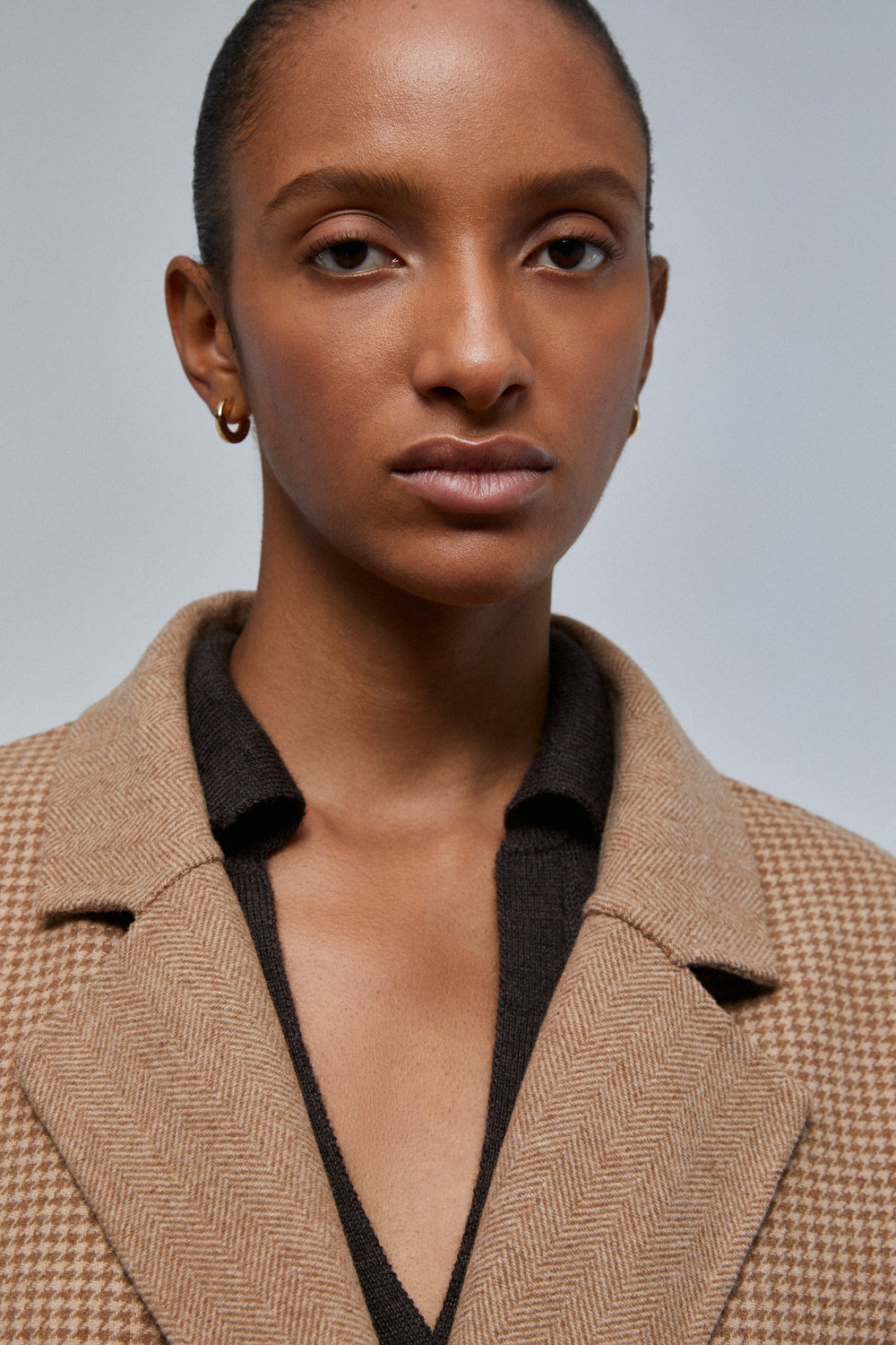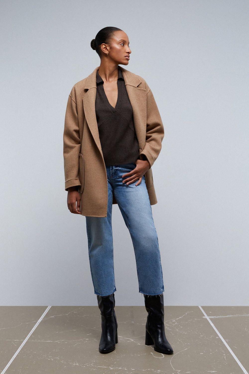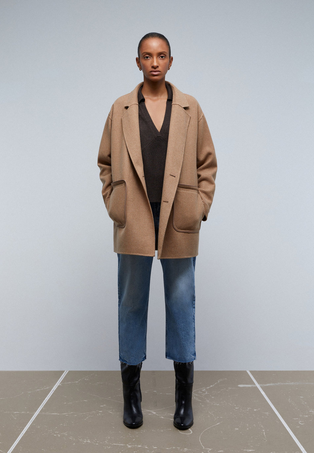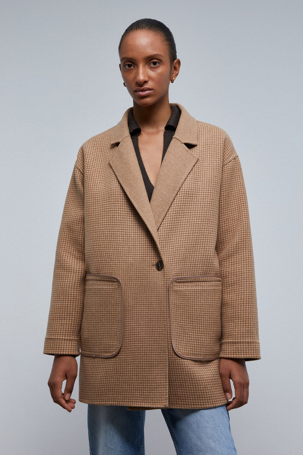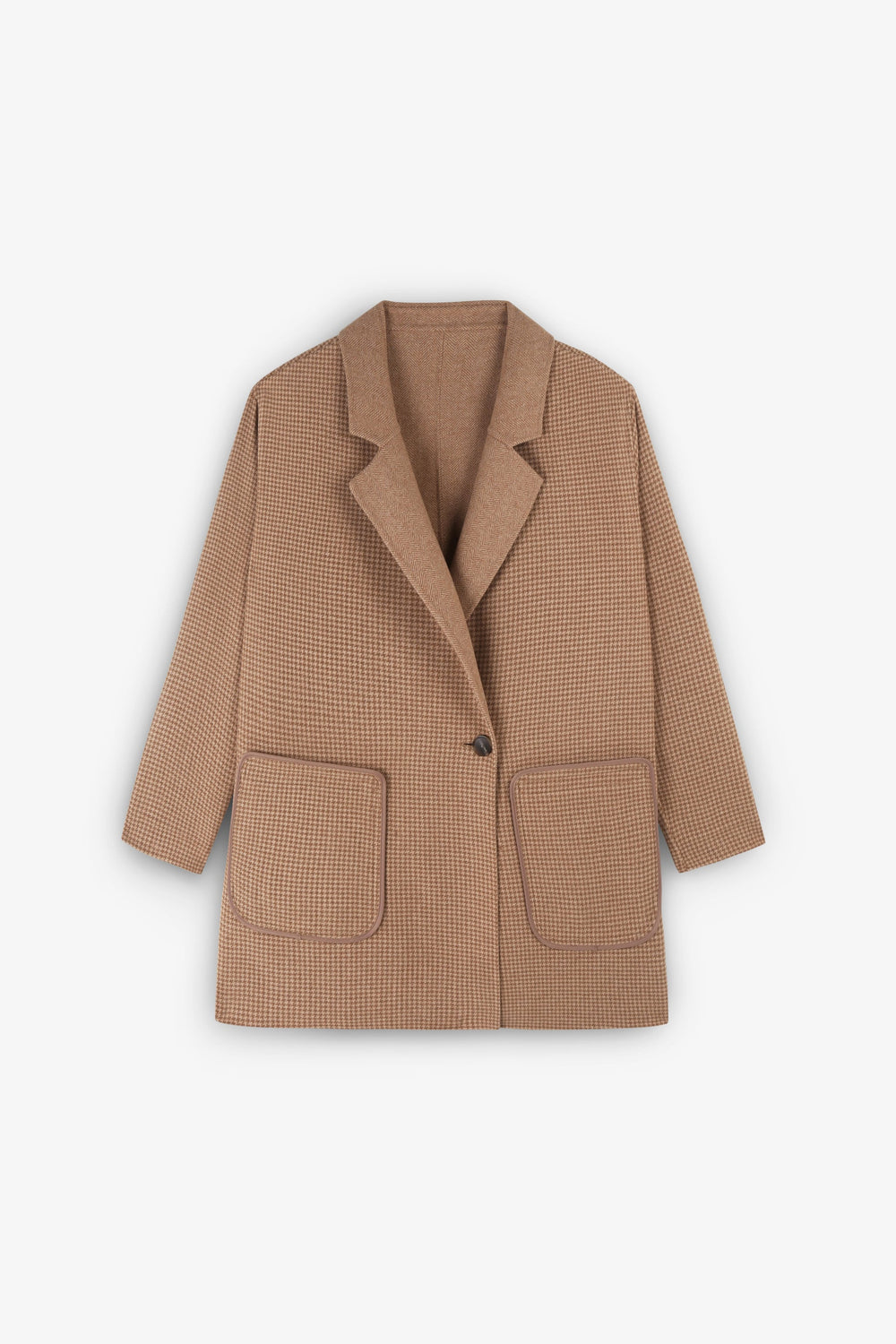 - V-neck with houndstooth lapel