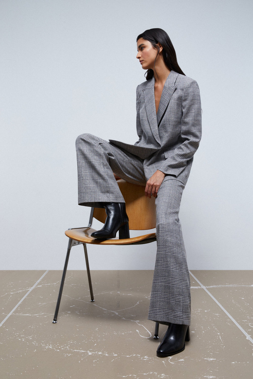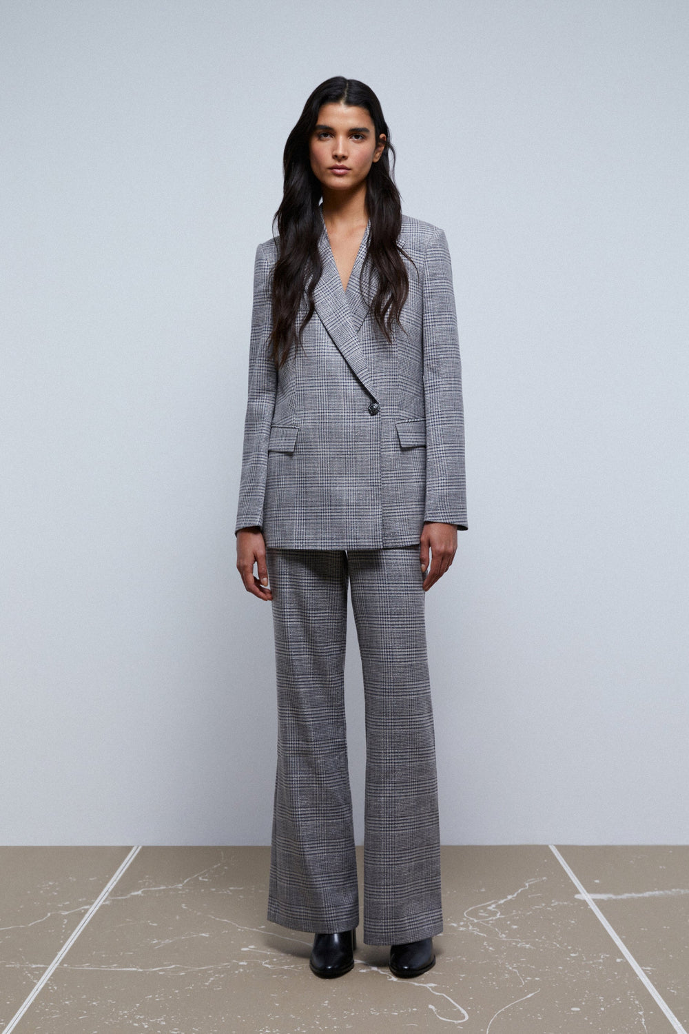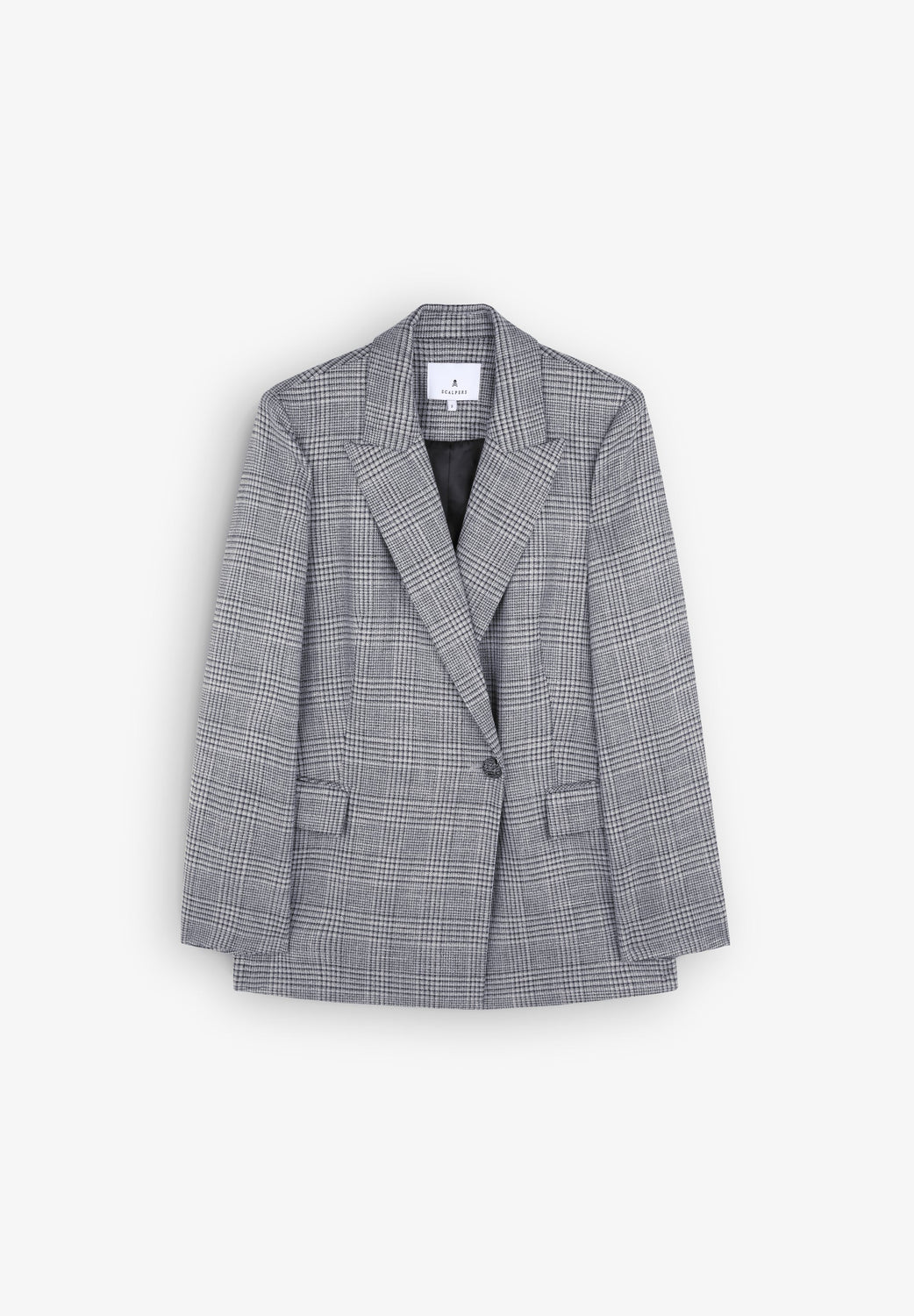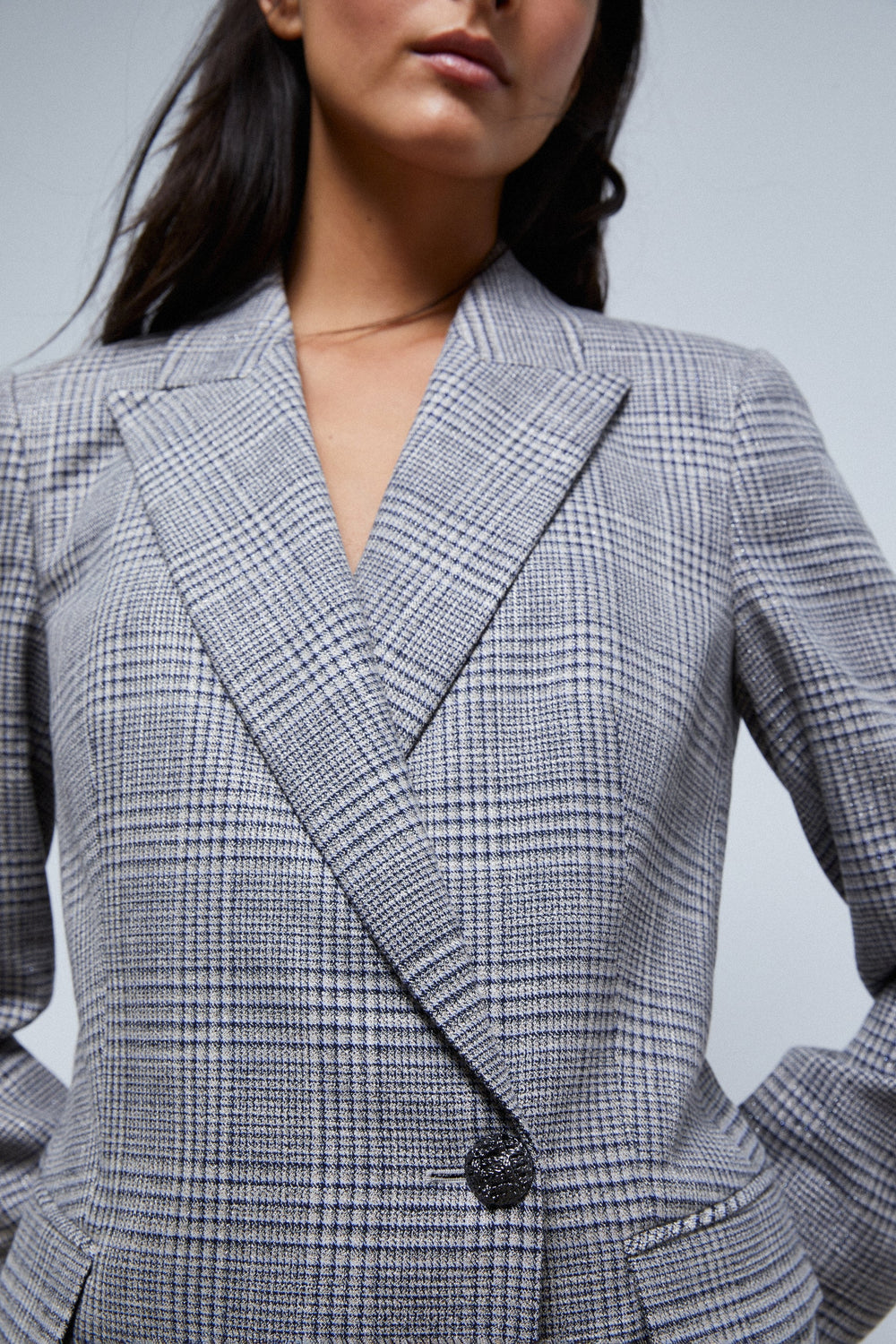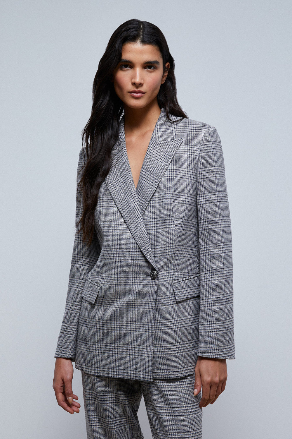 DOUBLE-BREASTED CHECK BLAZER WITH BUTTON