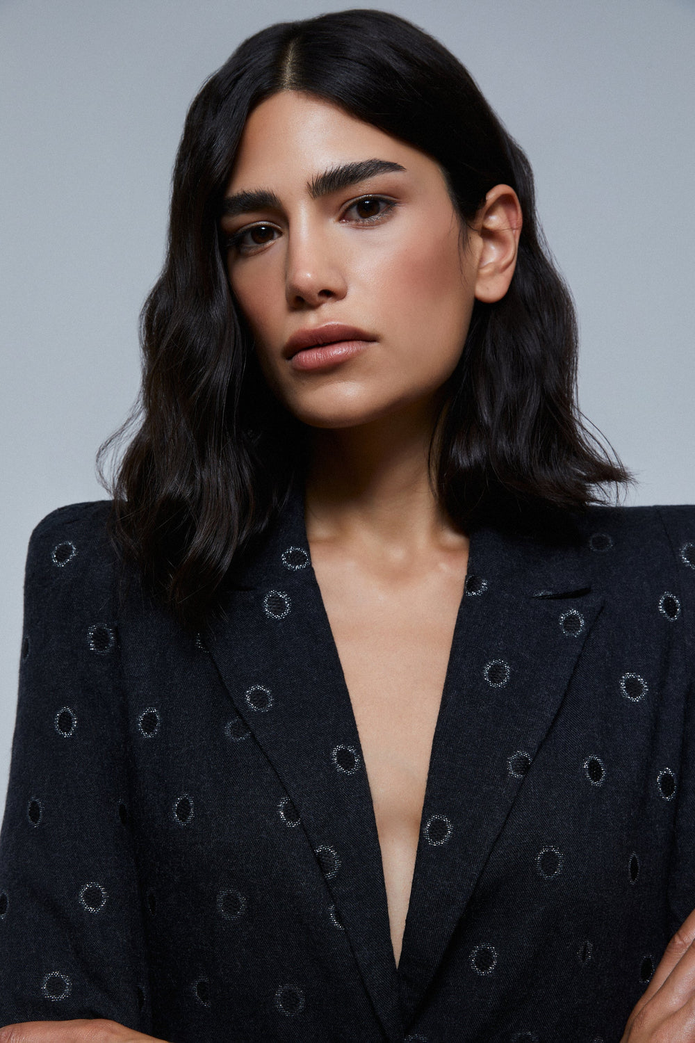 Blazer with circles with metallic thread details