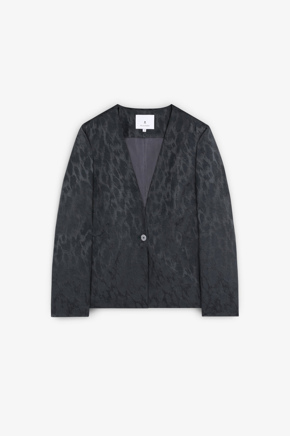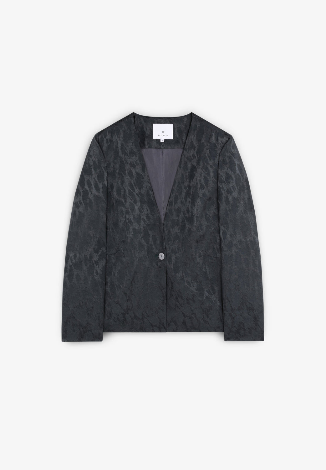 Animal print blazer without lapel.