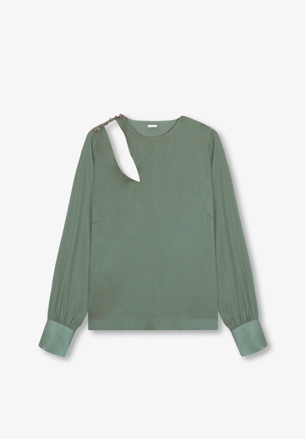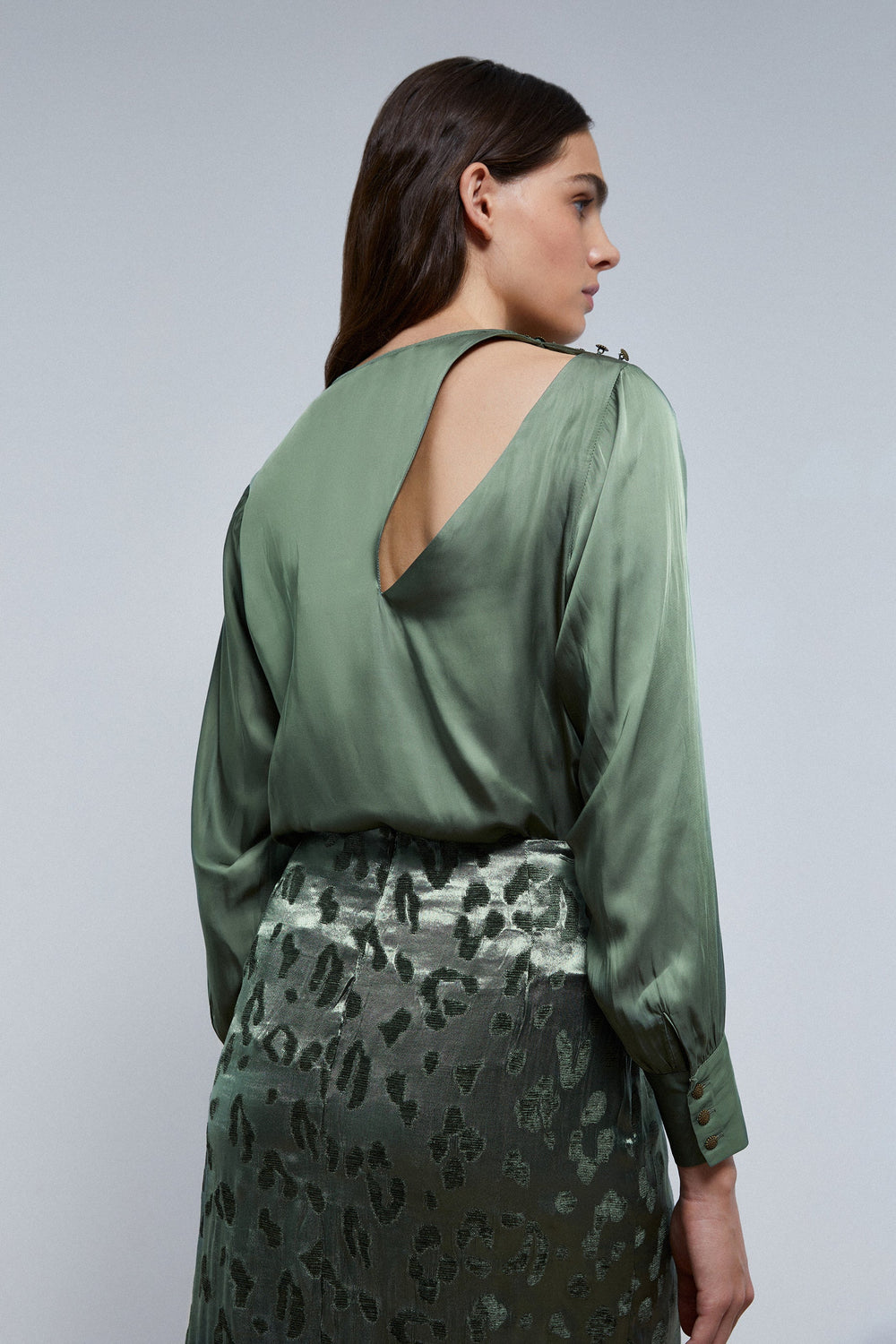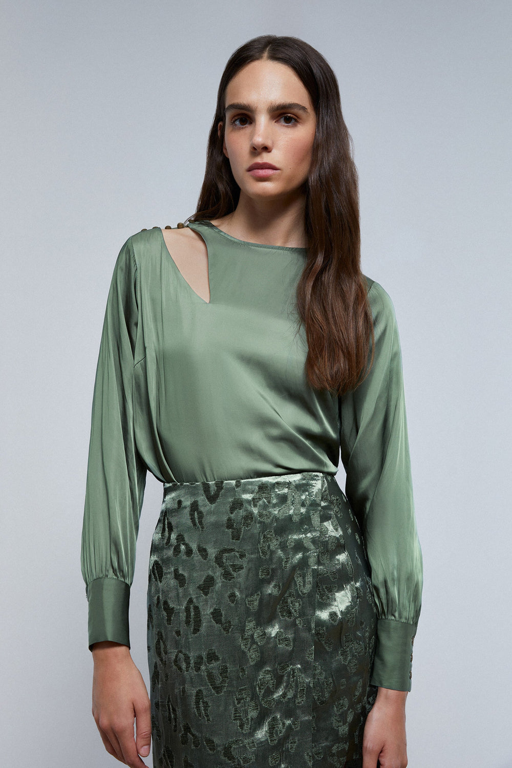 Satin blouse with shoulder slit and button fastening