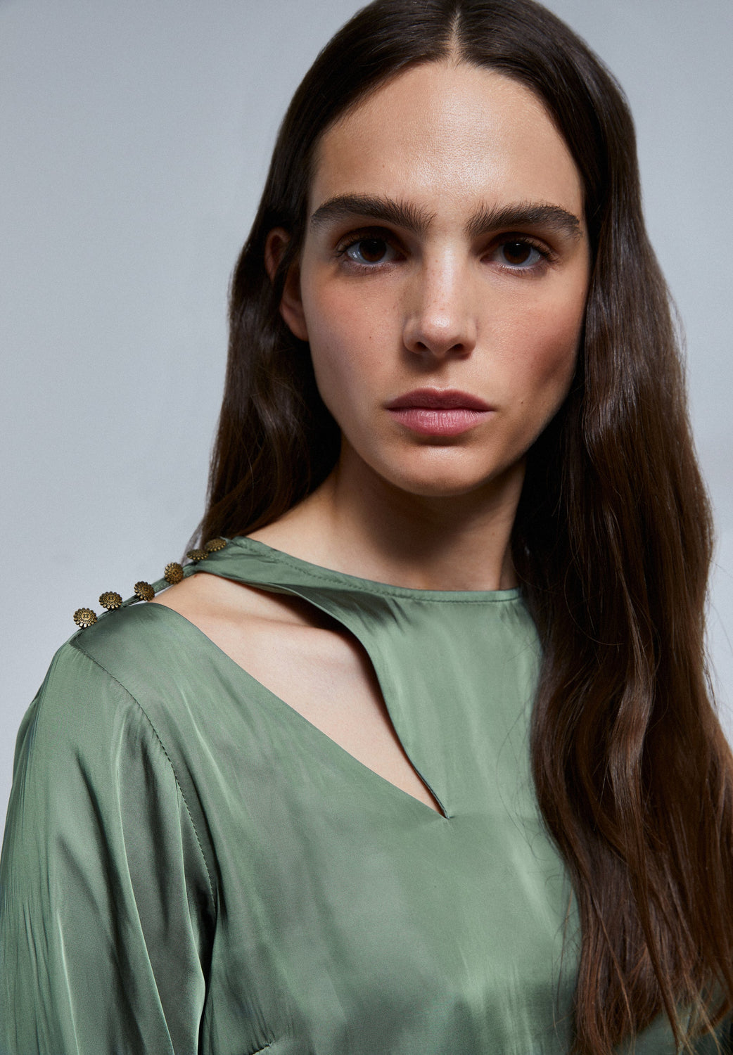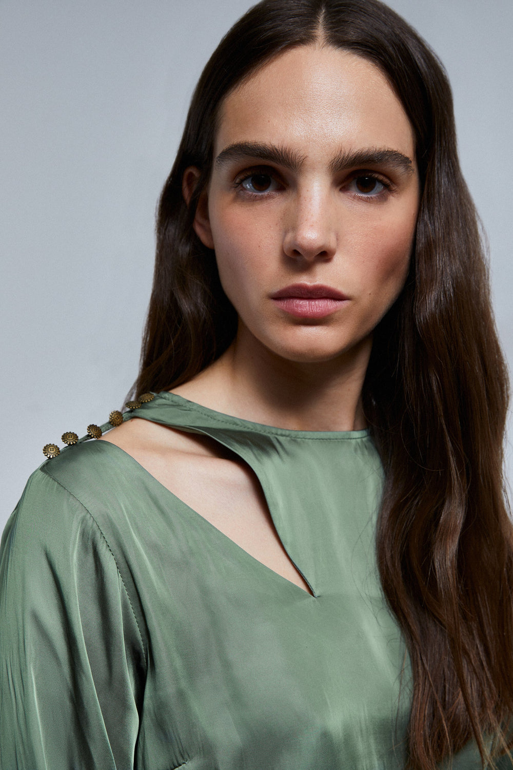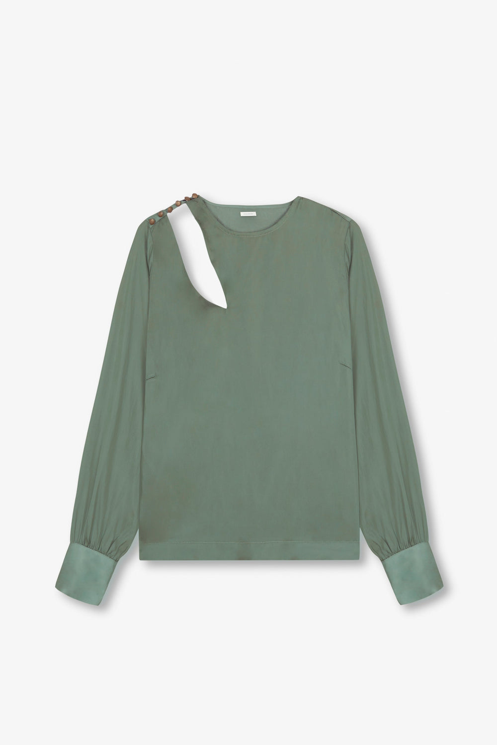 Satin blouse with shoulder slit and button fastening