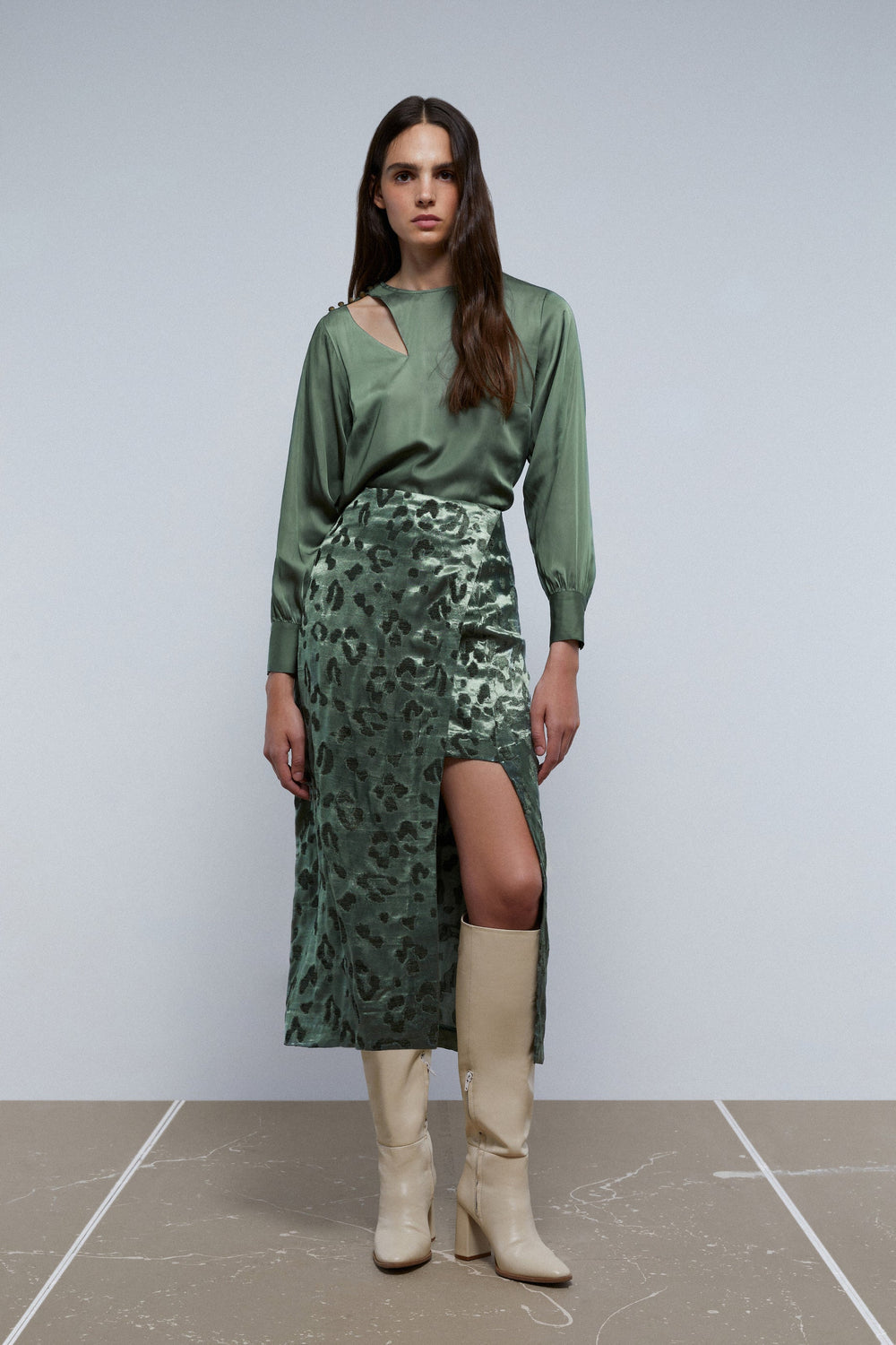 SATIN BLOUSE WITH SHOULDER SLIT
