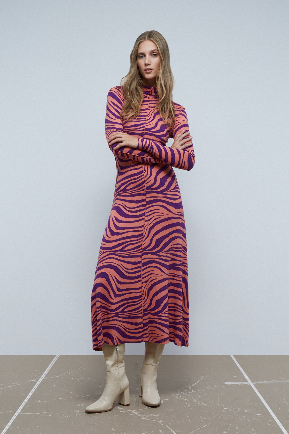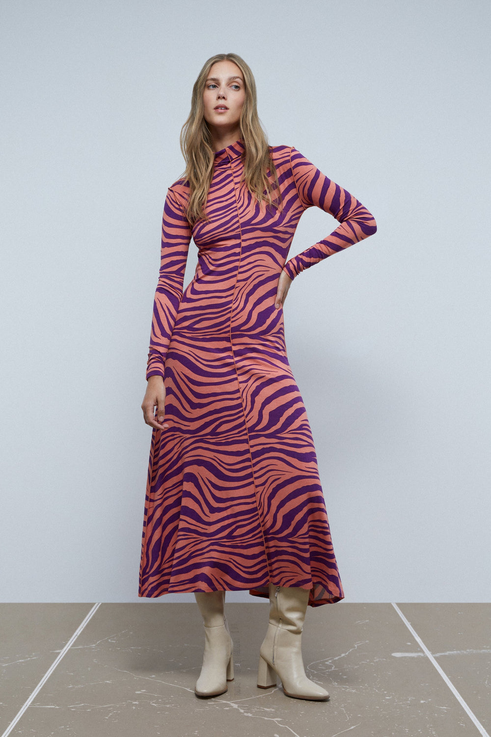MIDI DRESS WITH ZEBRA PRINT