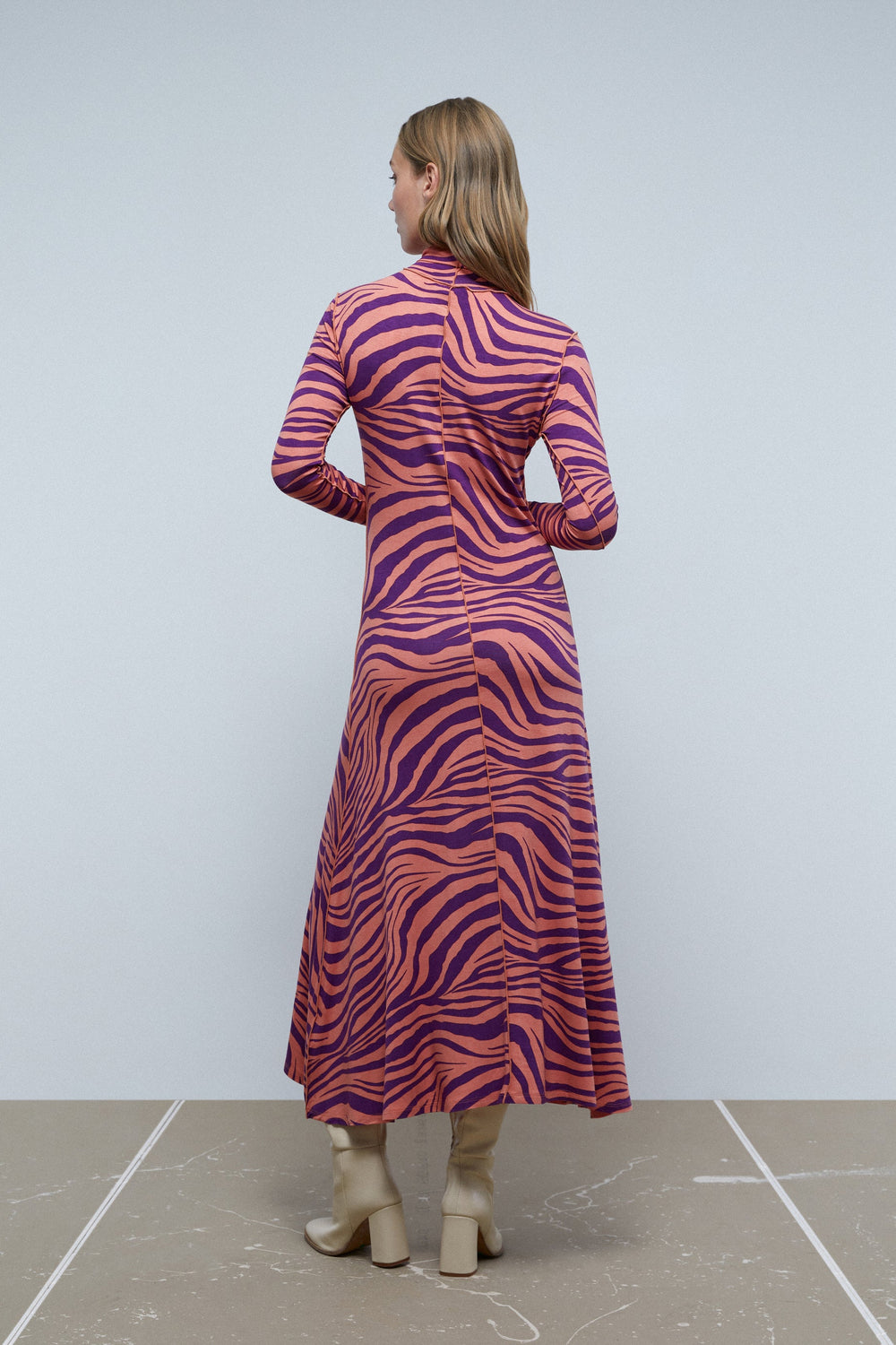 Midi dress with zebra print.