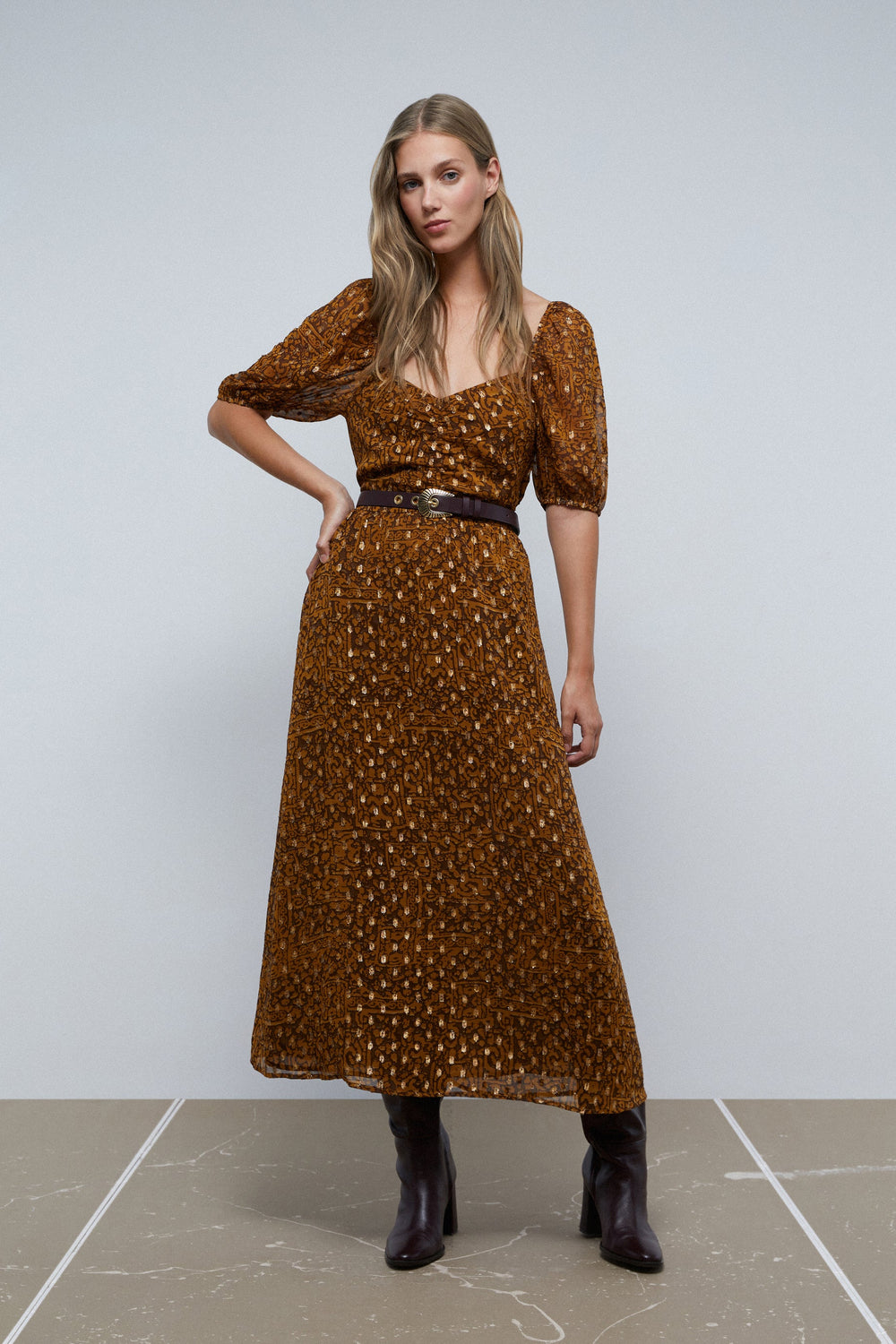 MIDI DRESS WITH SHIRRED CHEST DETAIL