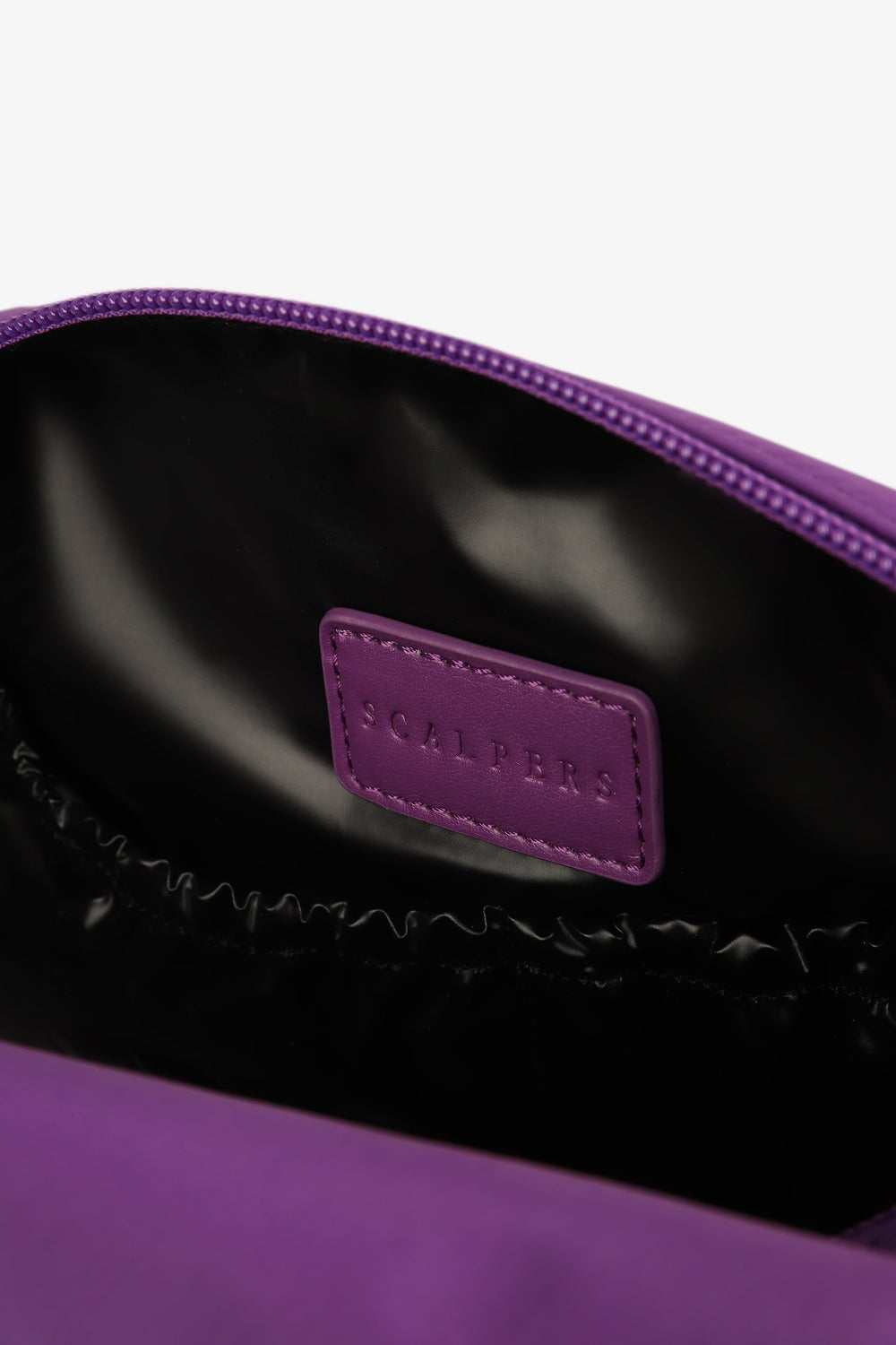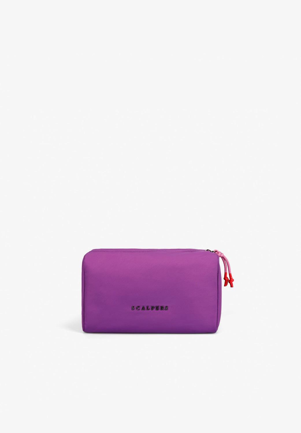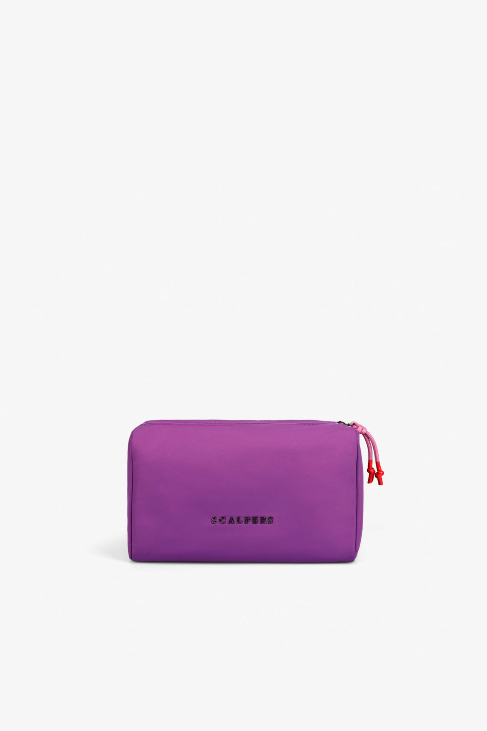 Toiletry bag with metal logo on the front.