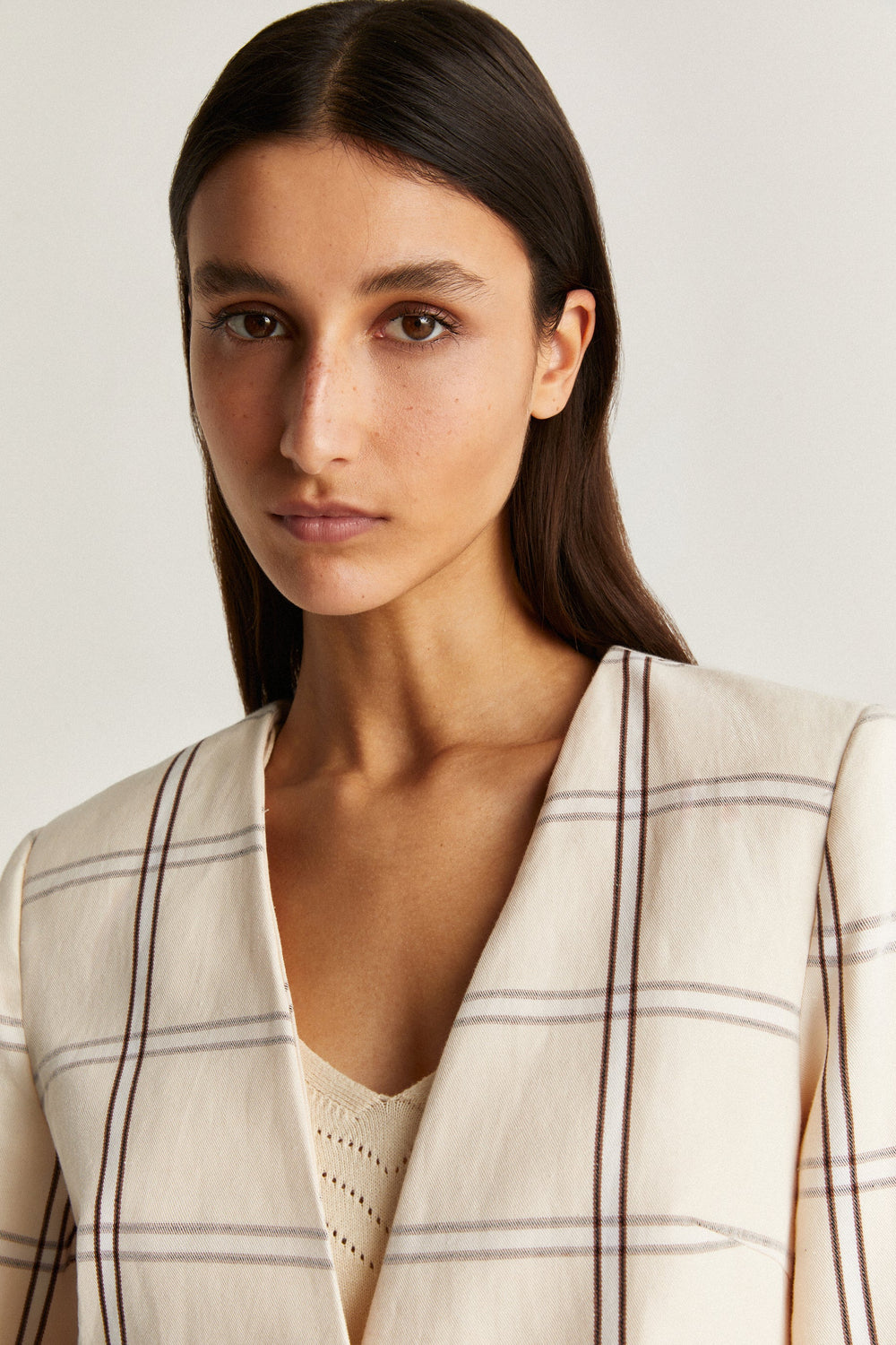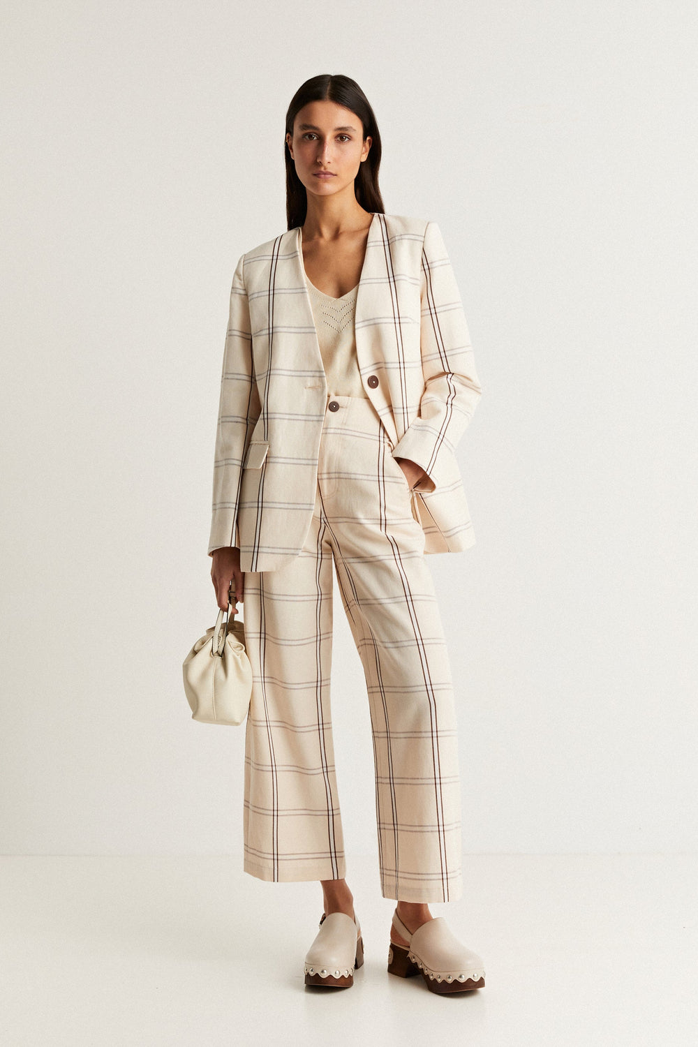 V-NECK CHECK BLAZER