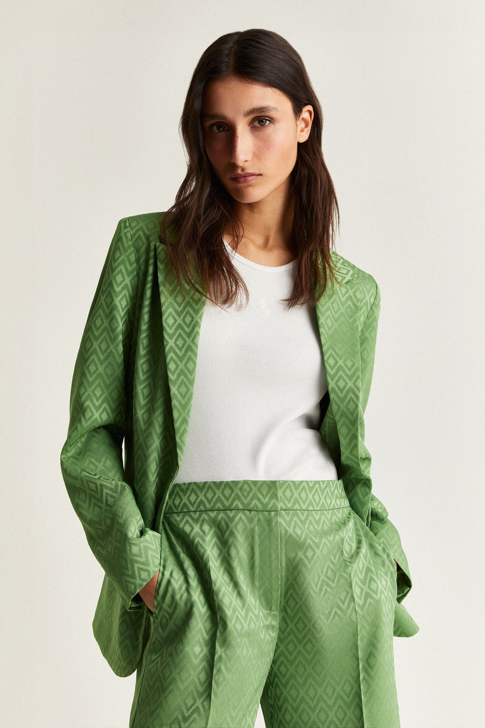 Blazer with ethnic print.
