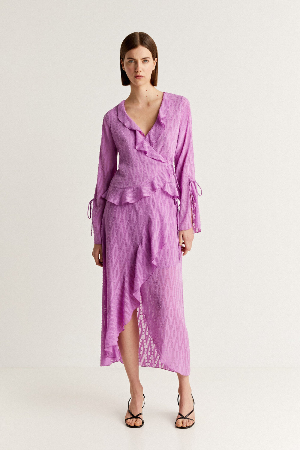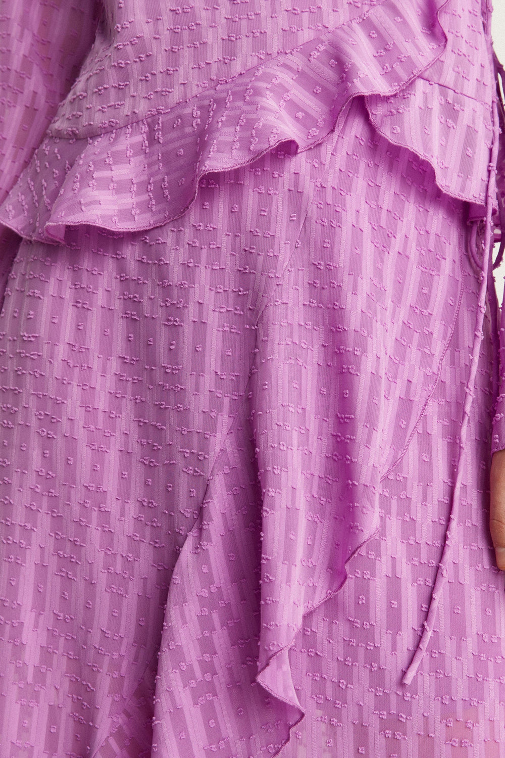 - Made of flowing fabric and Swiss dot details