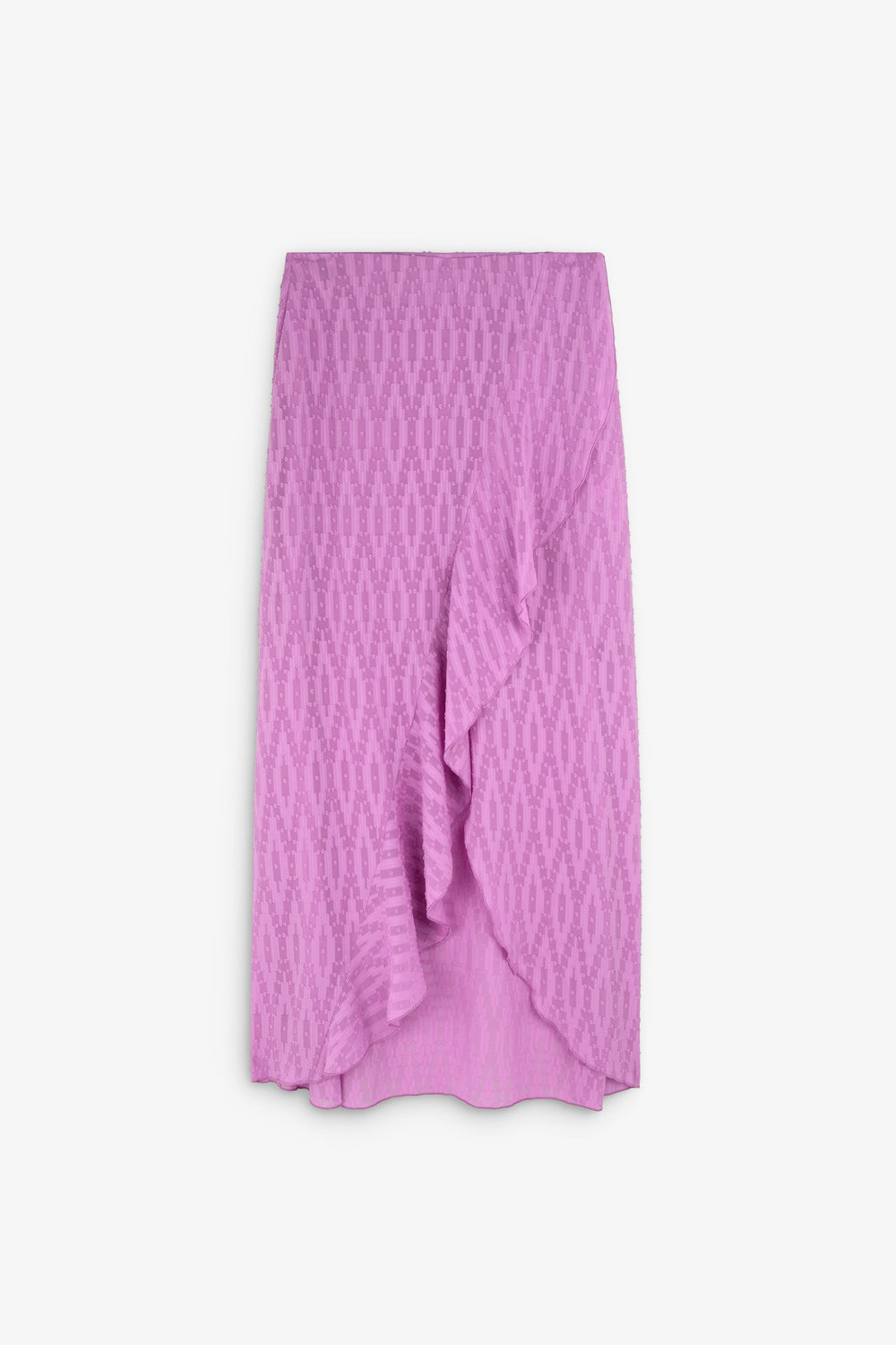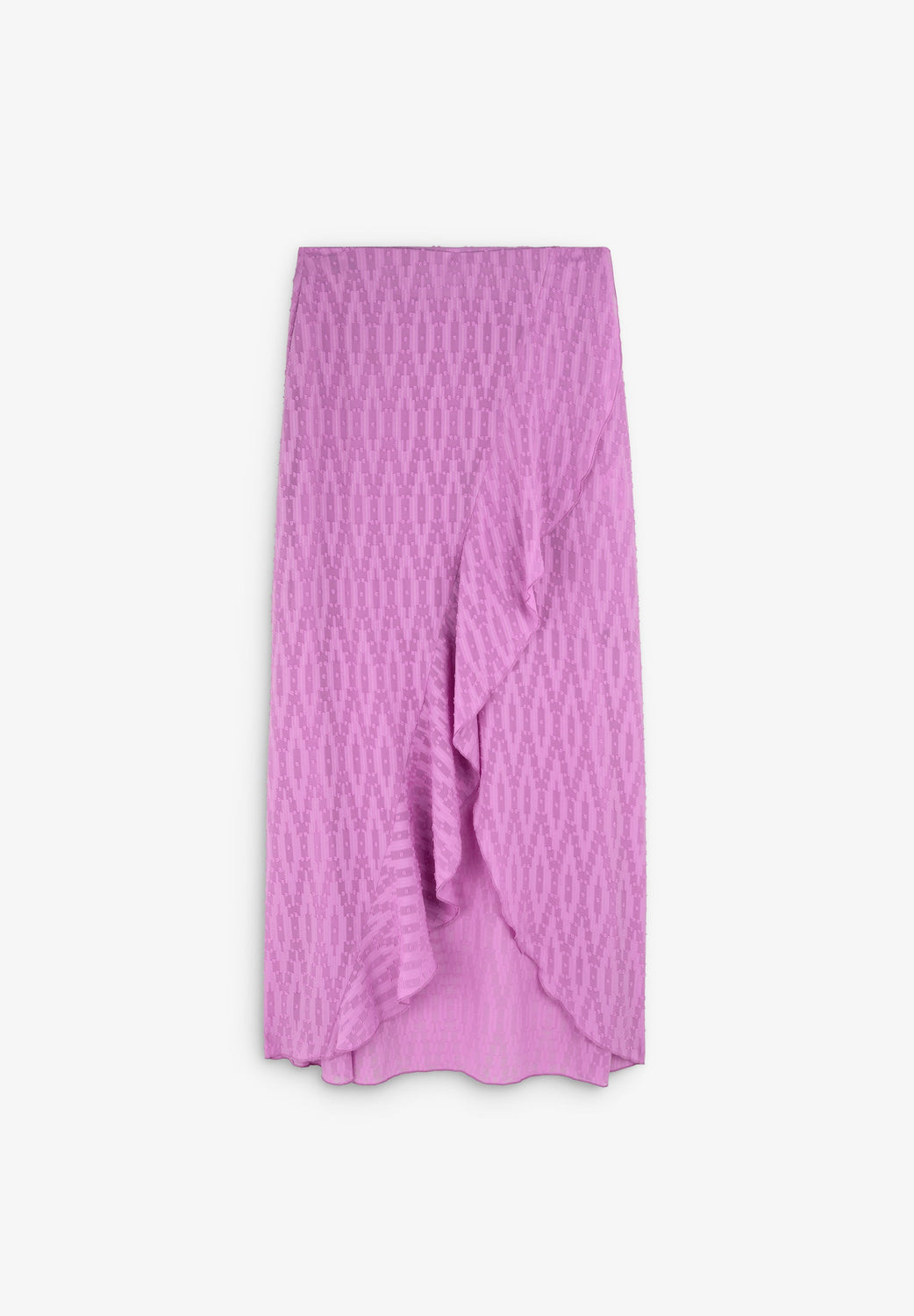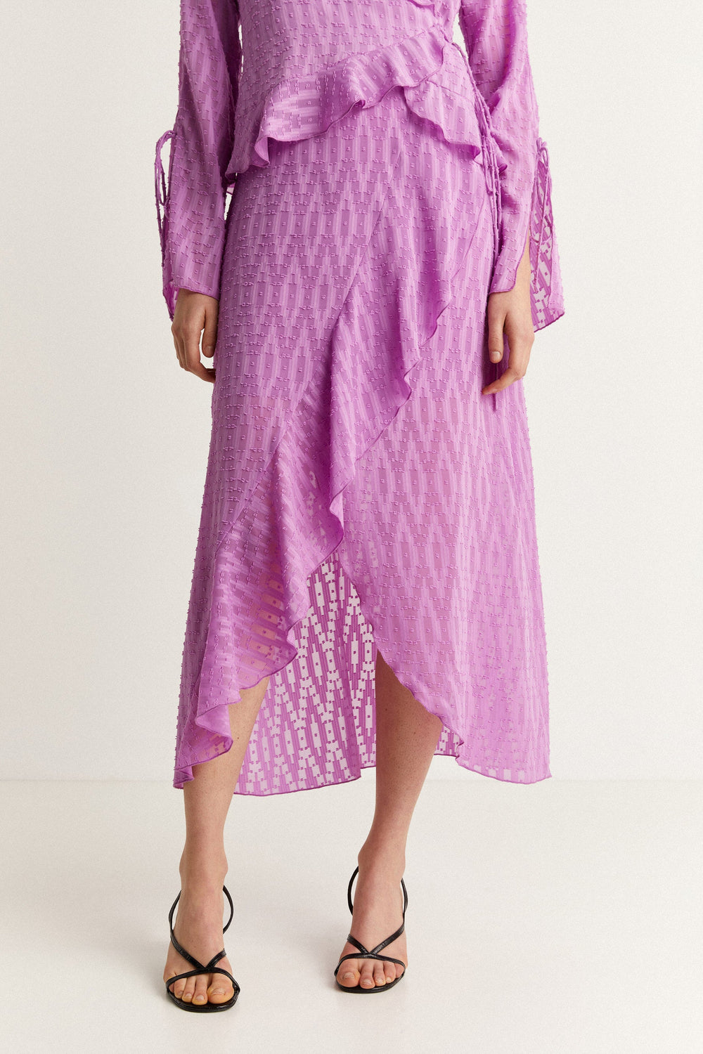 Midi skirt with crossed ruffles on the front.