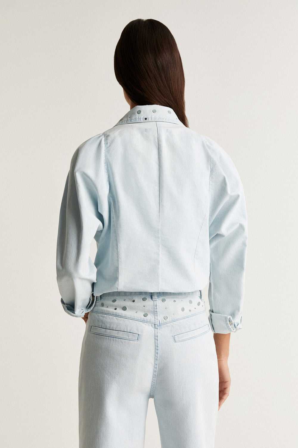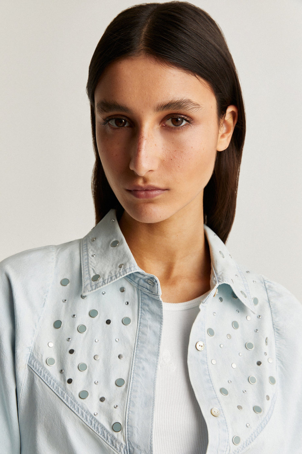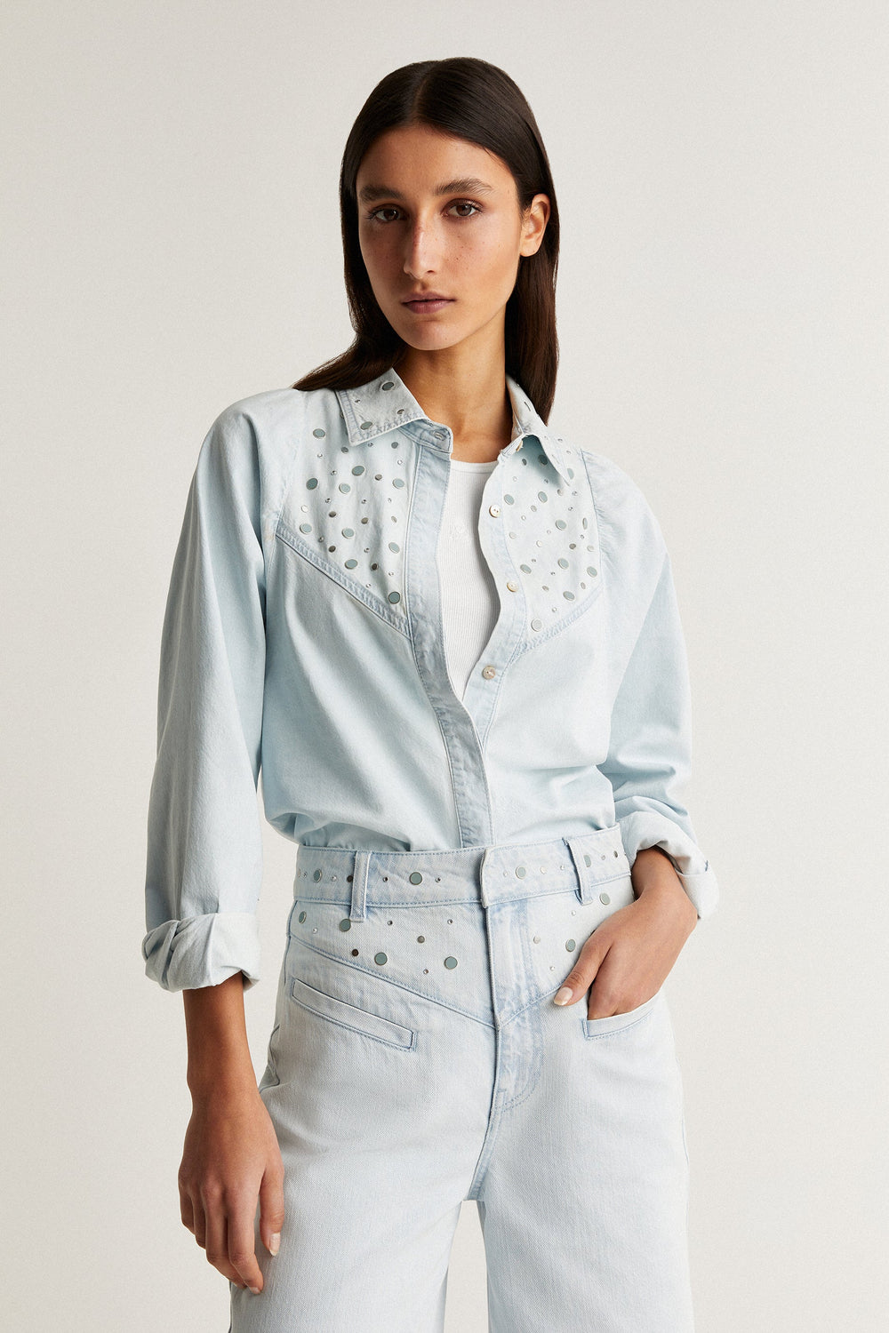 Denim shirt with studded detail.