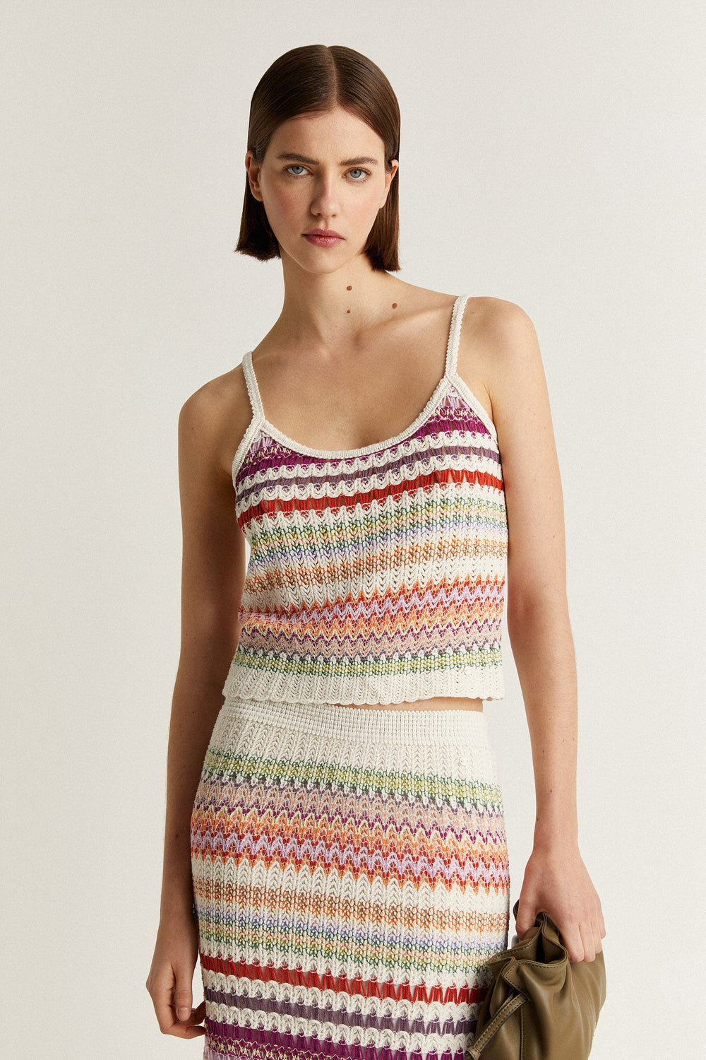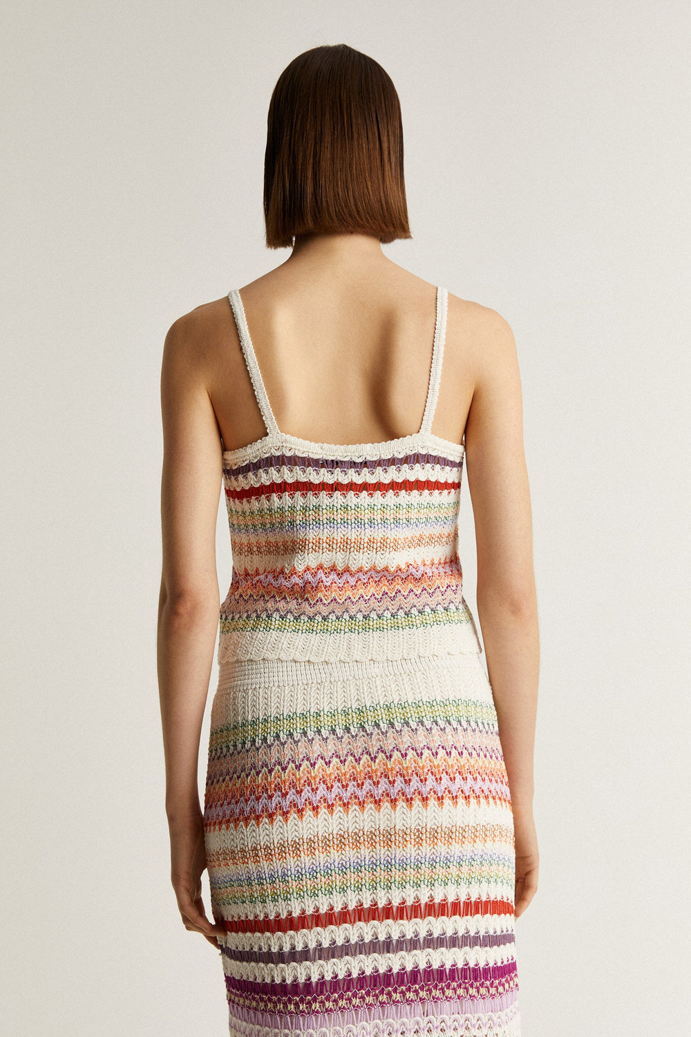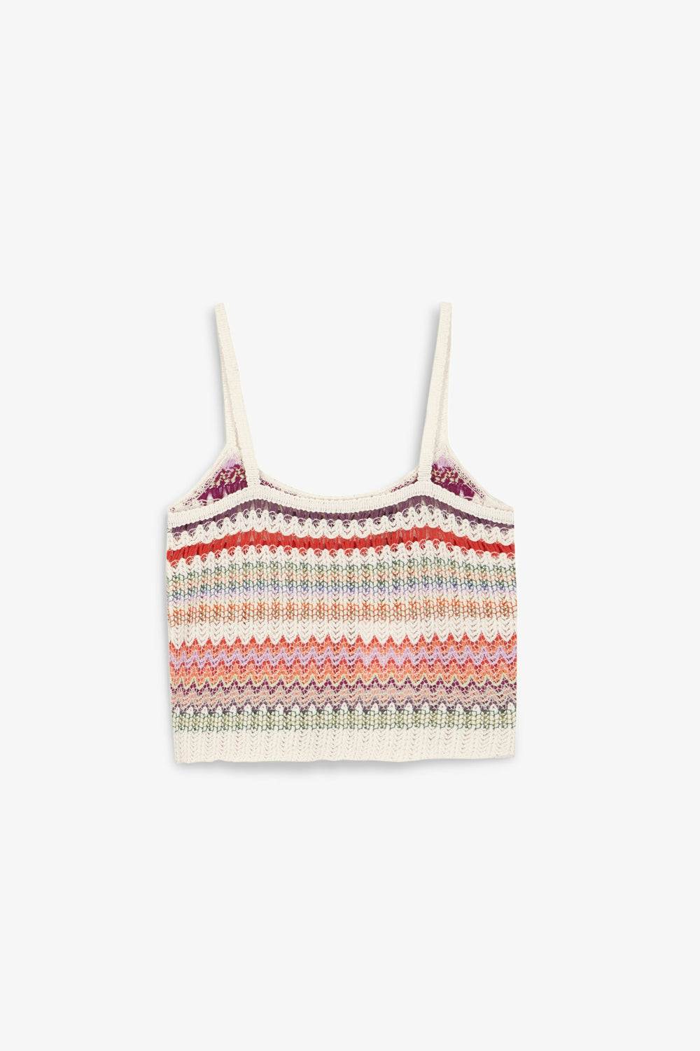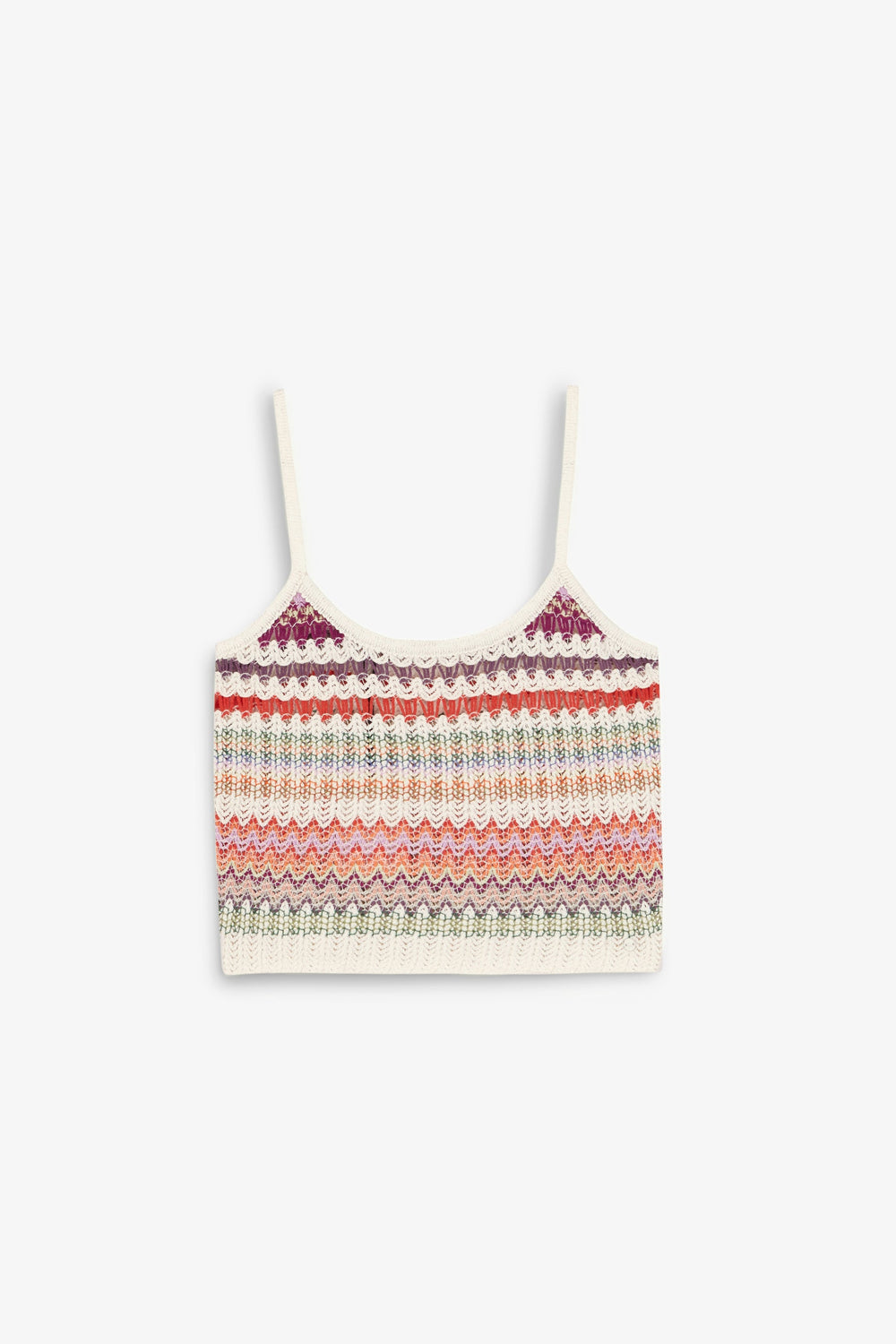 Multicoloured striped crochet top.