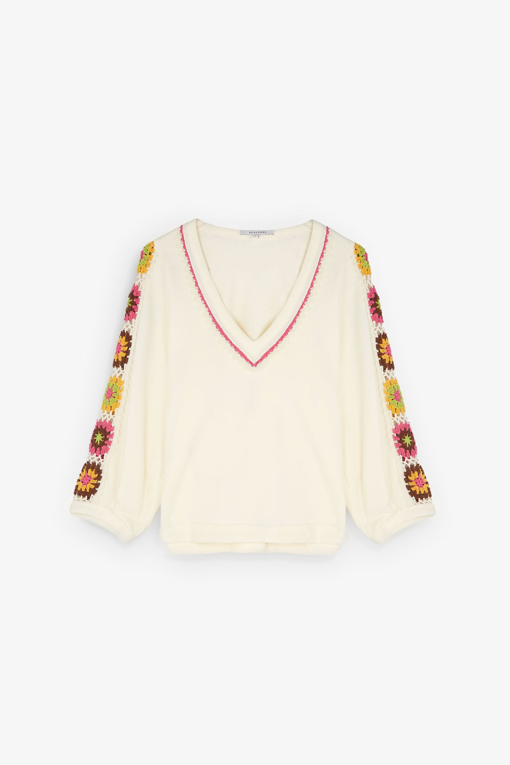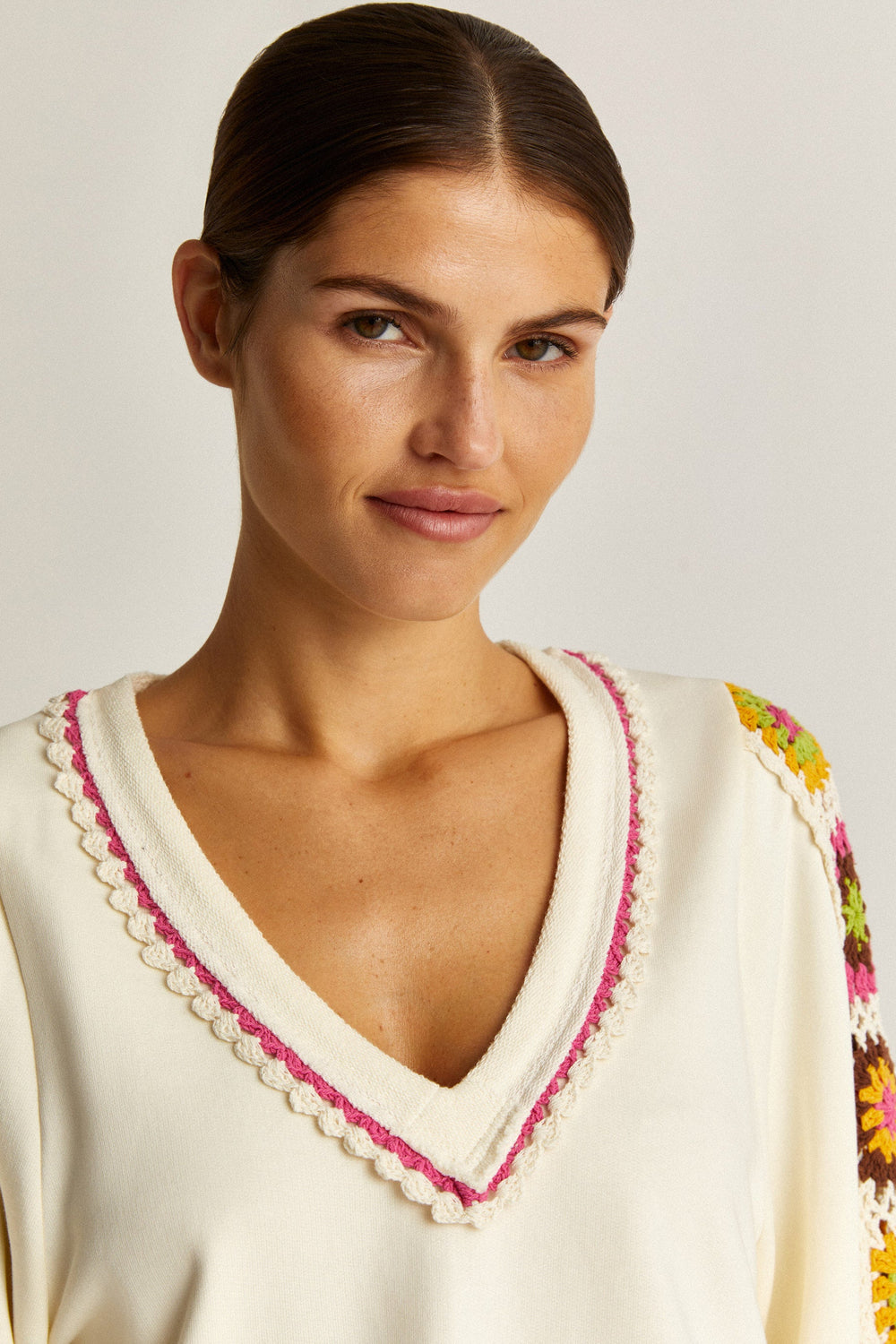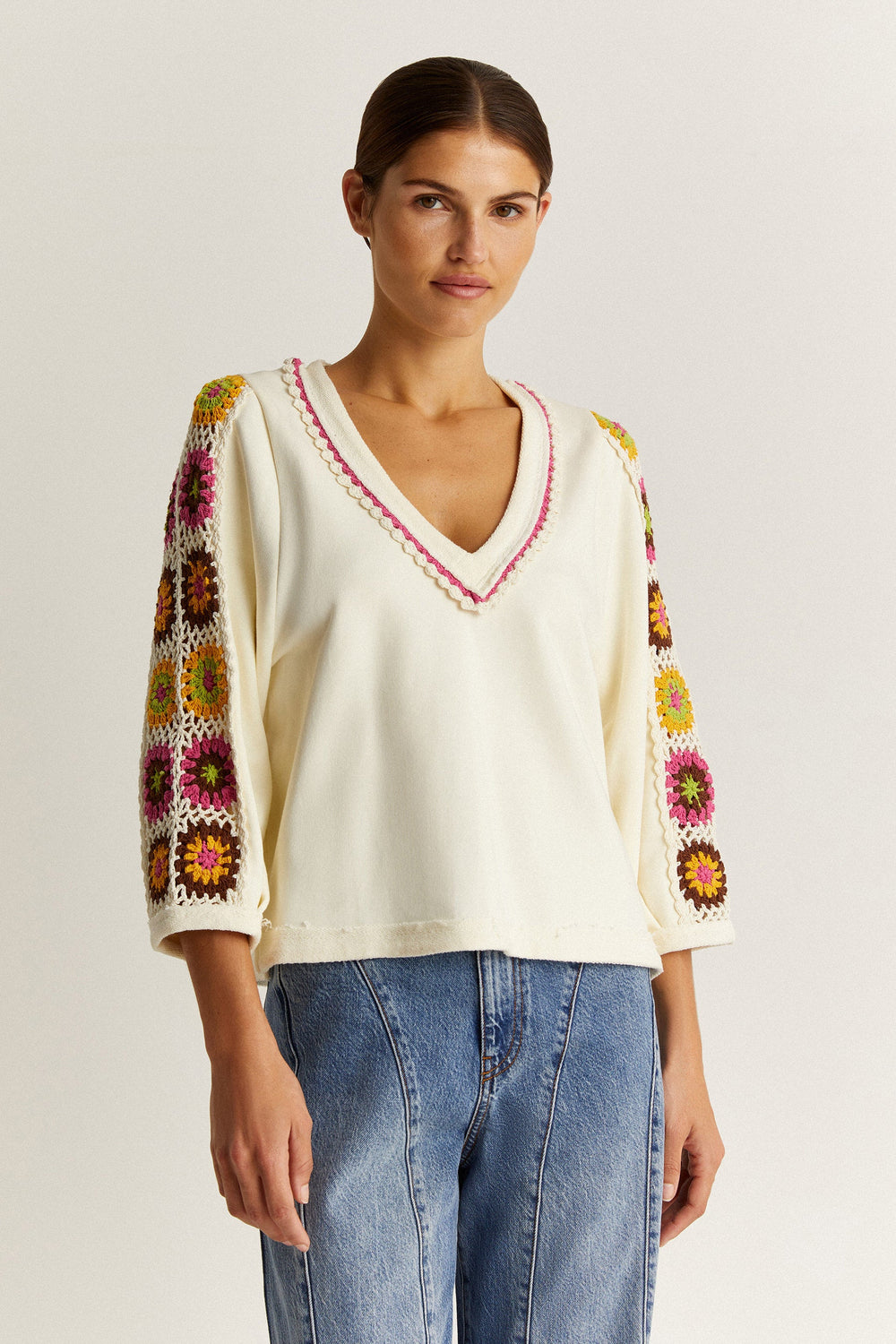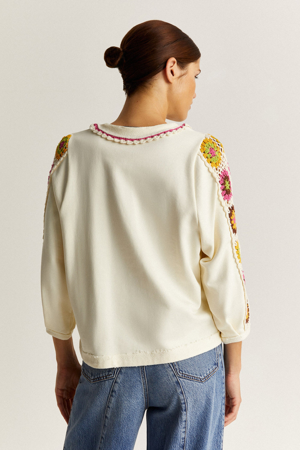 Sweatshirt with crochet detail on the sleeve.