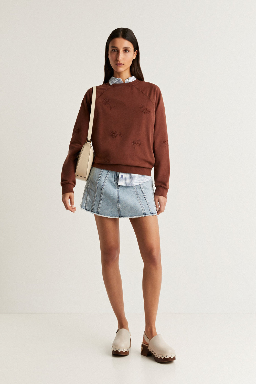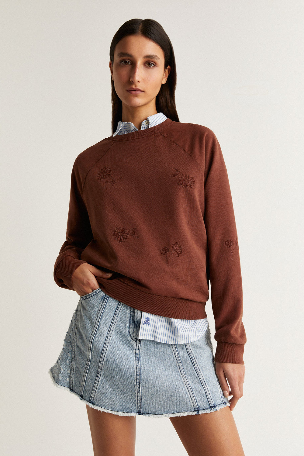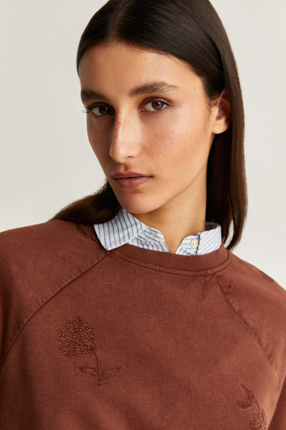SWEATSHIRT WITH FLORAL STITCHING DETAIL