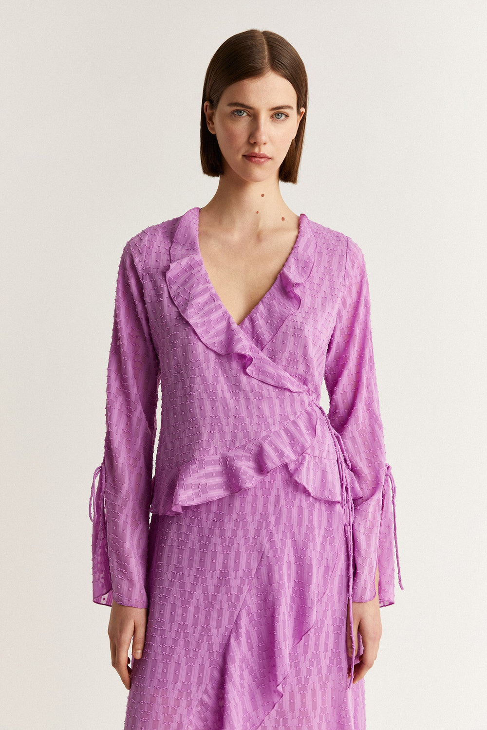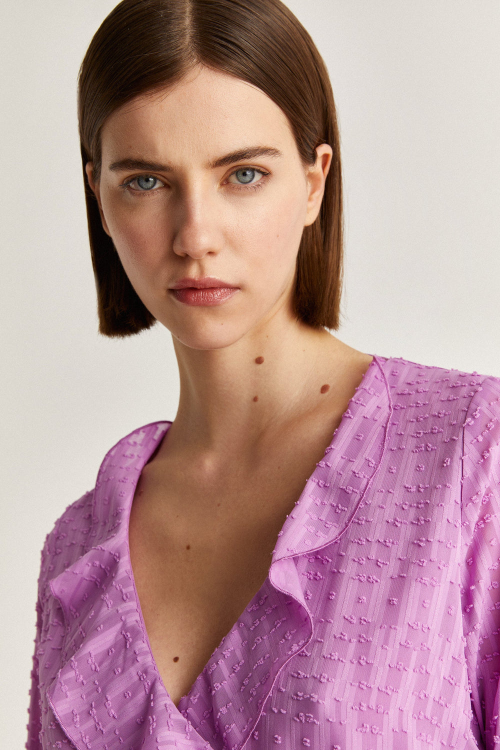 SWISS DOT BLOUSE WITH ASYMMETRIC HEM