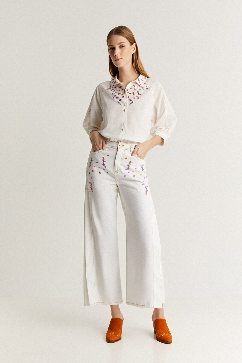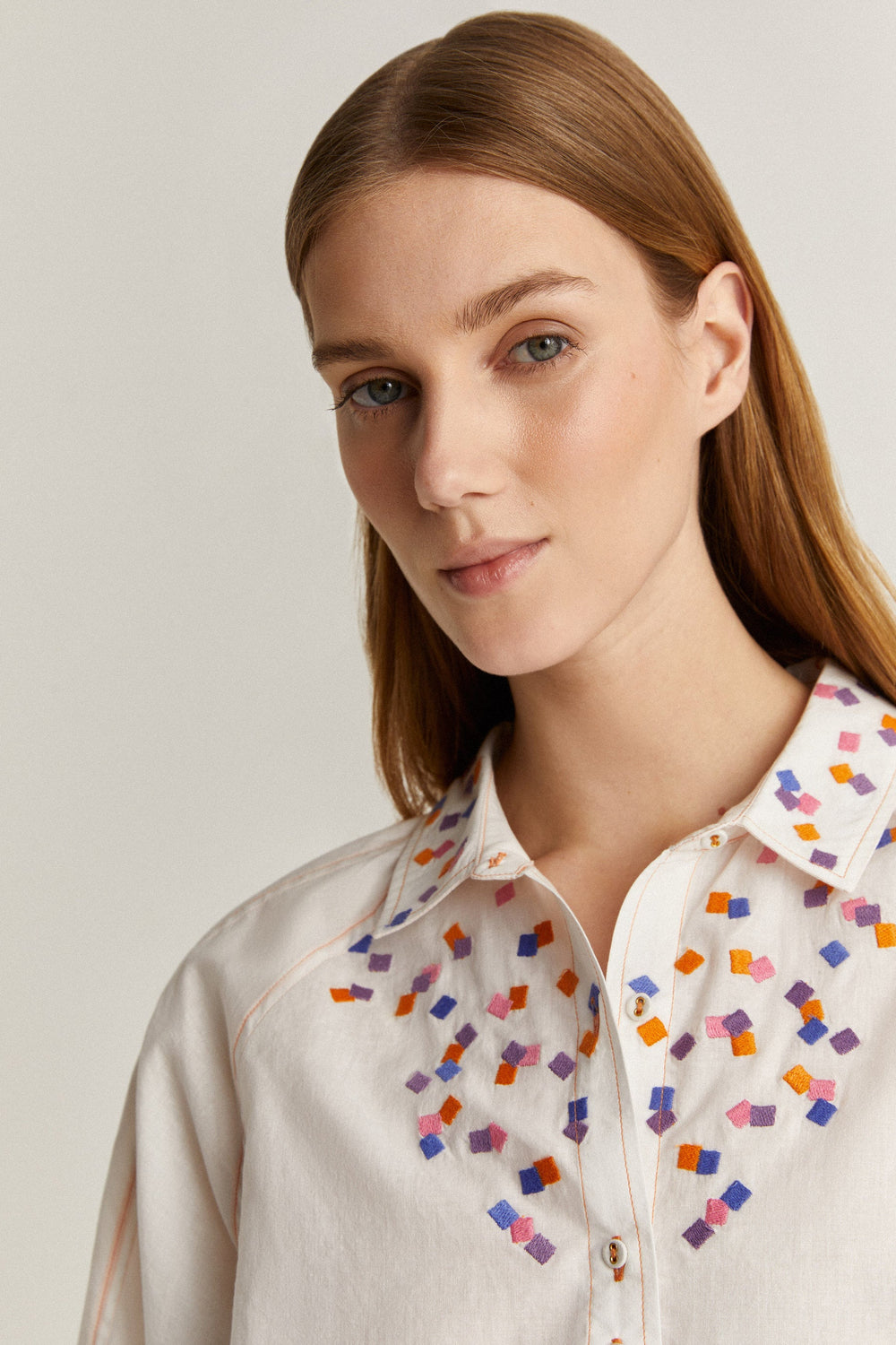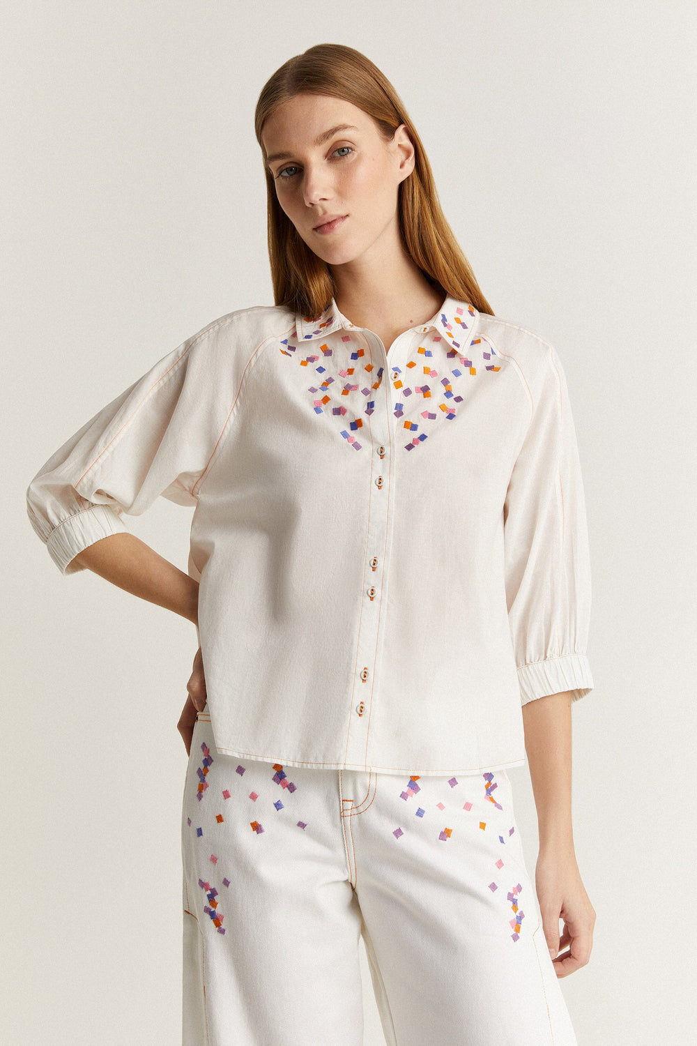 SHIRT WITH EMBROIDERED DETAIL AND SQUARE DESIGN