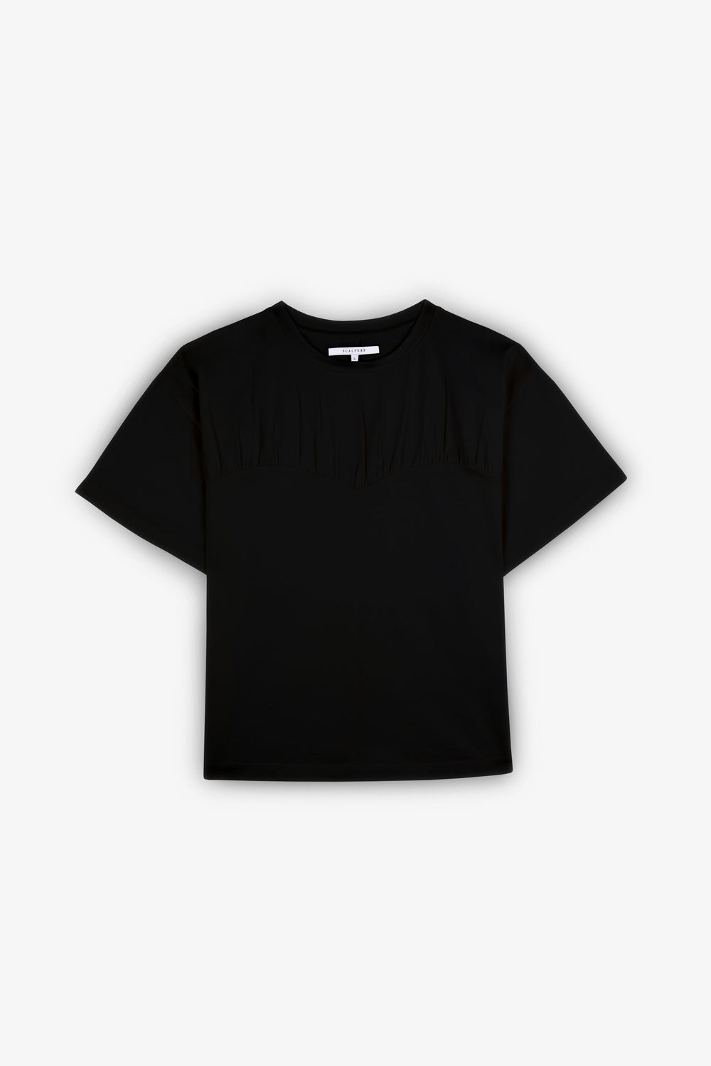 Plain-coloured T-shirt with gathered detail on the upper chest.