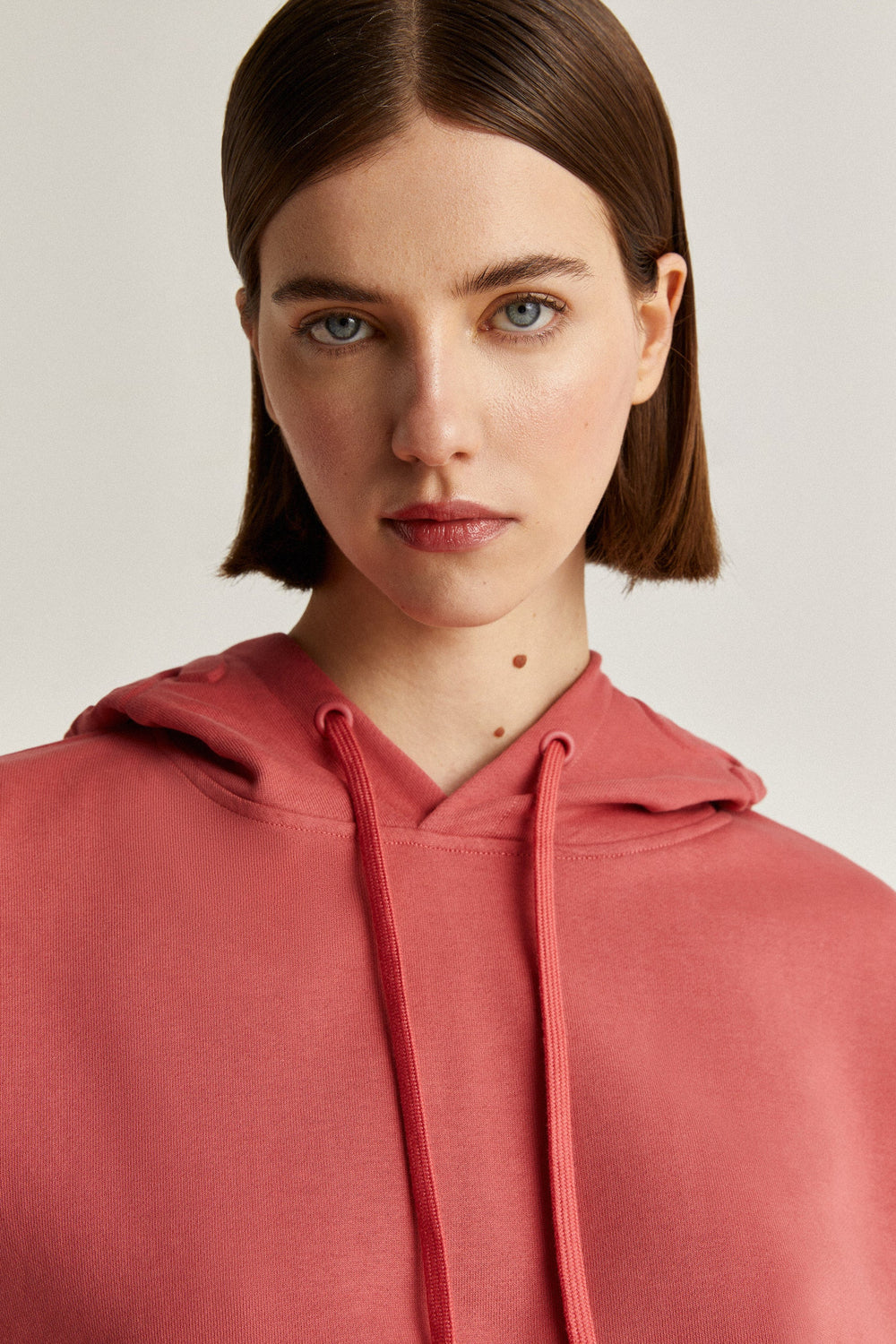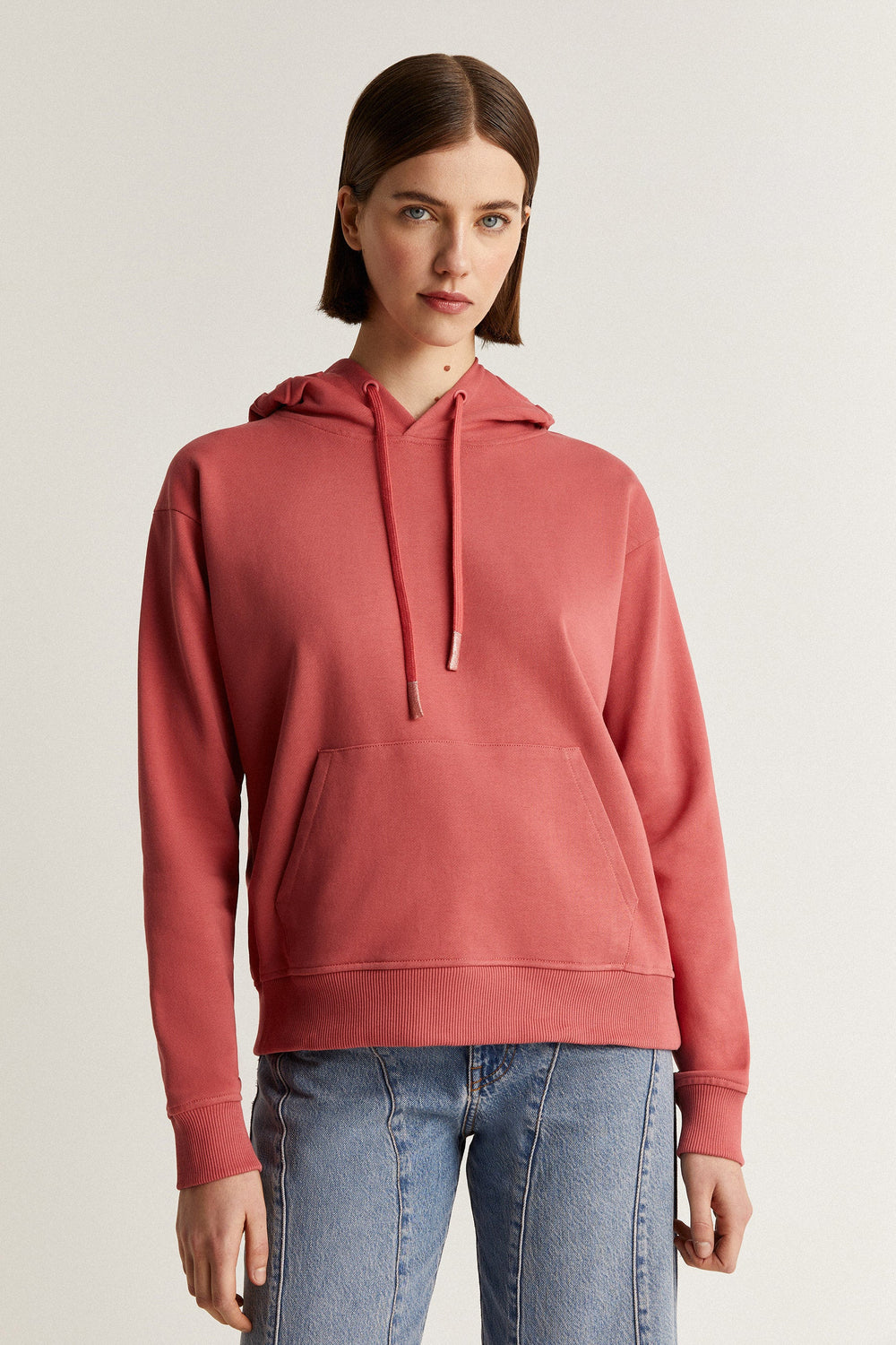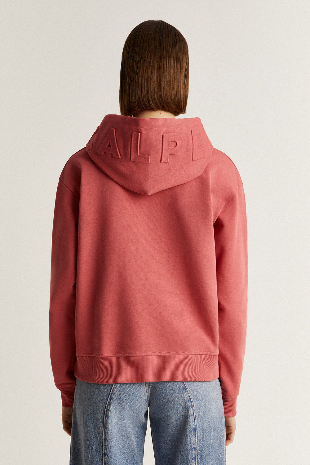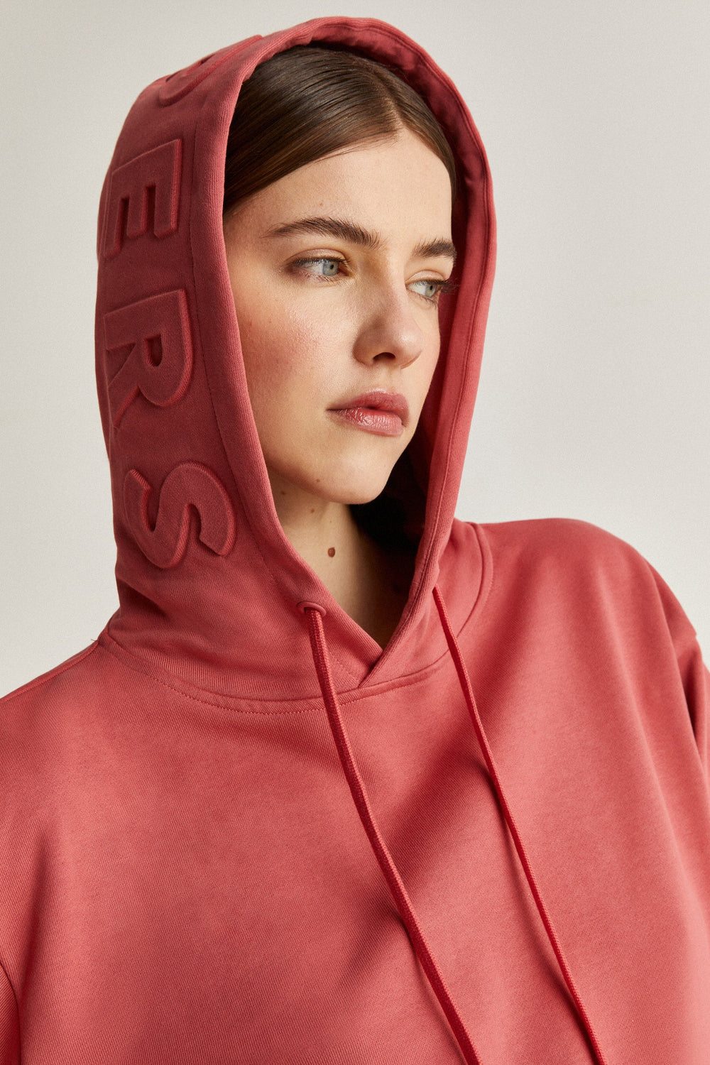 Terry sweatshirt with embossed logo detail on the hood.