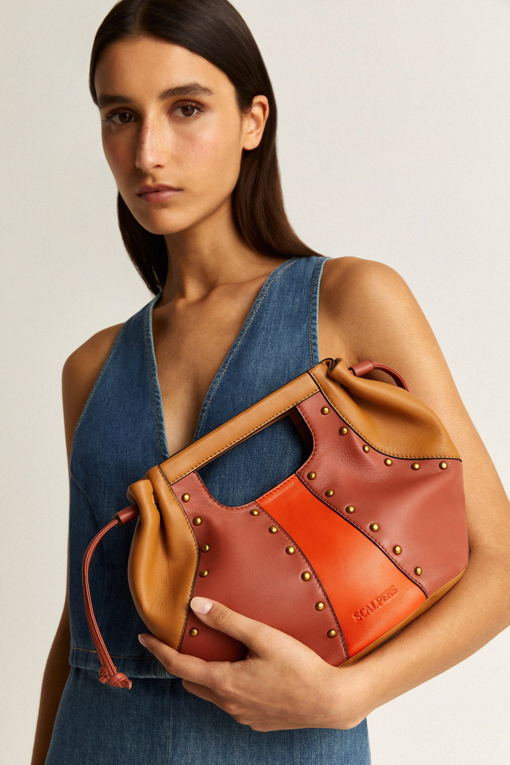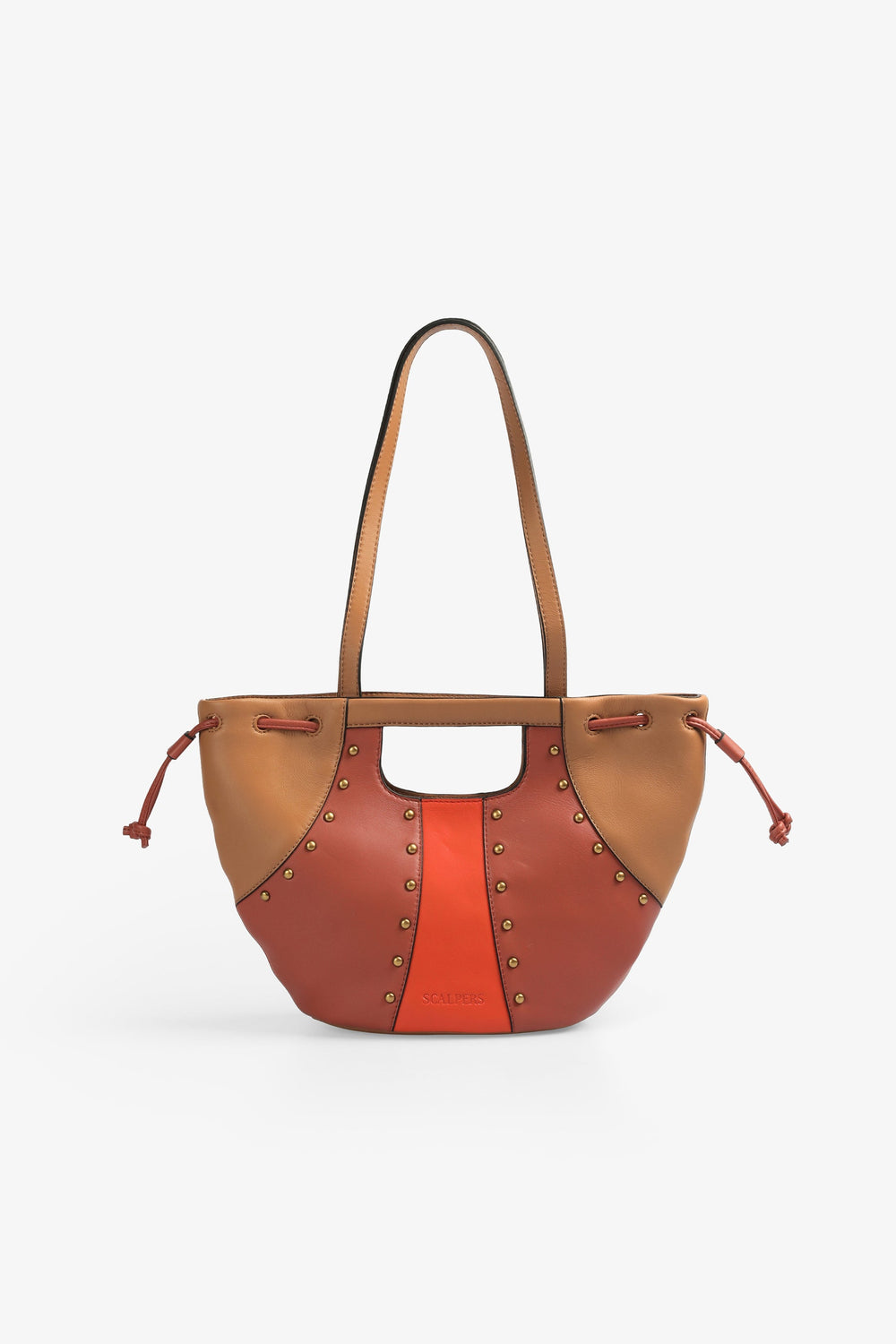 Three-coloured shoulder bag with stud details.