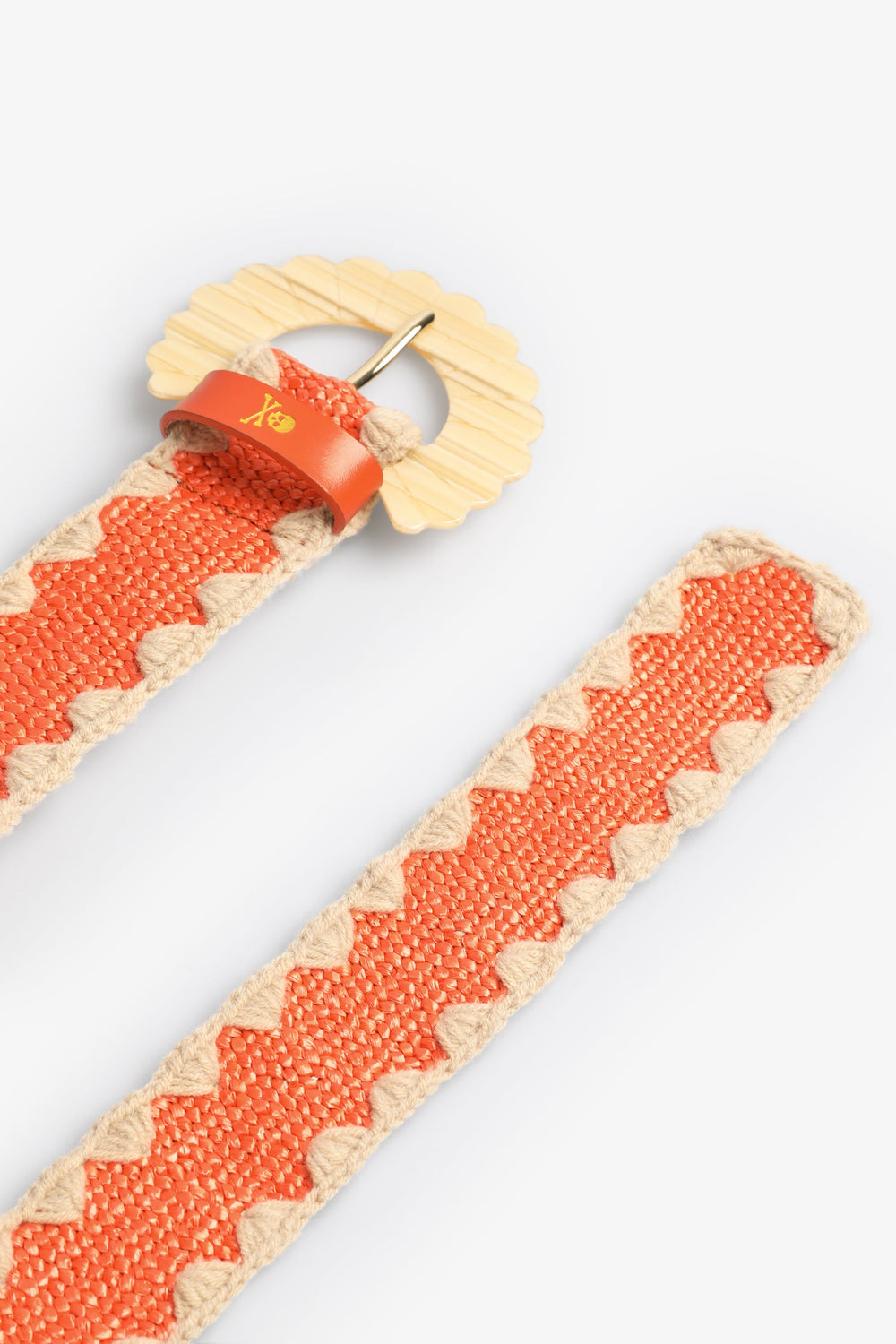 RAFFIA BELT WITH TORTOISESHELL BUCKLE