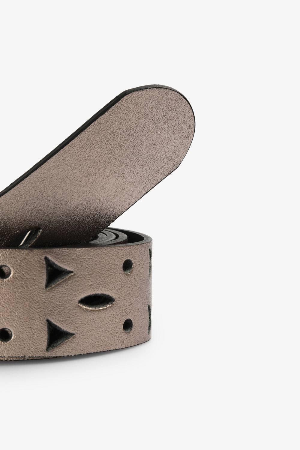 Belt with perforated details.