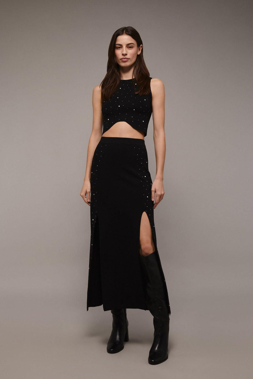 MIDI KNIT SKIRT WITH BEAD DETAIL