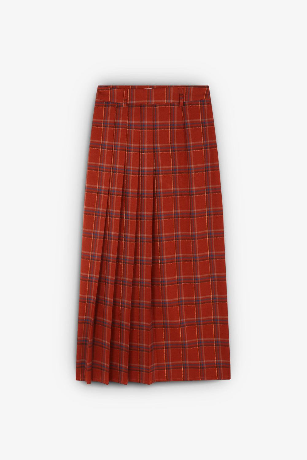 Check mini skirt. Regular fit, zip fastening and belt loops at the waist. Front box pleats.