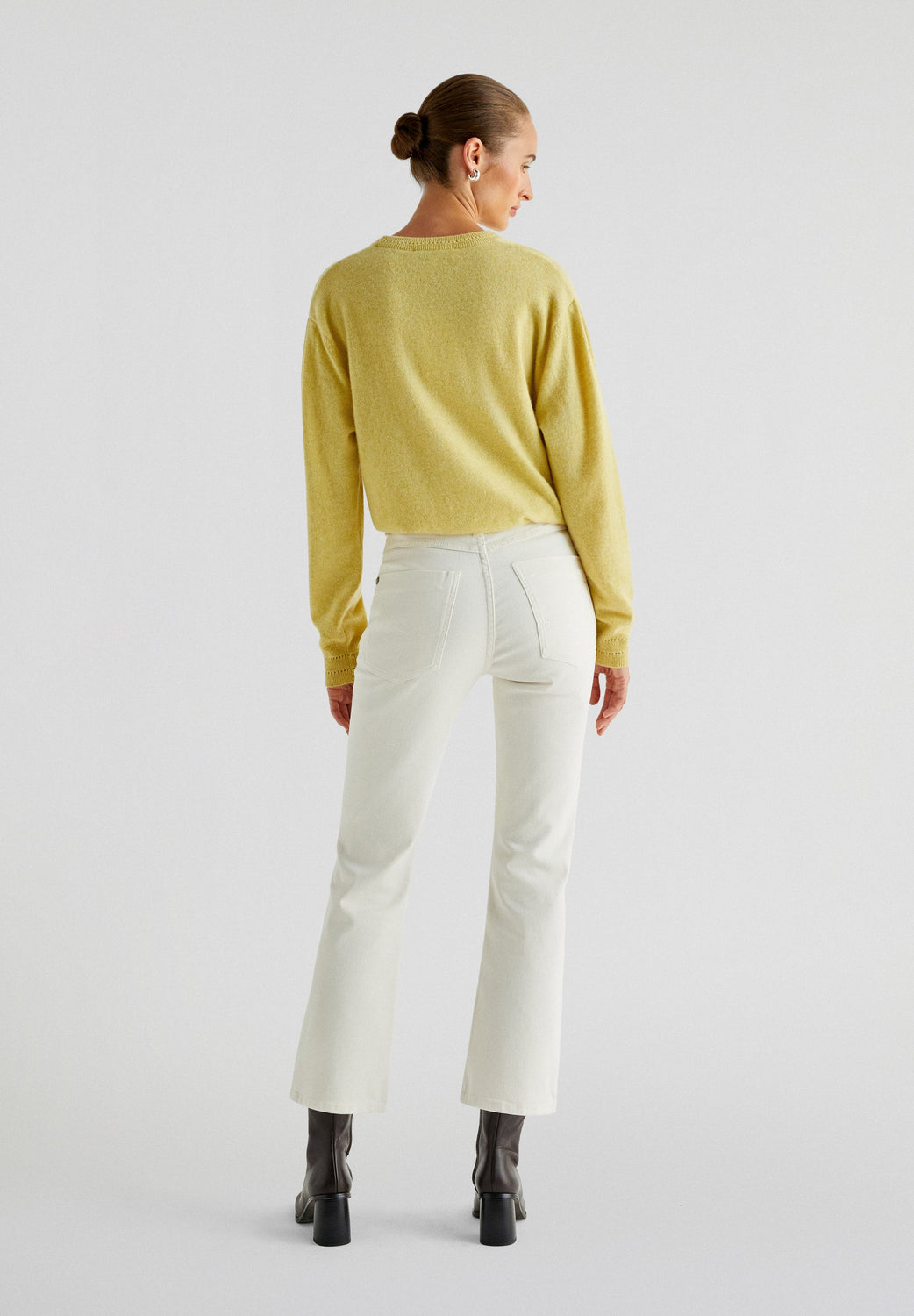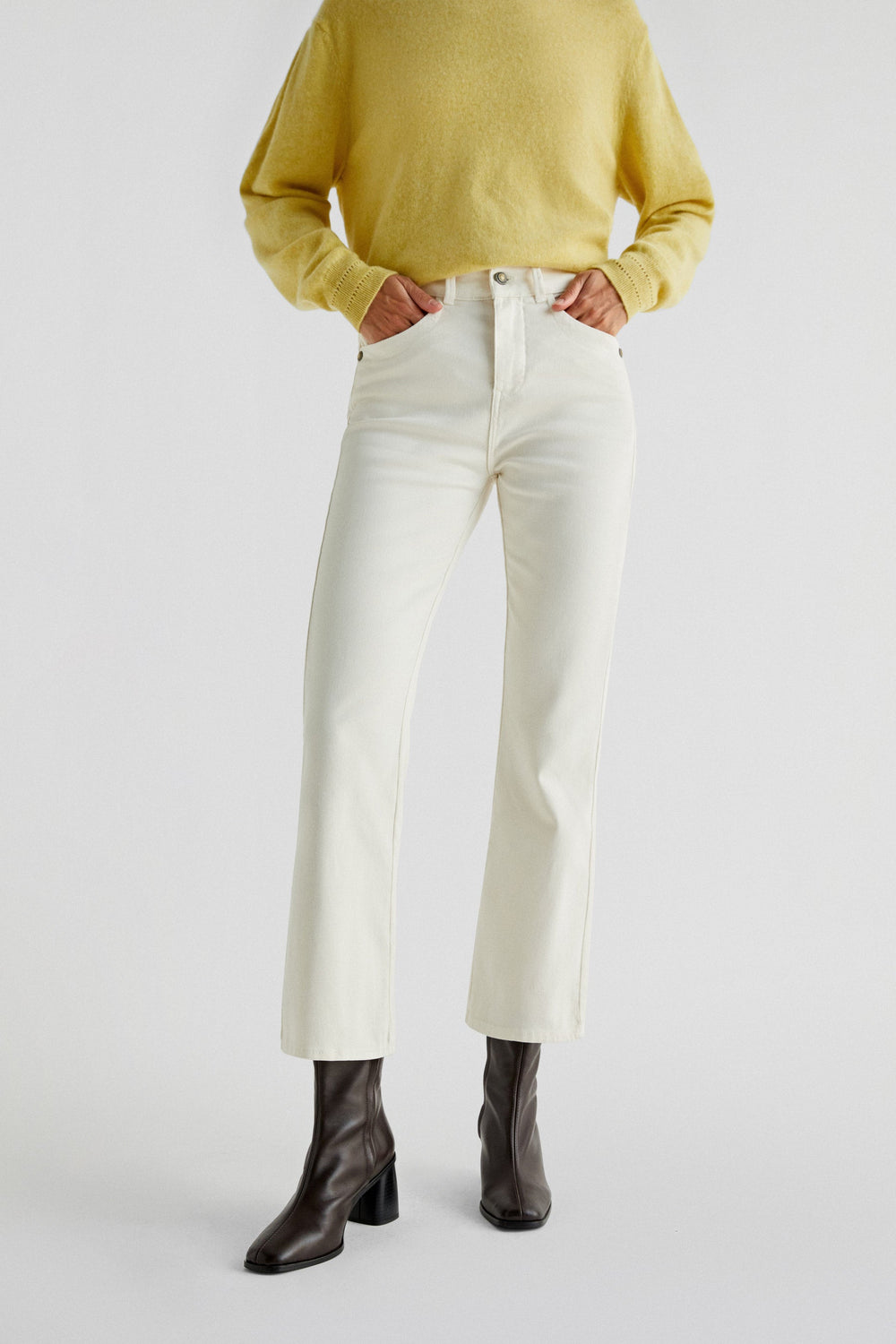 Jeans made from slightly stretchy cotton. Ankle flare fit with zip and button fastening. Back and side pockets and belt loops.