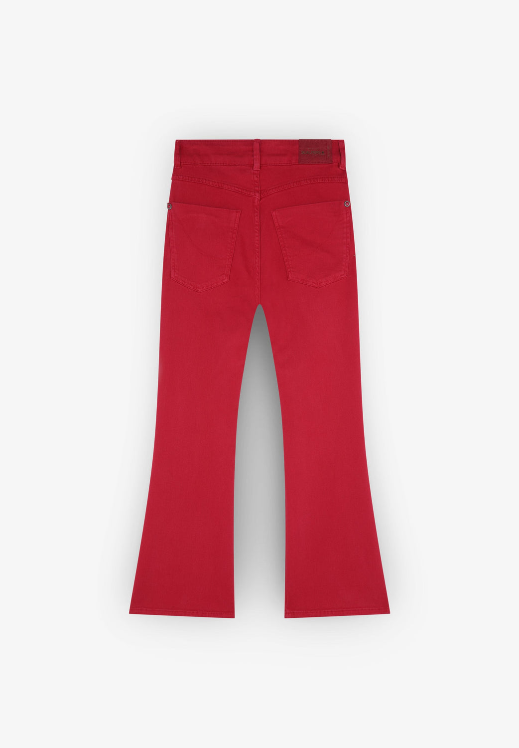 Jeans made from slightly stretchy cotton. Ankle flare fit with zip and button fastening. Back and side pockets and belt loops.